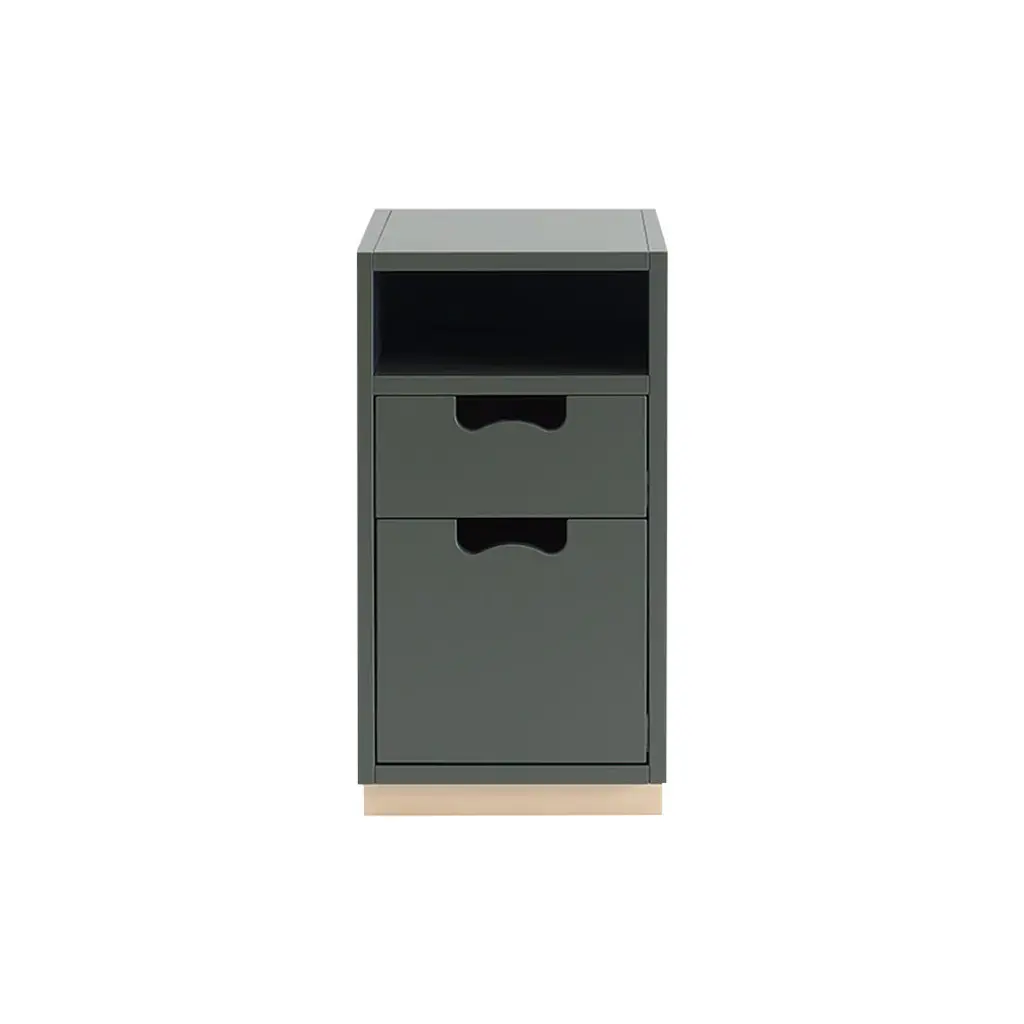 A compact storage piece, Snow G3 is designed with a small drawer, a medium drawer and an open shelf for utmost versatility. From Thomas Sandell and Jonas Bohlin and now considered a Swedish classic, the design features the familiar cutout drawer handles as the sole decorative element (and also functioning as a comfortable grip.) In a choice of soft Nordic hues, the lacquered MDF cabinet has a contrasting natural birch base. Asplund produces the fundamentally handcrafted and made-to-order collection in the small southern Swedish town of Tibro, known for its furniture-making tradition.