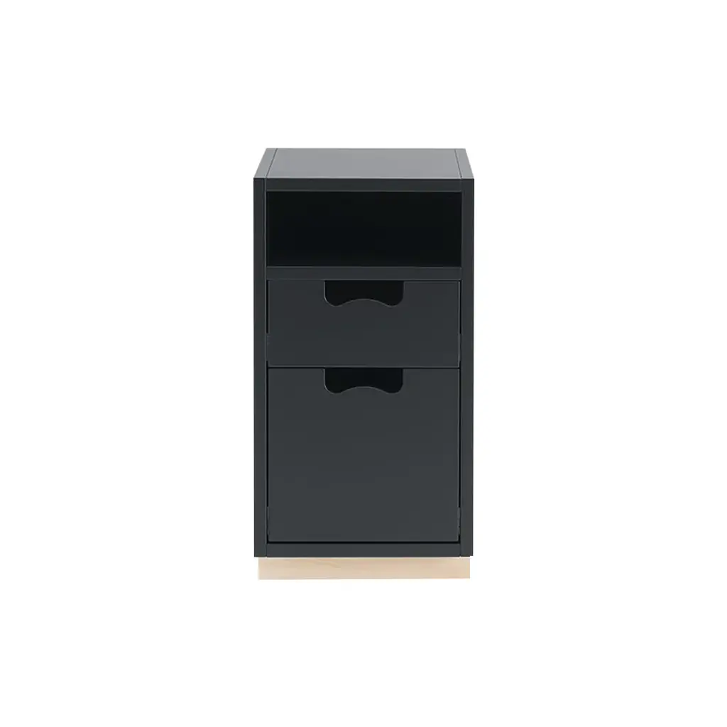 A compact storage piece, Snow G3 is designed with a small drawer, a medium drawer and an open shelf for utmost versatility. From Thomas Sandell and Jonas Bohlin and now considered a Swedish classic, the design features the familiar cutout drawer handles as the sole decorative element (and also functioning as a comfortable grip.) In a choice of soft Nordic hues, the lacquered MDF cabinet has a contrasting natural birch base. Asplund produces the fundamentally handcrafted and made-to-order collection in the small southern Swedish town of Tibro, known for its furniture-making tradition.