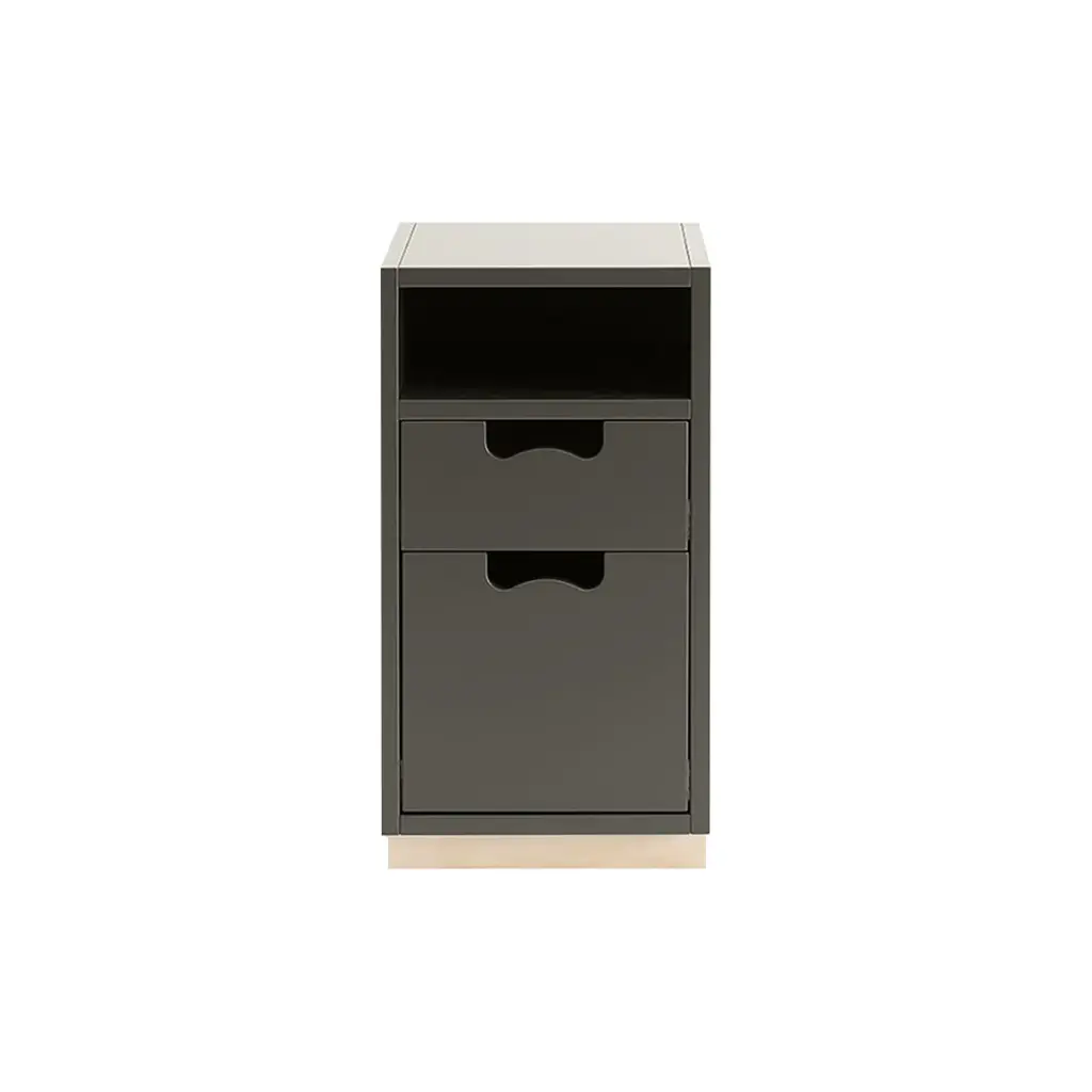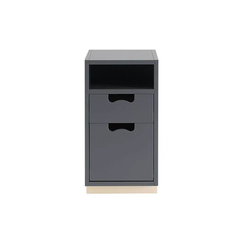 A compact storage piece, Snow G3 is designed with a small drawer, a medium drawer and an open shelf for utmost versatility. From Thomas Sandell and Jonas Bohlin and now considered a Swedish classic, the design features the familiar cutout drawer handles as the sole decorative element (and also functioning as a comfortable grip.) In a choice of soft Nordic hues, the lacquered MDF cabinet has a contrasting natural birch base. Asplund produces the fundamentally handcrafted and made-to-order collection in the small southern Swedish town of Tibro, known for its furniture-making tradition.