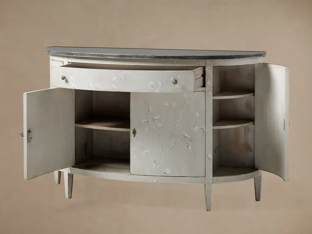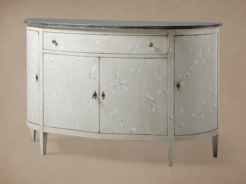Centuries-old woodworking techniques are used to craft every exquisite detail of our exclusive Bell’Arte collection. Handcrafted to order in a region of Italy renowned for its furniture-making, our dedicated artisans treat each unique piece like a work of art. Cabinetry is built from solid tulip wood and masterfully finished by hand, combining layers of stain, paint, and lacquer—a process which takes over three days to complete per piece. Our Sofia cabinets are inspired by authentic Italian antiques, featuring hand-painted motifs of birds for a touch of charm and warmth.