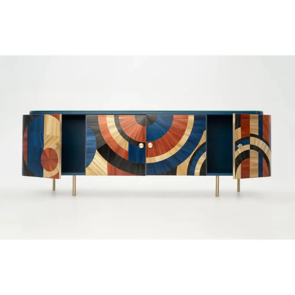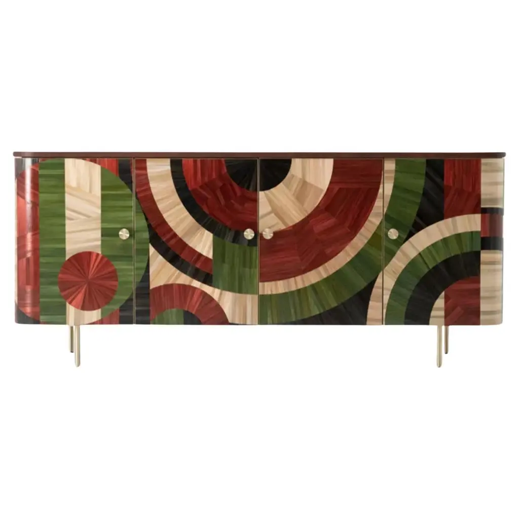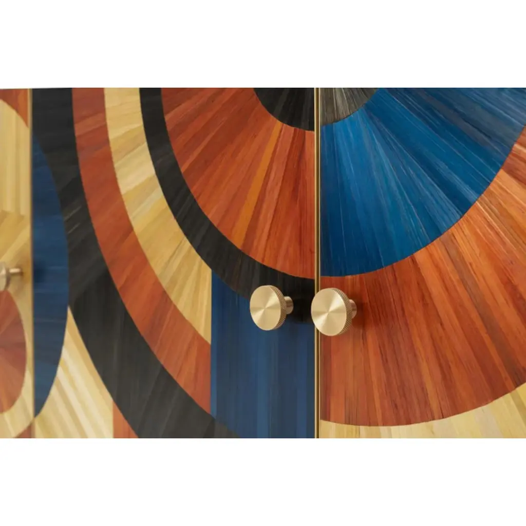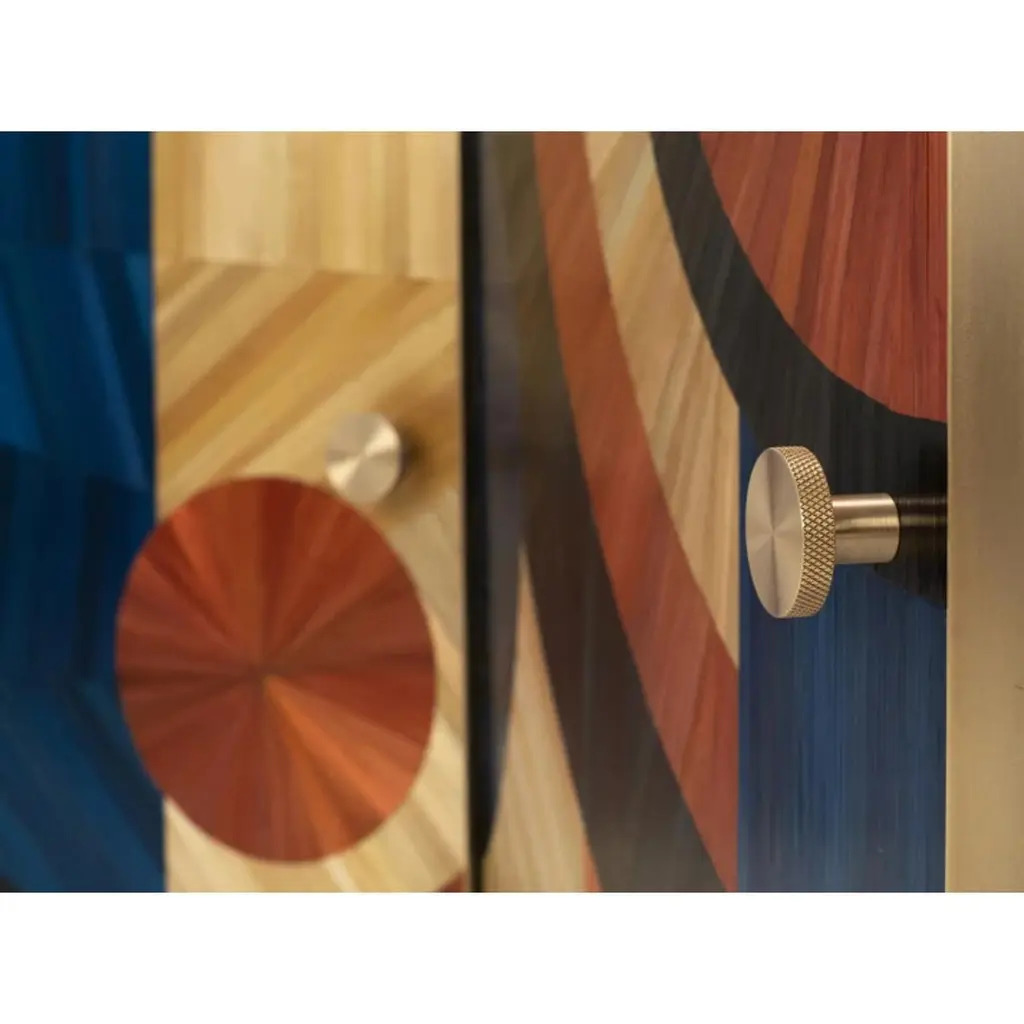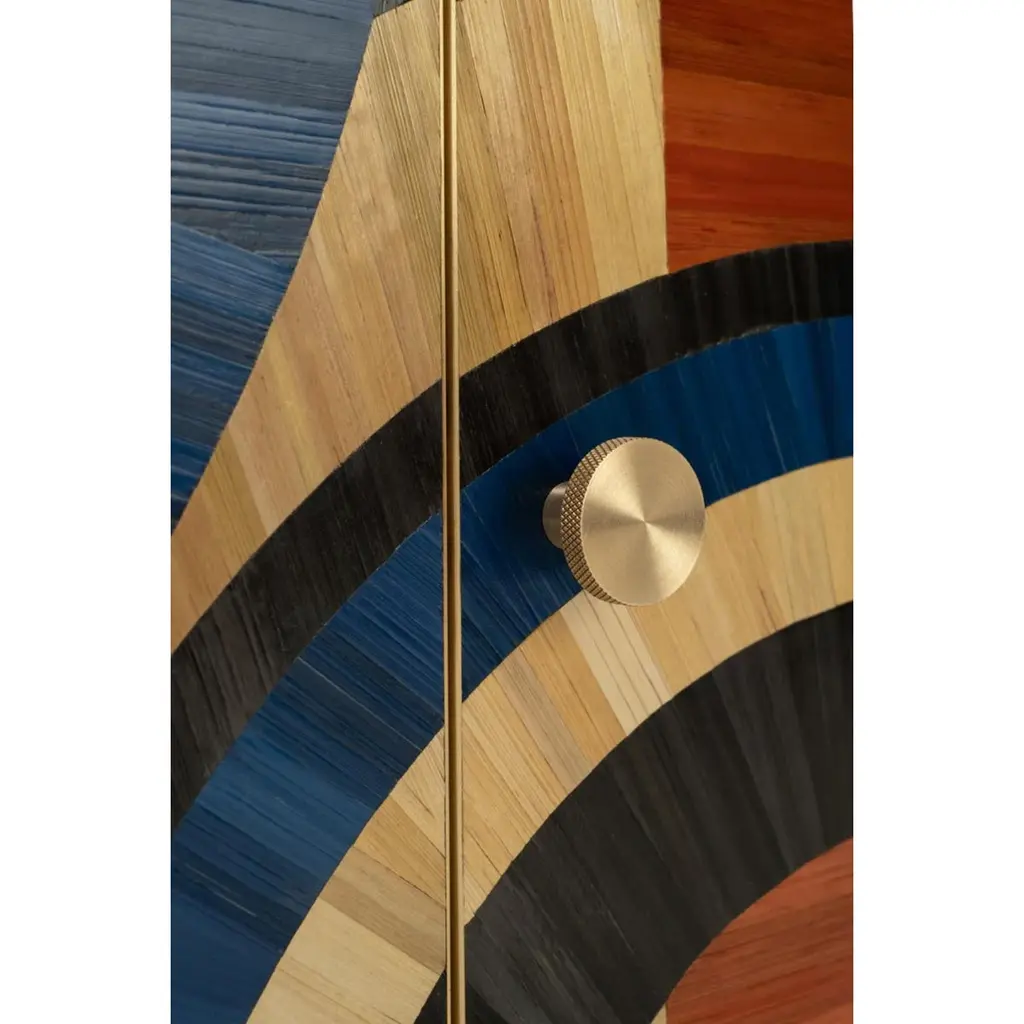 Solomia 2 Cabinet by Ruda StudioDimensions: D 45 x W 170 x H 75 cm.Materials: Solid wood (ash), rye straw inlay, plywood, glass and brass.Weight: 80 kg.Dimensions are customizable. Please contact us. Inspired by the wealth of Ukrainian land, RUDA Studio has created aninterior object – the Solomia cabinet. Seemingly trapped between the pastand the future, it serves as a timeless example. Combining vintage Art Decostylization with the philosophy of contemporary Ukrainian design, the cabinet was crafted by the studio's founder and designer, Oleksandra Rudenko. Made from oak and adorned with ornaments from rye straw, the cabinet's origin lies in Western Ukraine. There, the 80-year-old grandfather, Orestes, collects strawfor our products, carefully sorting them by length and diameter. Duringthis process, the oak frame—the foundation of the cabinet—is created. The countertop undergoes stitching, revealing the texture of the wood. In our workshop, the straw undergoes a staining stage before being intricately inlaid into the cabinet itself.Design brand RUDA Studio was founded in 2017 by Oleksandra Rudenko and Yuriy Vovnyanko. RUDA Studio - Ukrainian artisanal atelier with harvest of Fine Craft Design.In the atelier we create unique household items. The studio seeks to make each project individual and special, focusing on feelings, custom items, and the combination of the historical and the modern. Our creations are inspired by natural materials and ancient craft techniques. Each product has its own function, but is more like an object of art that touchesthe soul. The vision of interior items encourages us to preserve and actualize our cultural heritage. In our works, we restore knowledge about Ukrainian folklore, pay attention to socially important topics and focus on the interaction between humans and nature. In the studio, objects are created from local materials - brass, copper, clay, straw, algae, trees, andstone.