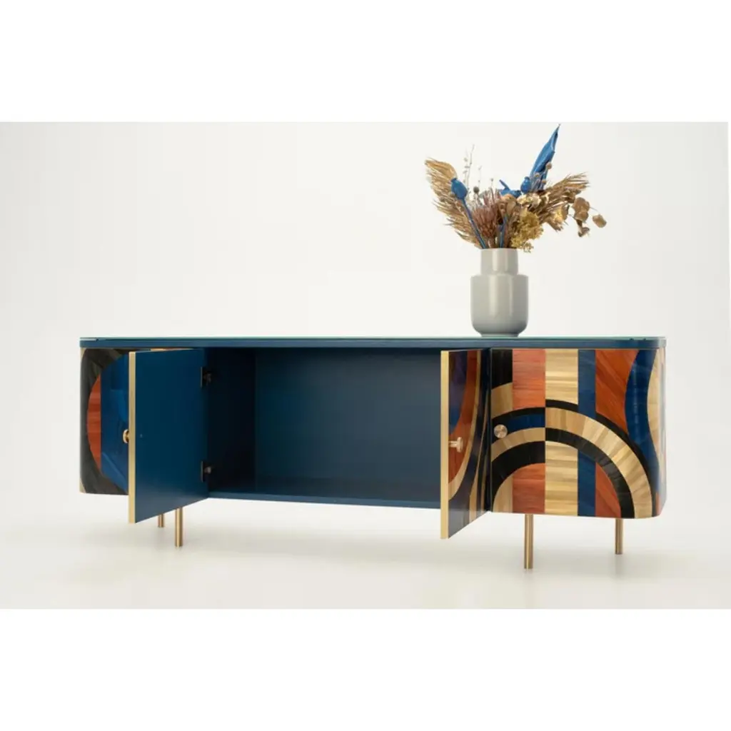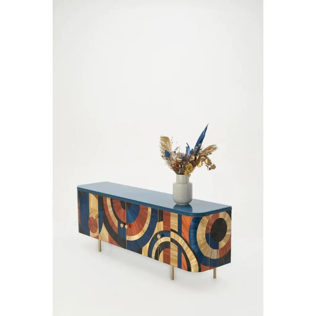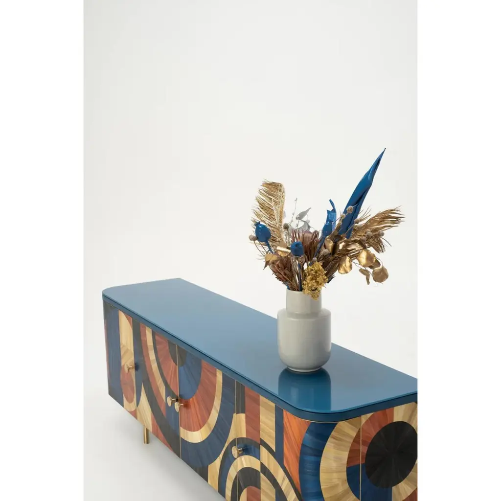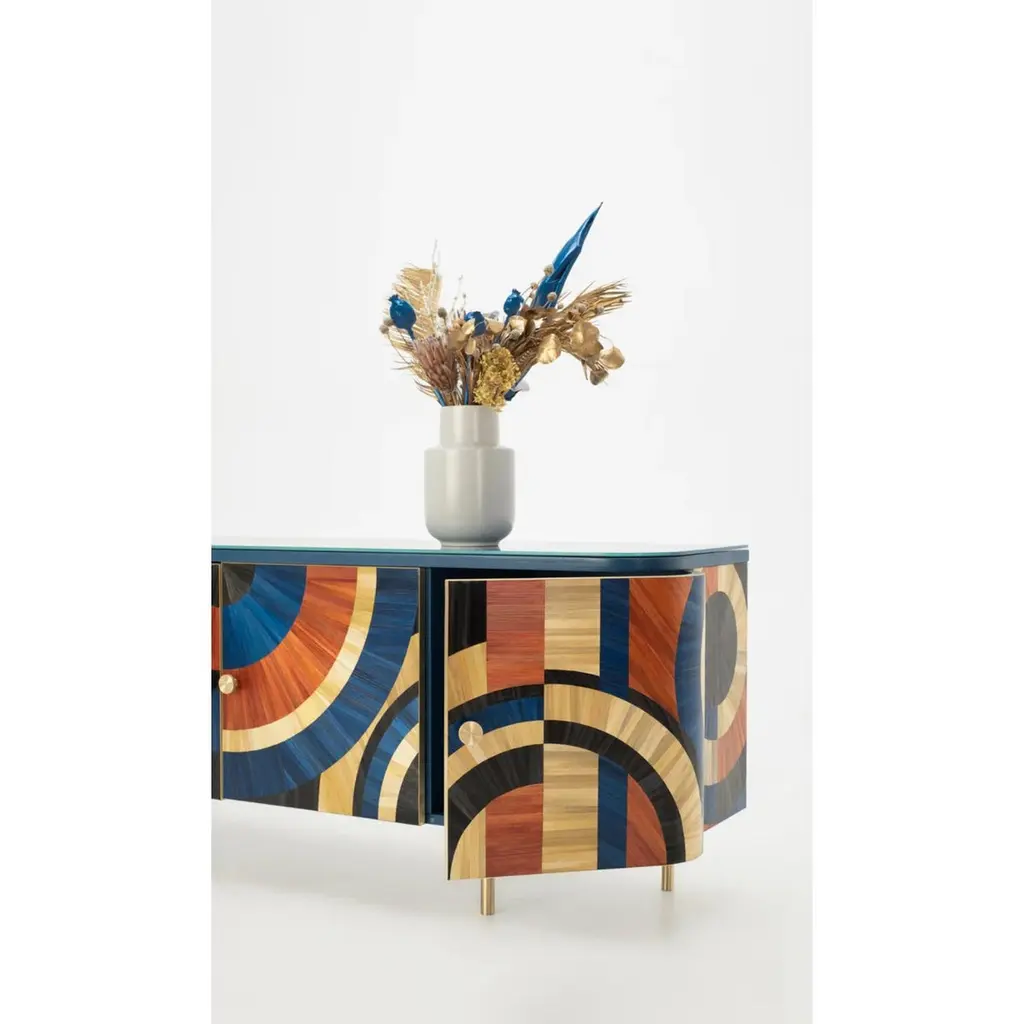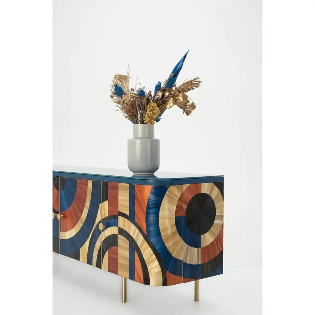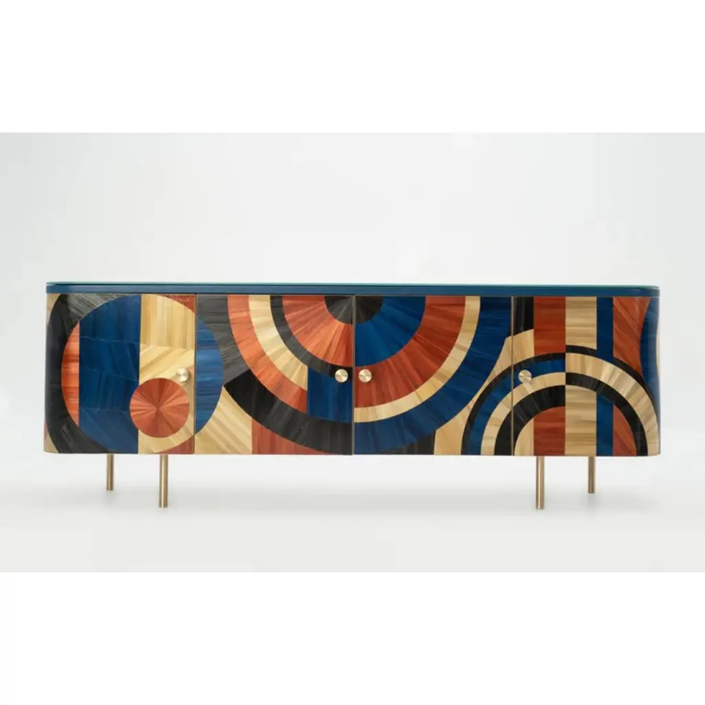 Solomia 2 Cabinet by Ruda StudioDimensions: D 45 x W 170 x H 75 cm.Materials: Solid wood (ash), rye straw inlay, plywood, glass and brass.Weight: 80 kg.Dimensions are customizable. Please contact us. Inspired by the wealth of Ukrainian land, RUDA Studio has created aninterior object – the Solomia cabinet. Seemingly trapped between the pastand the future, it serves as a timeless example. Combining vintage Art Decostylization with the philosophy of contemporary Ukrainian design, the cabinet was crafted by the studio's founder and designer, Oleksandra Rudenko. Made from oak and adorned with ornaments from rye straw, the cabinet's origin lies in Western Ukraine. There, the 80-year-old grandfather, Orestes, collects strawfor our products, carefully sorting them by length and diameter. Duringthis process, the oak frame—the foundation of the cabinet—is created. The countertop undergoes stitching, revealing the texture of the wood. In our workshop, the straw undergoes a staining stage before being intricately inlaid into the cabinet itself.Design brand RUDA Studio was founded in 2017 by Oleksandra Rudenko and Yuriy Vovnyanko. RUDA Studio - Ukrainian artisanal atelier with harvest of Fine Craft Design.In the atelier we create unique household items. The studio seeks to make each project individual and special, focusing on feelings, custom items, and the combination of the historical and the modern. Our creations are inspired by natural materials and ancient craft techniques. Each product has its own function, but is more like an object of art that touchesthe soul. The vision of interior items encourages us to preserve and actualize our cultural heritage. In our works, we restore knowledge about Ukrainian folklore, pay attention to socially important topics and focus on the interaction between humans and nature. In the studio, objects are created from local materials - brass, copper, clay, straw, algae, trees, andstone.