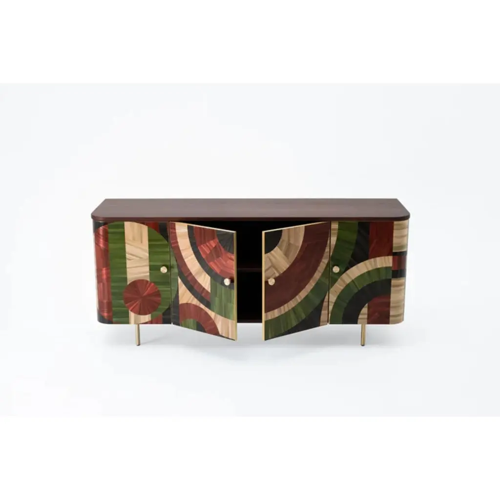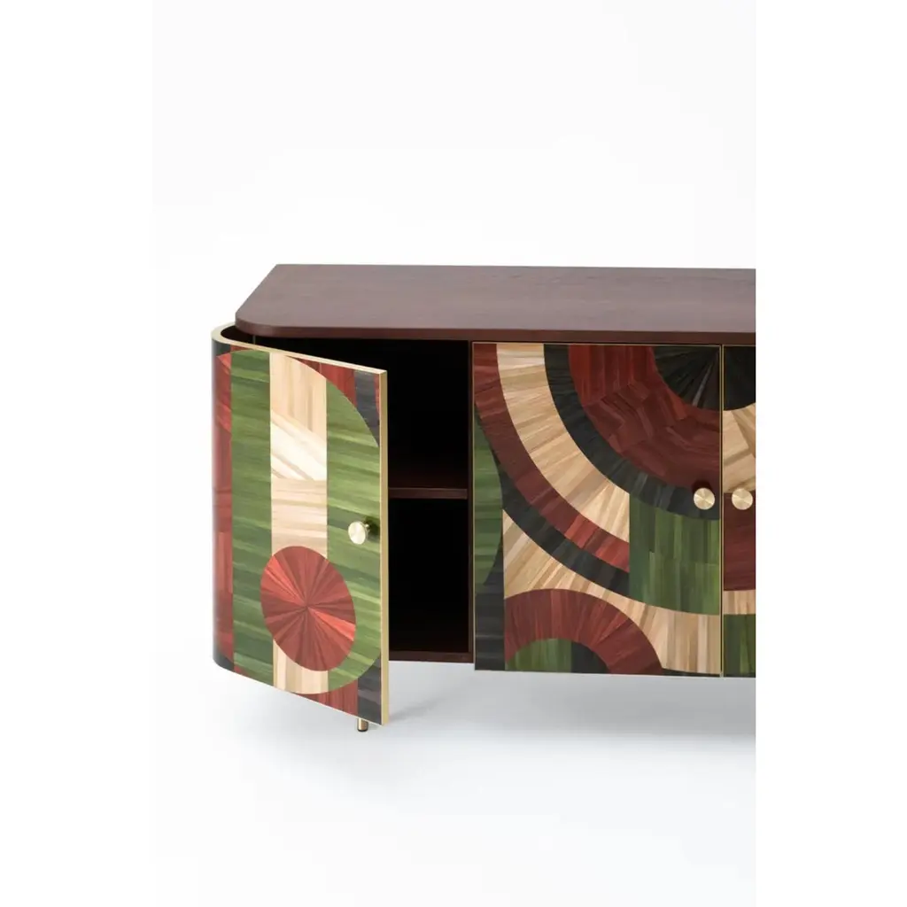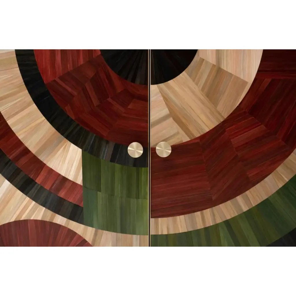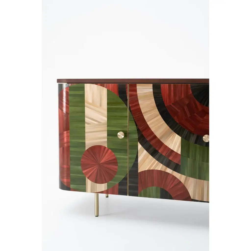 Solomia 3 Cabinet by Ruda StudioDimensions: D 45 x W 170 x H 75 cm.Materials: Solid wood (ash), rye straw inlay, plywood and brass.Weight: 70 kg.Dimensions are customizable. Please contact us. Inspired by the wealth of Ukrainian land, RUDA Studio has created aninterior object – the Solomia cabinet. Seemingly trapped between the pastand the future, it serves as a timeless example. Combining vintage Art Decostylization with the philosophy of contemporary Ukrainian design, the cabinet was crafted by the studio's founder and designer, Oleksandra Rudenko. Made from oak and adorned with ornaments from rye straw, the cabinet's origin lies in Western Ukraine. There, the 80-year-old grandfather, Orestes, collects strawfor our products, carefully sorting them by length and diameter. Duringthis process, the oak frame—the foundation of the cabinet—is created. The countertop undergoes stitching, revealing the texture of the wood. In our workshop, the straw undergoes a staining stage before being intricately inlaid into the cabinet itself.Design brand RUDA Studio was founded in 2017 by Oleksandra Rudenko and Yuriy Vovnyanko. RUDA Studio - Ukrainian artisanal atelier with harvest of Fine Craft Design.In the atelier we create unique household items. The studio seeks to make each project individual and special, focusing on feelings, custom items, and the combination of the historical and the modern. Our creations are inspired by natural materials and ancient craft techniques. Each product has its own function, but is more like an object of art that touchesthe soul. The vision of interior items encourages us to preserve and actualize our cultural heritage. In our works, we restore knowledge about Ukrainian folklore, pay attention to socially important topics and focus on the interaction between humans and nature. In the studio, objects are created from local materials - brass, copper, clay, straw, algae, trees, andstone.
