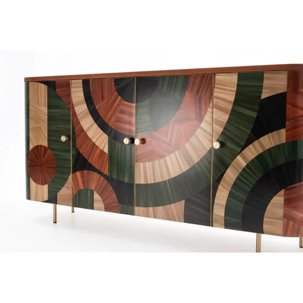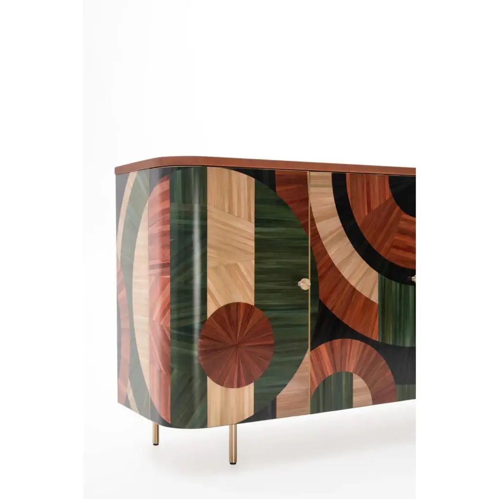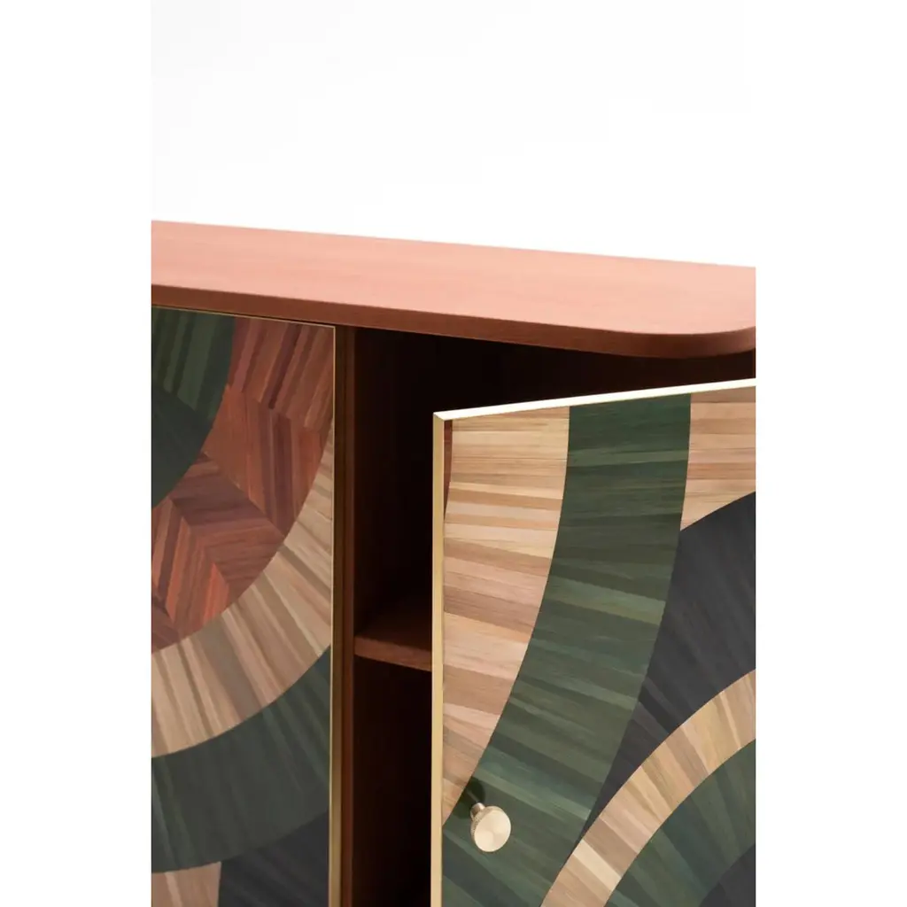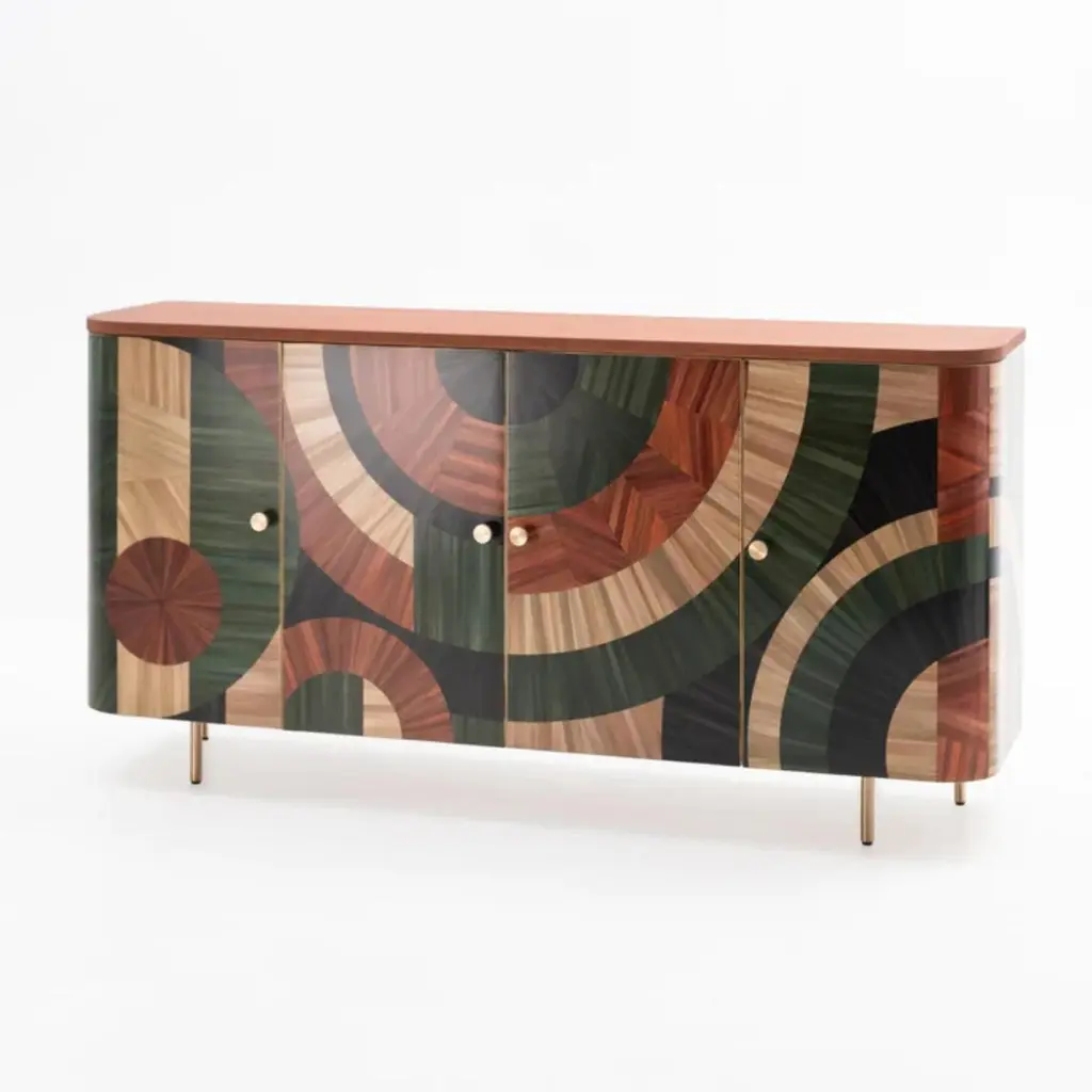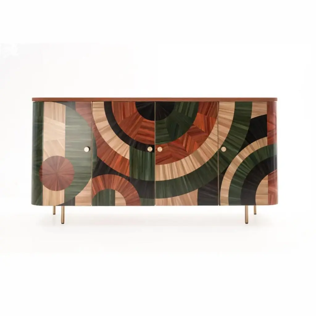 Solomia 4 Cabinet by Ruda StudioDimensions: D 45 x W 170 x H 75 cm.Materials: Solid wood (ash), rye straw inlay, plywood, glass and brass.Weight: 70 kg.Dimensions are customizable. Please contact us. Inspired by the wealth of Ukrainian land, RUDA Studio has created aninterior object – the Solomia cabinet. Seemingly trapped between the pastand the future, it serves as a timeless example. Combining vintage Art Decostylization with the philosophy of contemporary Ukrainian design, the cabinet was crafted by the studio's founder and designer, Oleksandra Rudenko. Made from oak and adorned with ornaments from rye straw, the cabinet's origin lies in Western Ukraine. There, the 80-year-old grandfather, Orestes, collects strawfor our products, carefully sorting them by length and diameter. Duringthis process, the oak frame—the foundation of the cabinet—is created. The countertop undergoes stitching, revealing the texture of the wood. In our workshop, the straw undergoes a staining stage before being intricately inlaid into the cabinet itself.Design brand RUDA Studio was founded in 2017 by Oleksandra Rudenko and Yuriy Vovnyanko. RUDA Studio - Ukrainian artisanal atelier with harvest of Fine Craft Design.In the atelier we create unique household items. The studio seeks to make each project individual and special, focusing on feelings, custom items, and the combination of the historical and the modern. Our creations are inspired by natural materials and ancient craft techniques. Each product has its own function, but is more like an object of art that touchesthe soul. The vision of interior items encourages us to preserve and actualize our cultural heritage. In our works, we restore knowledge about Ukrainian folklore, pay attention to socially important topics and focus on the interaction between humans and nature. In the studio, objects are created from local materials - brass, copper, clay, straw, algae, trees, andstone.