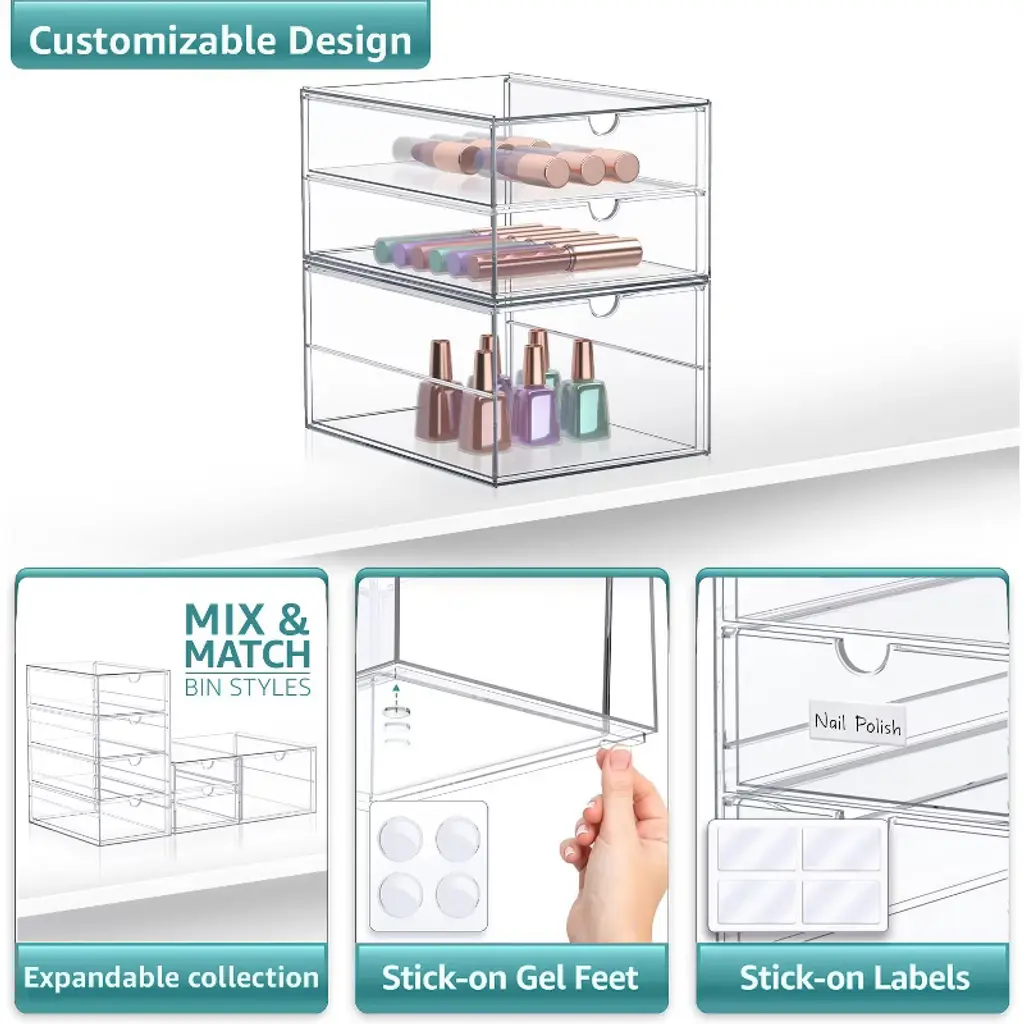 Sorbus 2 Pack 3-drawer Clear Stackable Storage Organizer - Bathroom, Laundry Room & Home Countertop Drawer System