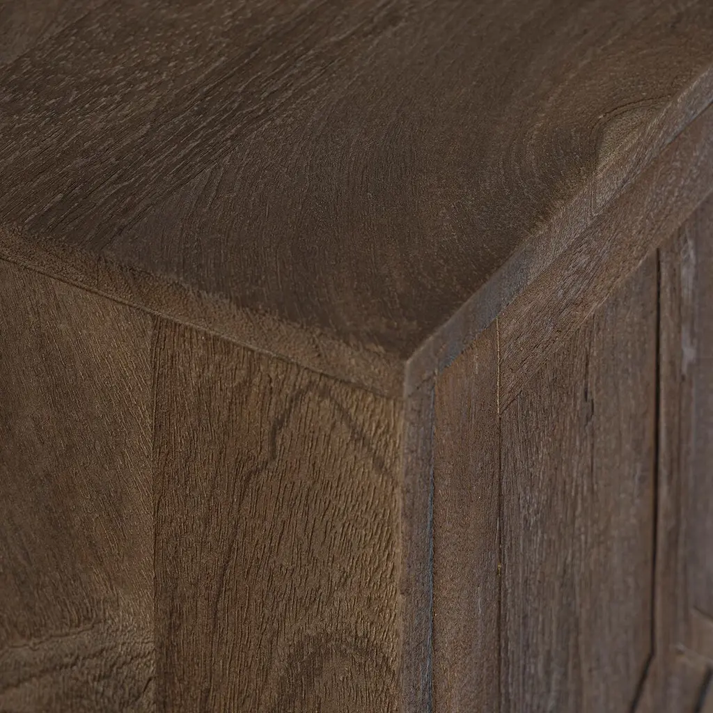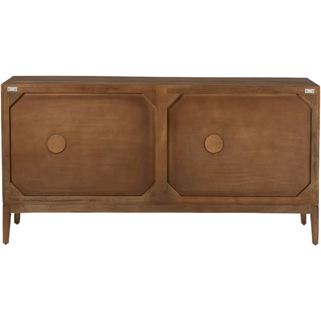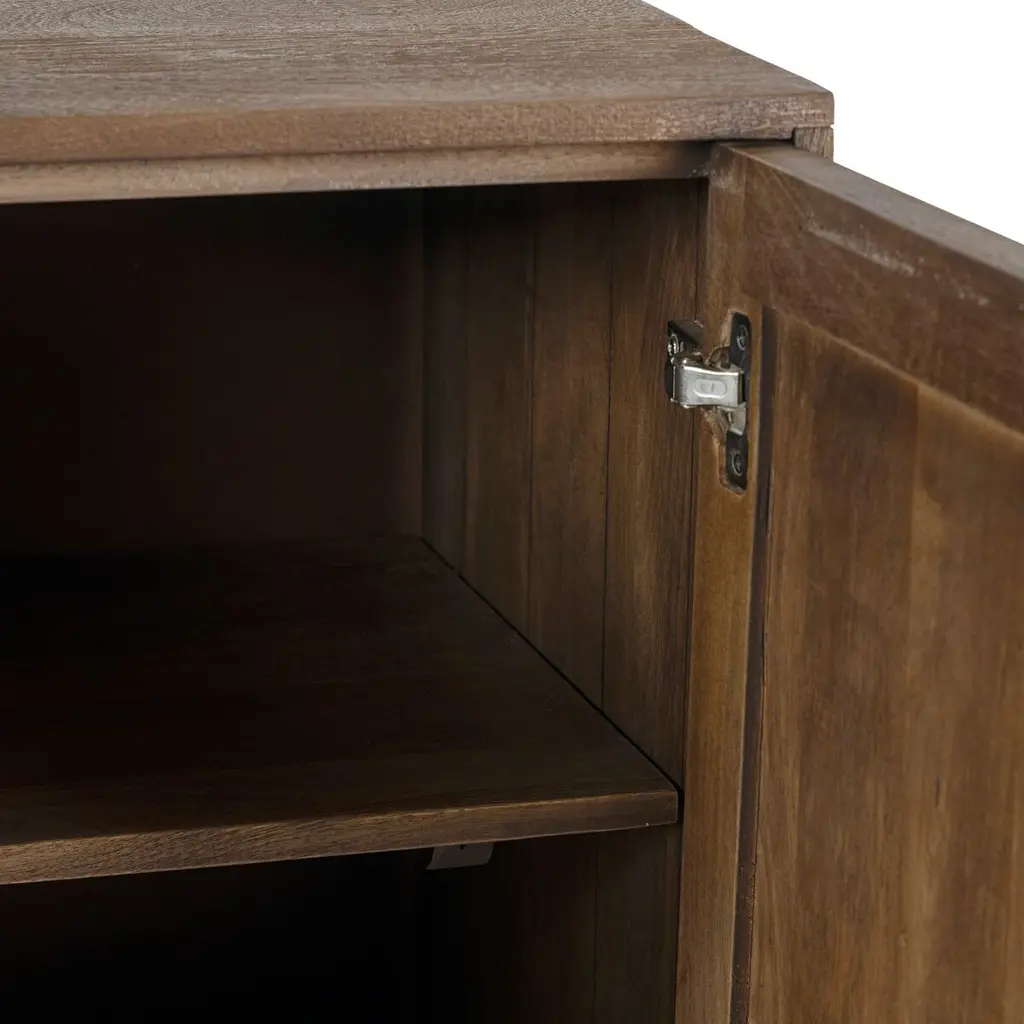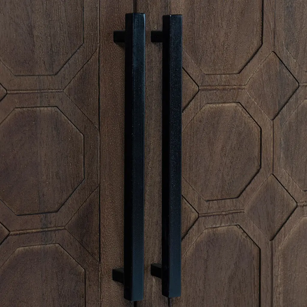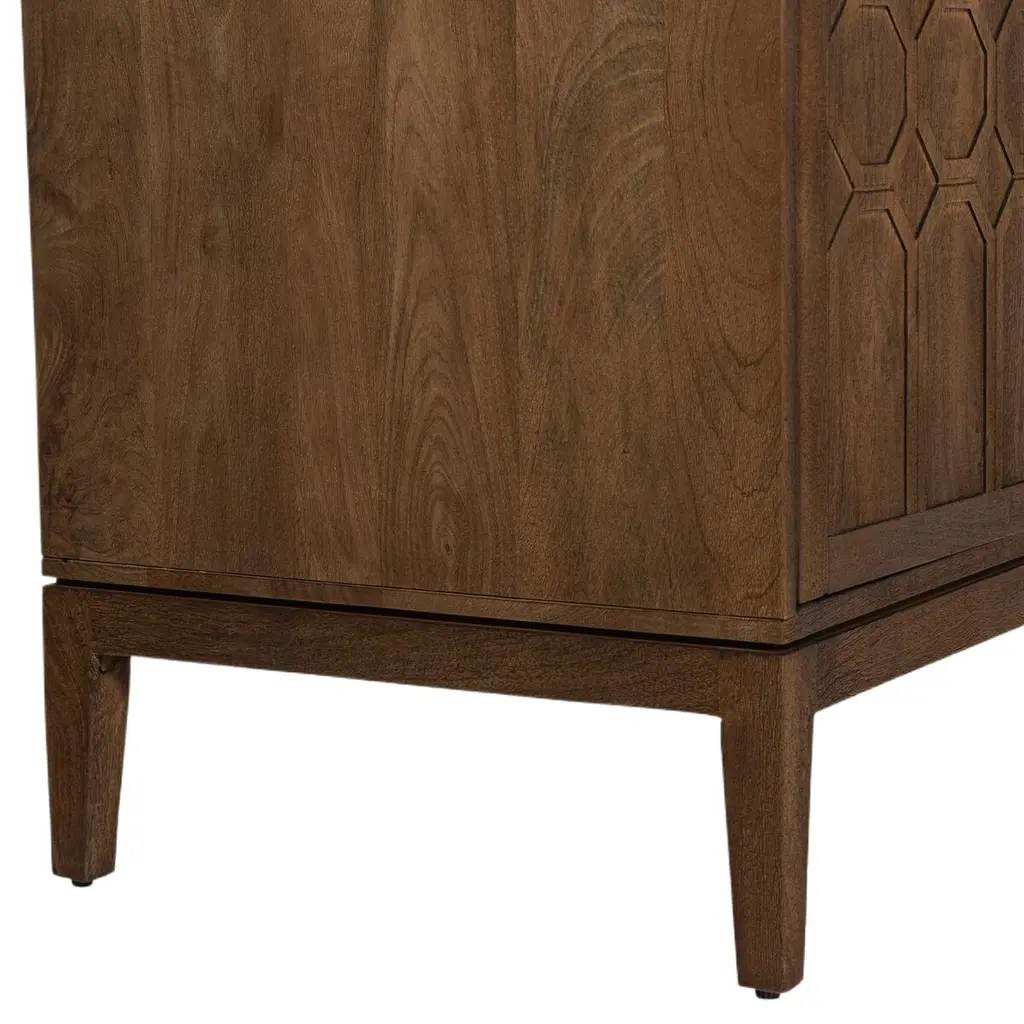 The Sorrel cabinet is a beautifully crafted piece featuring a solid wood structure. Its front cabinet doors showcase an intricate trellis-inspired design, adding depth and character to the piece. The cabinet is accented with sleek metal handles and hinges, offering both style and durability. Perfect for enhancing any room, the Sorrel Cabinet blends functionality with a unique, decorative touch.
