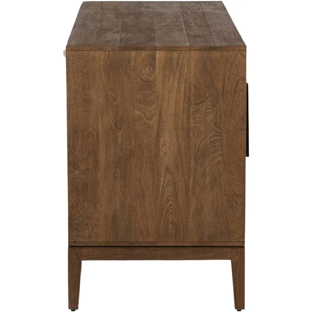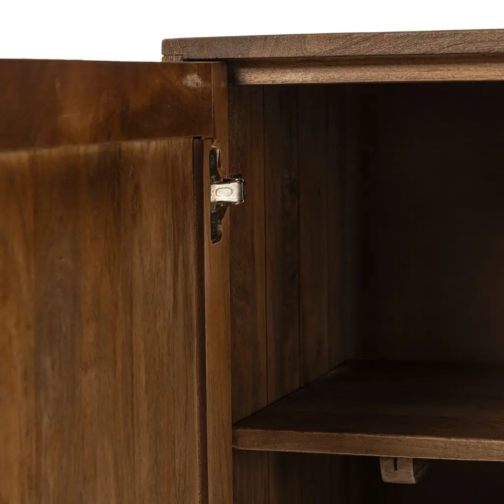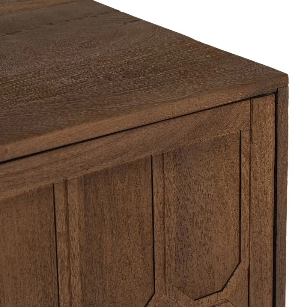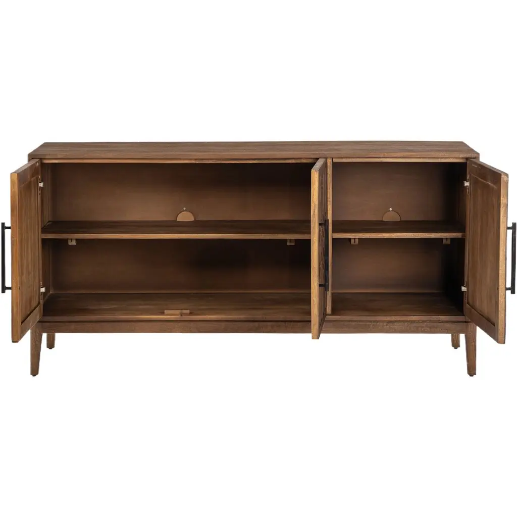 The Sorrel cabinet is a beautifully crafted piece featuring a solid wood structure. Its front cabinet doors showcase an intricate trellis-inspired design, adding depth and character to the piece. The cabinet is accented with sleek metal handles and hinges, offering both style and durability. Perfect for enhancing any room, the Sorrel Cabinet blends functionality with a unique, decorative touch.