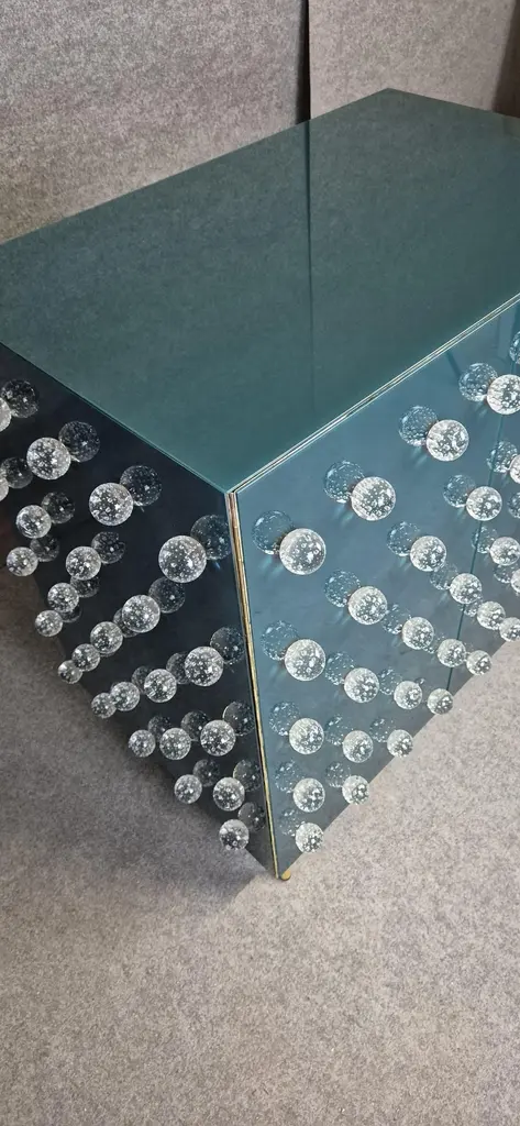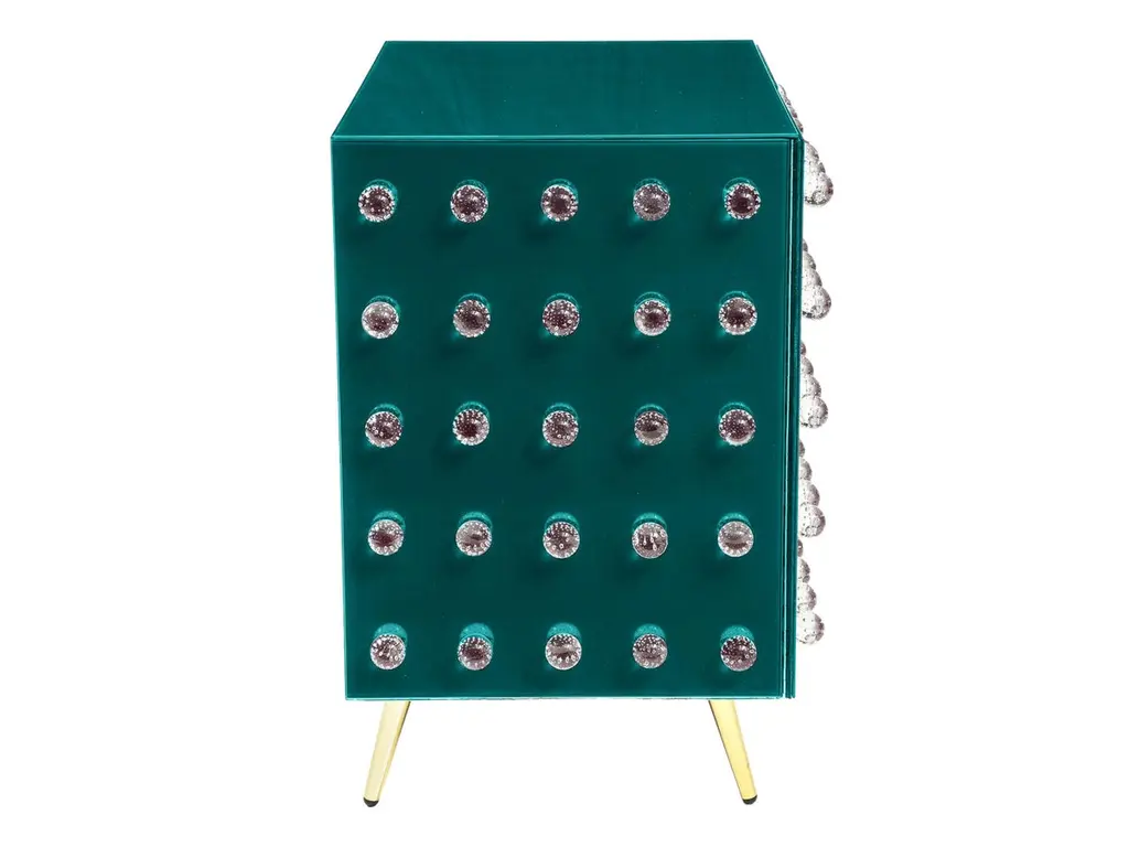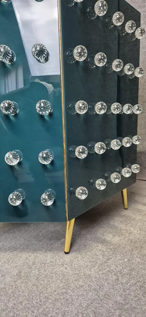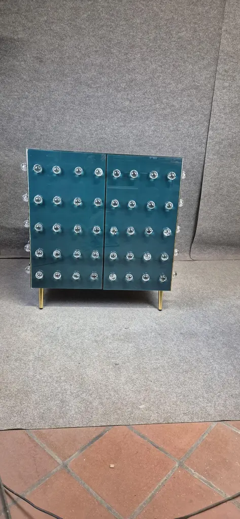Introducing the Spectacular Blue Pantry Cabinet, a masterpiece of Italian craftsmanship that brings the timeless elegance of Murano glass into your home. This unique piece is not just a pantry cabinet; it's a statement of luxury and style, meticulously handcrafted in Italy. The cabinet is constructed from high-quality Betulla, ensuring durability and a sleek finish.The standout feature of this cabinet is its exquisite Murano glass doors, showcasing the renowned Italian glassmaking tradition. The doors are adorned with intricate intagliato patterns and vibrant colored glass, creating a stunning visual impact that elevates any room. The cabinet rests on elegant brass feet (piedini in Ottone), adding a touch of mid-century modern style to its design.This Murano Glass Cabinet is a one-of-a-kind piece, with each cabinet being the only example of its kind. The production process takes 3-4 weeks, reflecting the meticulous attention to detail and craftsmanship involved. The cabinet is new and handmade, emphasizing its unique character and quality. Made in Italy, this pantry cabinet is not just furniture; it's a piece of art that brings Italian elegance and craftsmanship into your home.