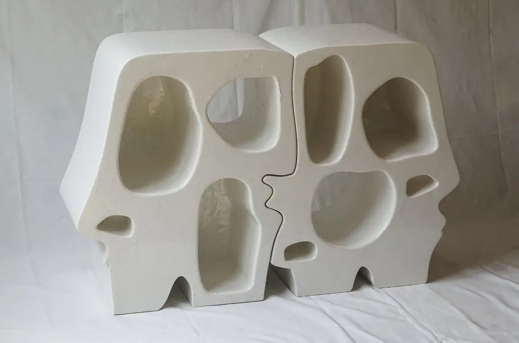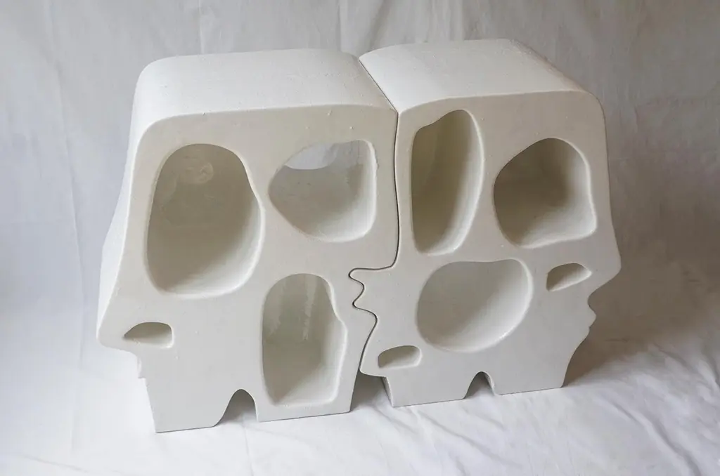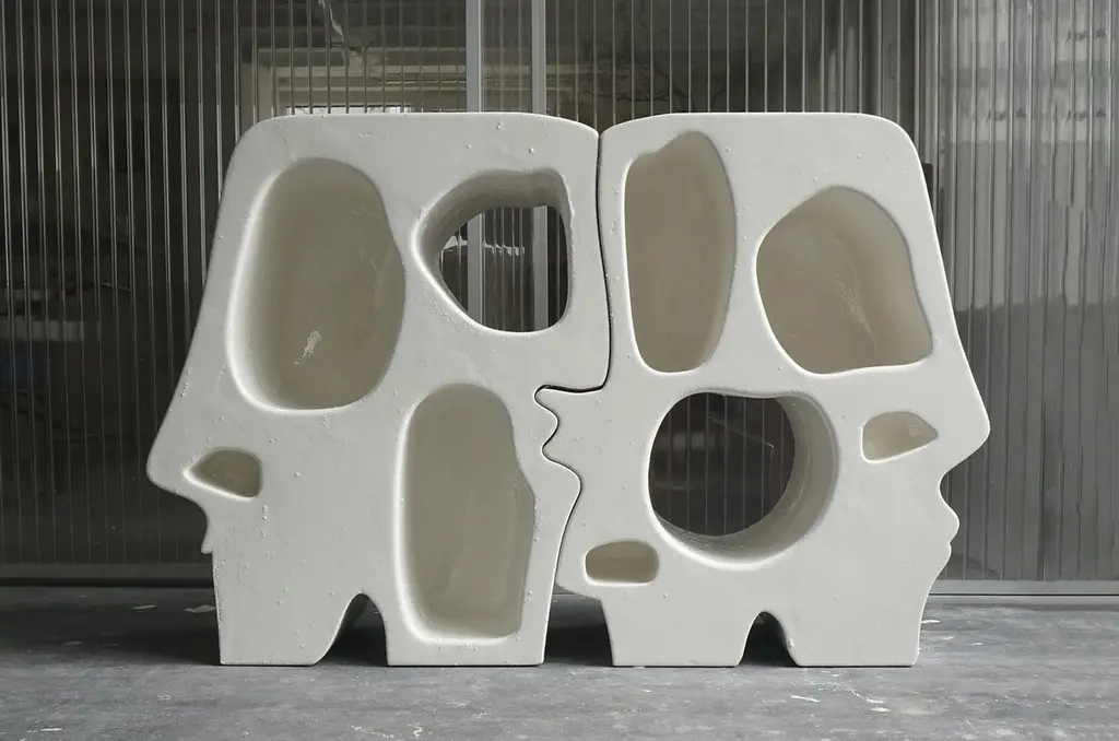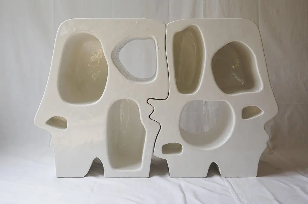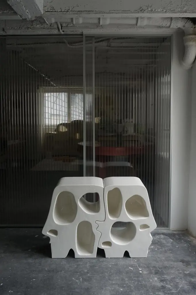 Spectator twins by Freia AchenbachLimited Edition of 25Dimensions: D 105 x W 33 cm x H 68 cmMaterials: resin, sand, foamThe amorphly shaped shelf is not only offering storage or presentation space, but stimulates the mechanism of projection and alludes to different faces that can only be recognized at second glance. When a sensory stimulus is offered to our perception, the spirit accepts this piece and completes what is missing. By recognizing the faces in the object, the role between subject and object is reversed and the shelf is moved into the position of the observer.Spectator Twins is part of the Spectator Shelf family . It consists of two elements that are interlocking with each other and can be used as a small cabinet or sideboard. Like the rest of the Spectator family, it is characterized by its amorphous curved shapes and alludes to different faces that can be recognized at second glance. Each piece is hand painted with resin whichgives each shelf a unique and vibrant finish.Freia Achenbach is a Stuttgart-based object, furniture, and spatial designer. Her approach allows movement between disciplines and playfully explores material, form, and colour. In her work Freia Achenbach experiments with a wide variety of materials and both traditional and innovative manufacturing processes.Her objects always tell a story and bring a certain ambiguity with them. All objects are handmade and/or created in collaboration with small manufactories. She produces objects as unique pieces as well as in small series and realizes commissioned works for customers. Since 2018 she has been collaborating with June Gschwander and Carlo Kurth under the joint design studio anima ona. She has completed projects with a range of clients including Fondation d´entreprise Martell, Kunstverein Böblingen e.V., GRDXKN structure printing, Studio Saje, Moncomble Paris, Centre Pompidou.