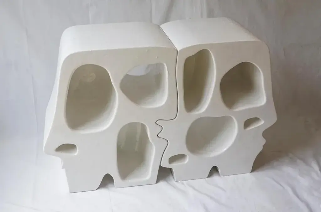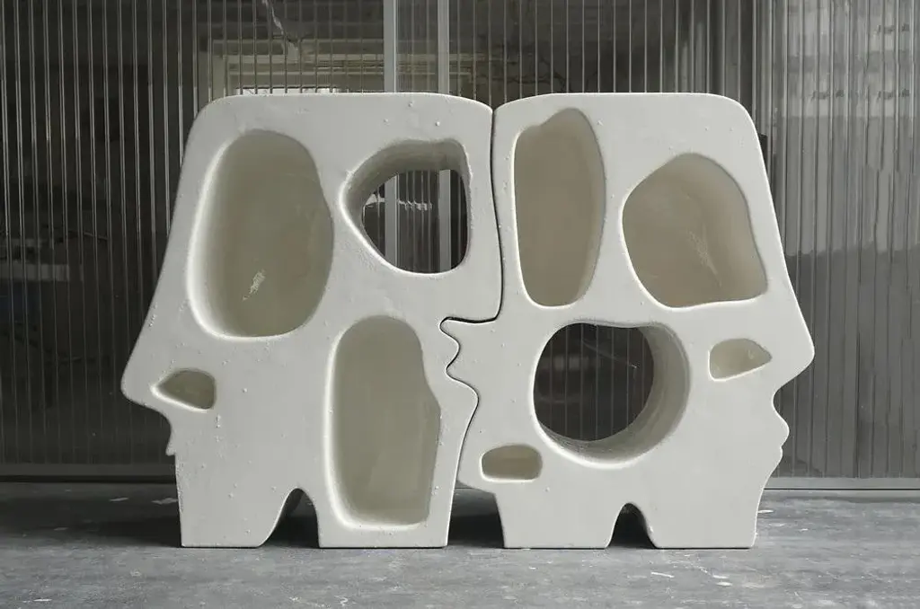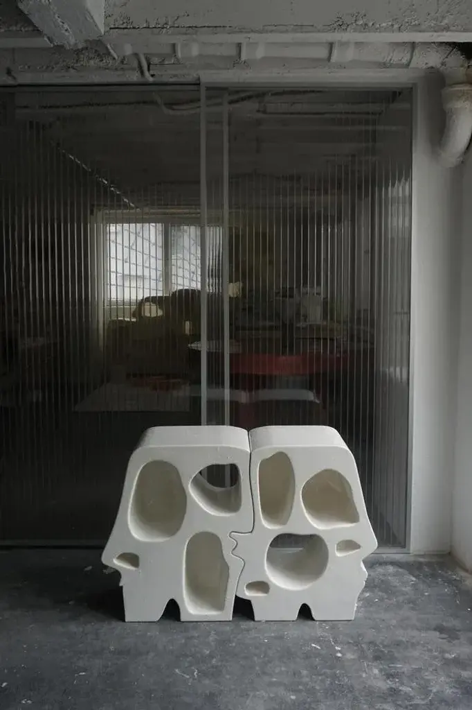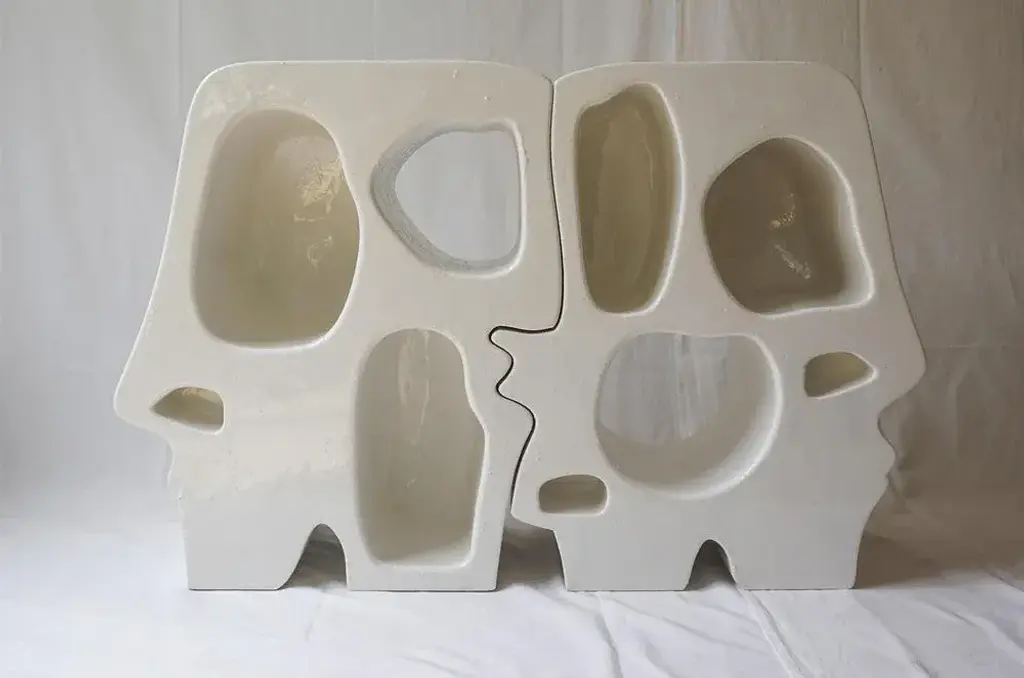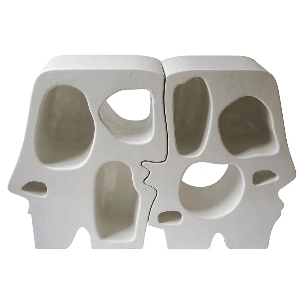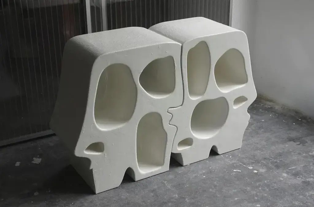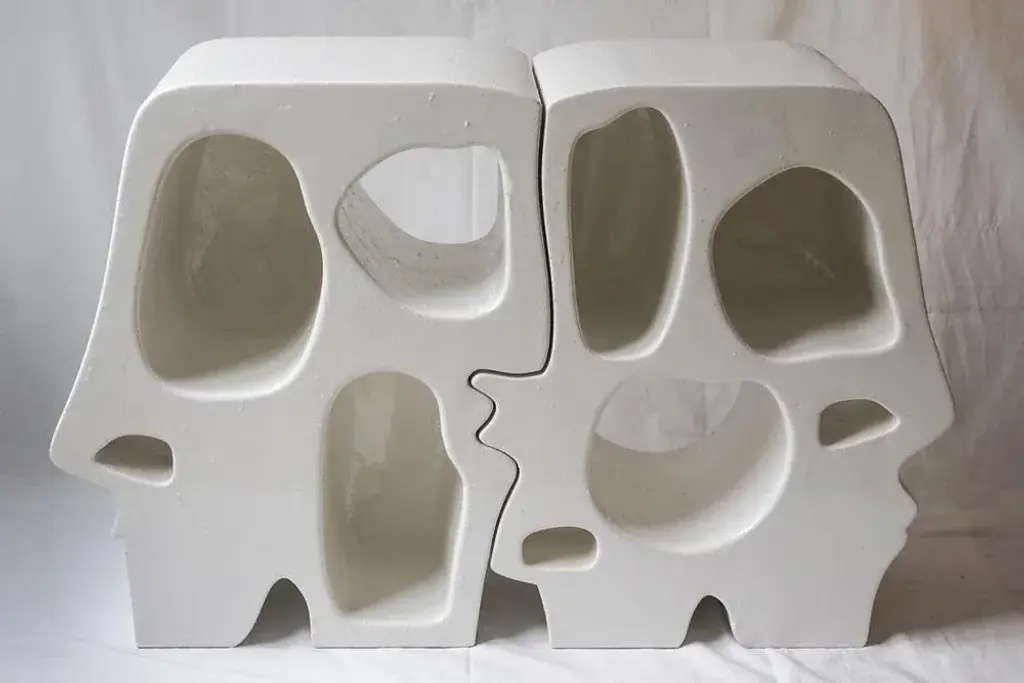 Spectator twins by freia achenbach limited edition of 25 dimensions: d 105 x w 33 cm x h 68 cm materials: resin, sand, foam the amorphly shaped shelf is not only offering storage or presentation space, but stimulates the mechanism of projection and alludes to different faces that can only be recognized at second glance. When a sensory stimulus is offered to our perception, the spirit accepts this piece and completes what is missing. By recognizing the faces in the object, the role between subject and object is reversed and the shelf is moved into the position of the observer. Spectator twins is part of the spectator shelf family . It consists of two elements that are interlocking with each other and can be used as a small cabinet or sideboard. Like the rest of the spectator family, it is characterized by its amorphous curved shapes and alludes to different faces that can be recognized at second glance. Each piece is hand painted with resin which gives each shelf a unique and vibrant finish. Freia achenbach is a stuttgart-based object, furniture, and spatial designer. Her approach allows movement between disciplines and playfully explores material, form, and colour. In her work freia achenbach experiments with a wide variety of materials and both traditional and innovative manufacturing processes. Her objects always tell a story and bring a certain ambiguity with them. All objects are handmade and/or created in collaboration with small manufactories. She produces objects as unique pieces as well as in small series and realizes commissioned works for customers. Since 2018 she has been collaborating with june gschwander and carlo kurth under the joint design studio anima ona. She has completed projects with a range of clients including fondation d´entreprise martell, kunstverein böblingen e.v., grdxkn structure printing, studio saje, moncomble paris, centre pompidou. This piece is attributed to the mentioned designer/maker. It has no attribution mark and no official proof of authenticity, however it is well documented in design history. I take full responsibility for any authenticity issues arising from misattribution