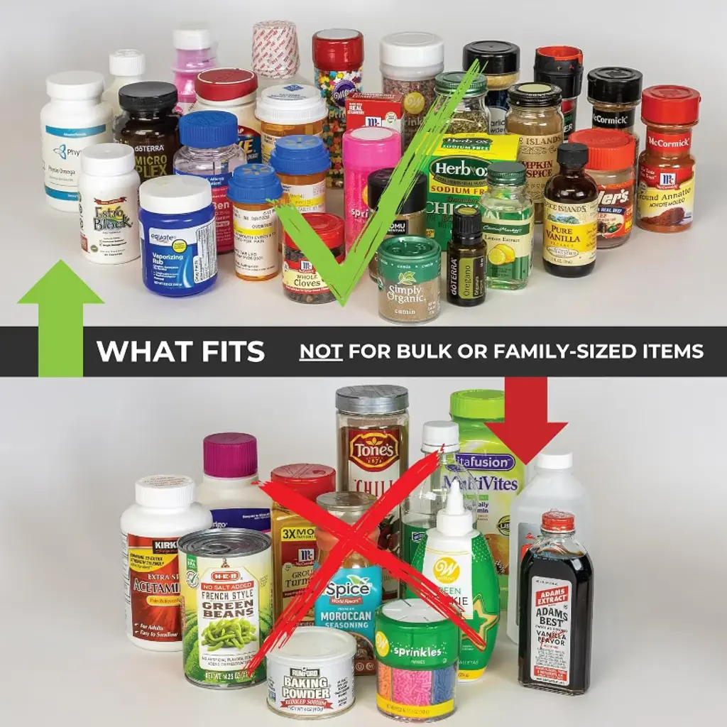 Introducing the Cabinet Caddy—your shortcut to clutter-free, easy-to-navigate kitchen and bathroom cabinets. Designed for instant access to small spices and everyday essentials (note: not suitable for bulk or family-sized items), it uses smart double-decker shelves and a modular build to maximize space—with zero fussy setup. Just remember to measure your cabinet first (11" depth and 11" height clearance required) to ensure a perfect fit, then enjoy tidy, reachable storage that simplifies your daily routine. Instant-Access for Small Essentials: No more digging through jumbled cabinets to find tiny spices or small items. The Cabinet Caddy’s pull-out, rotating design lets you grab what you need in seconds—just lift the handle, pull it forward, and spin to see everything. It’s tailored for small essentials (skip bulk sizes!), keeping every item visible and within arm’s reach, whether you’re prepping meals or grabbing bathroom basics. Measure First for a Perfect Fit: To make sure it works in your space, check that your cabinet has 11" of depth and 11" of height clearance. The double-decker shelves are also sized for purpose: the top shelf (4.0” H x 2.25” W) fits shorter items, while the bottom shelf (5.25” H x 2.5” W) accommodates taller ones. This thoughtful sizing means no wasted space—everything has a neat spot. Modular Design to Expand Storage: Maximize cabinet space with its double-decker shelves (no more stacking items on top of each other!). Better yet, it’s modular—easily place multiple caddies side-by-side to grow your storage as needed. Whether you have a few spices to organize or more small essentials, it adapts to keep your cabinets tidy and efficient. No-Assembly, Hassle-Free Use: Skip the confusing instructions and tools—this caddy is ready to use right out of the box. Just set it in your cabinet, fill it with your items, and you’re done. The built-in handle makes pulling it out effortless, and a quick rotate gives full access to every item—perfect for busy mornings or rushed meal prep. Bonus Accessories for Extra Convenience: It comes with handy extras to make organization even smoother: stick-on labels for handles (so you can quickly identify what’s inside), two foam stability inserts (prevents tipping when you pull or rotate), and 3M non-skid feet (keeps the caddy steady on cabinet shelves). These small touches turn basic storage into a reliable, user-friendly solution.