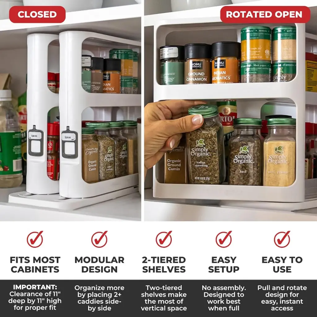 Spice Rack Organizer For Cabinet - Slide & Rotate Kitchen Organizers And Storage - Double Shelves - Magnetic Modular Design - 10.8" *5.25"