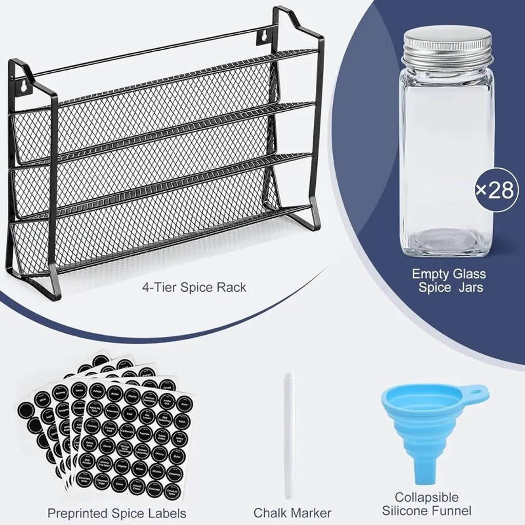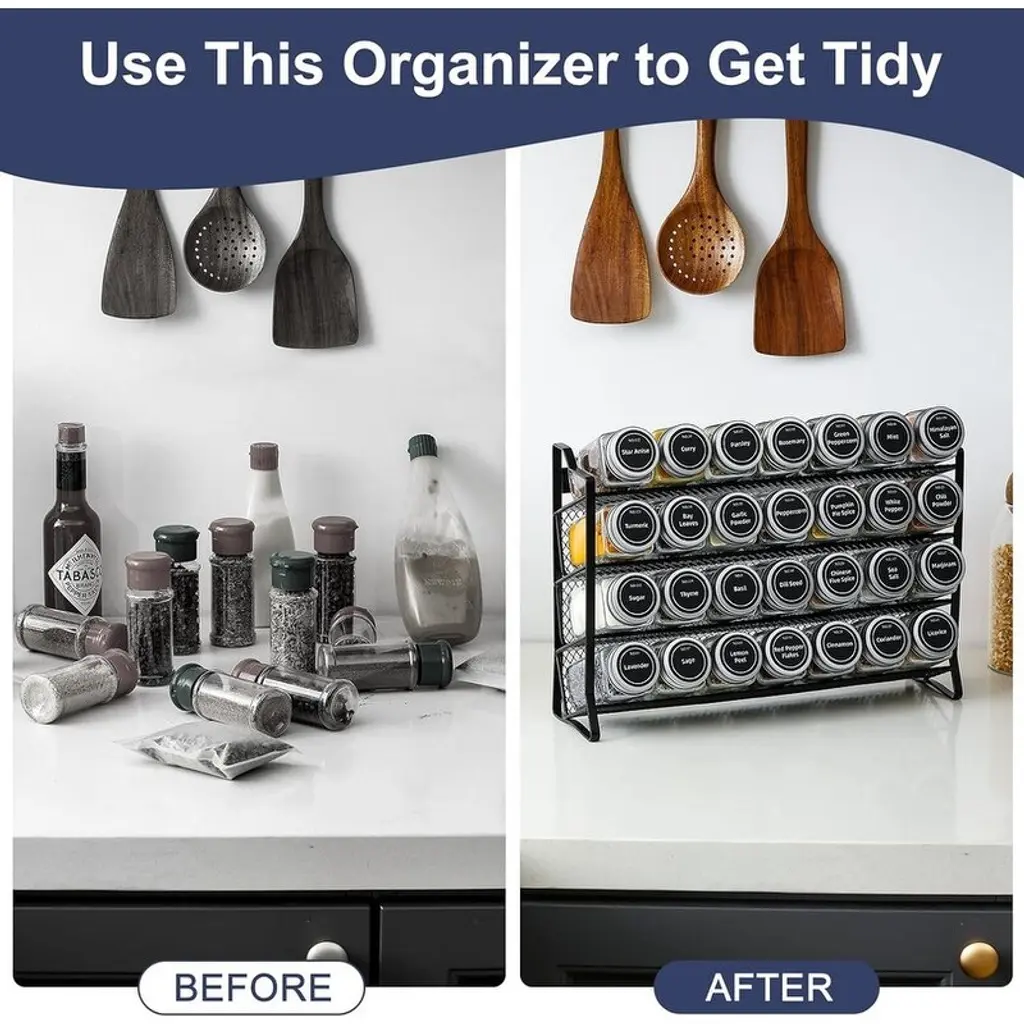 Spice Rack Organizer For Cabinet, Spice Organizer With 28 Empty - 13.5"d X 3.75"w X 10"h - Silver