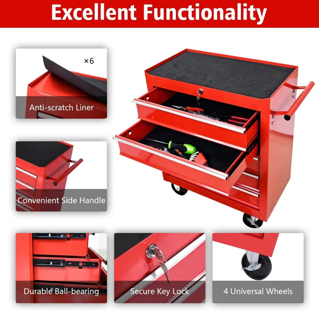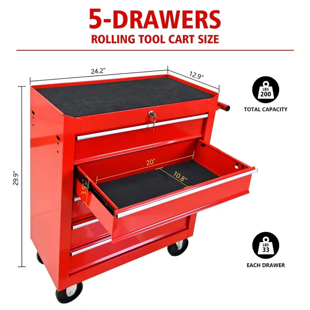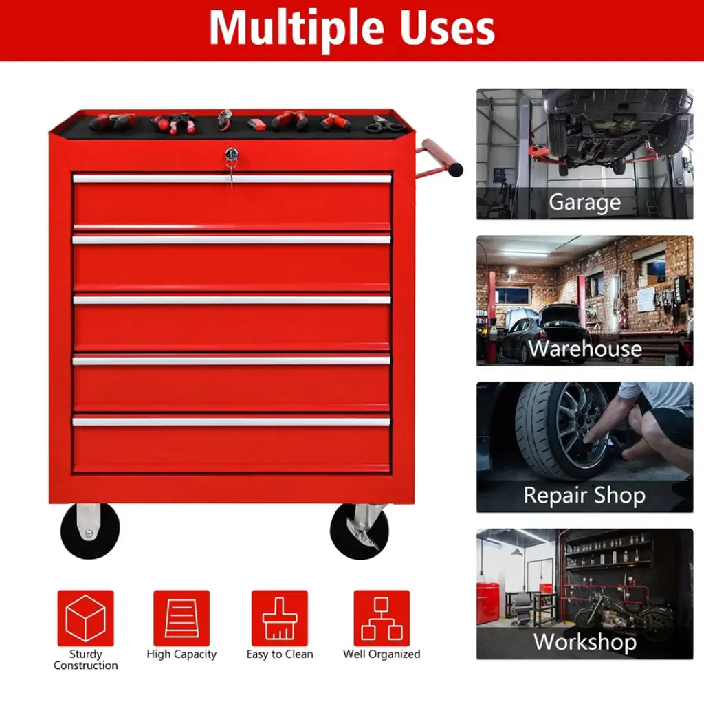 Steel Tool Storage Cabinet Organizer,5-drawer Tool Chest With Lock, Includes Key For Secure Storage