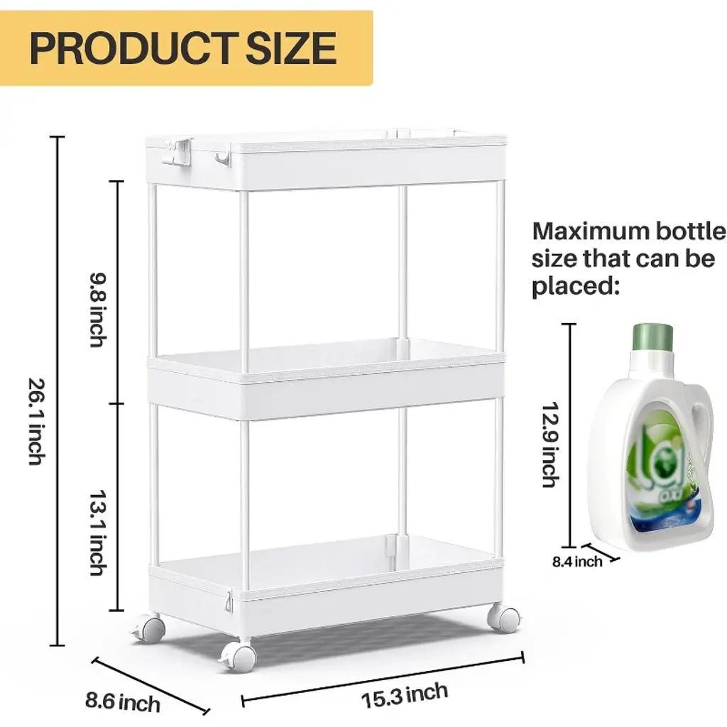 Storage Rolling Cart, 3 Tier Laundry Room Organization Utility Cart Bathroom Organizer Mobile Shelving Unit Shelves Multi-functional Trolley