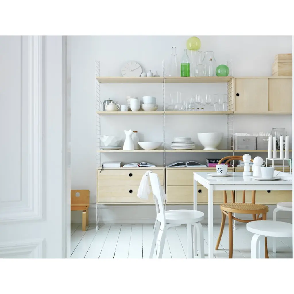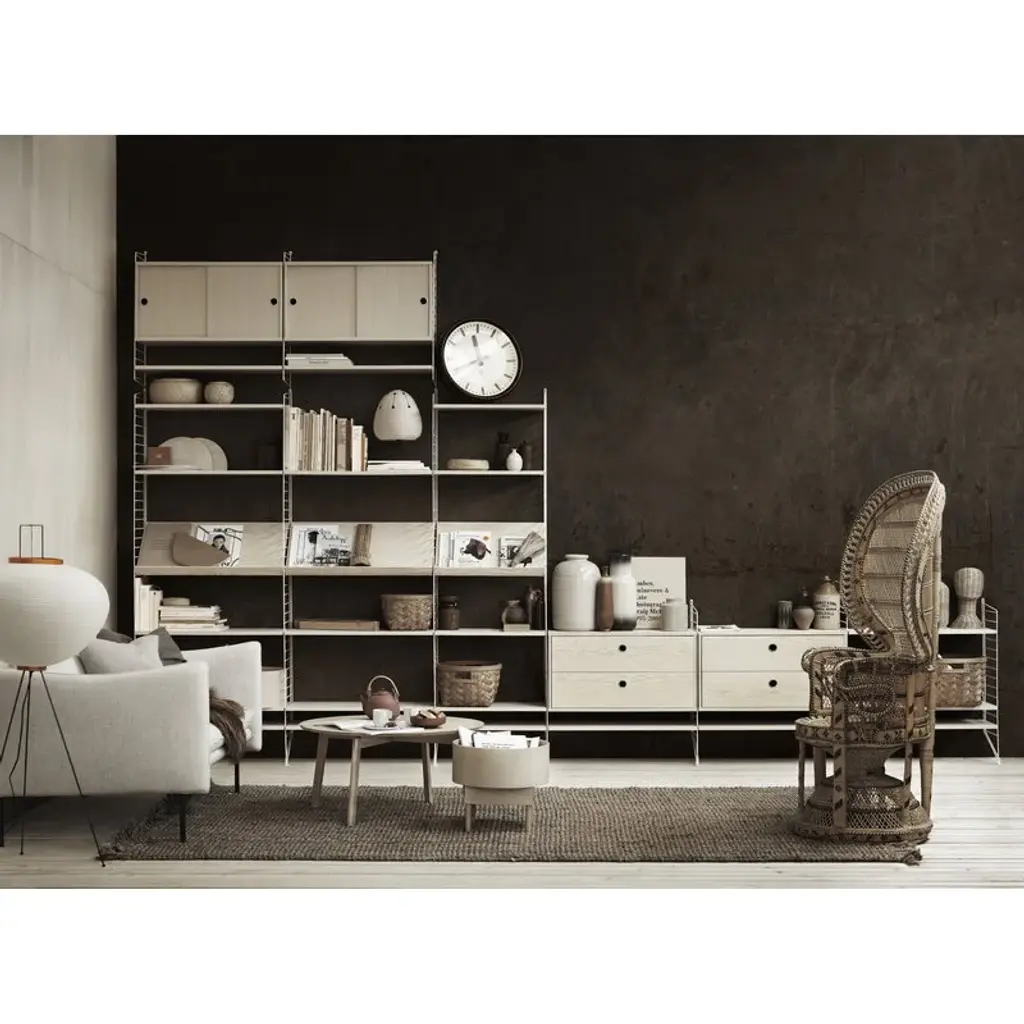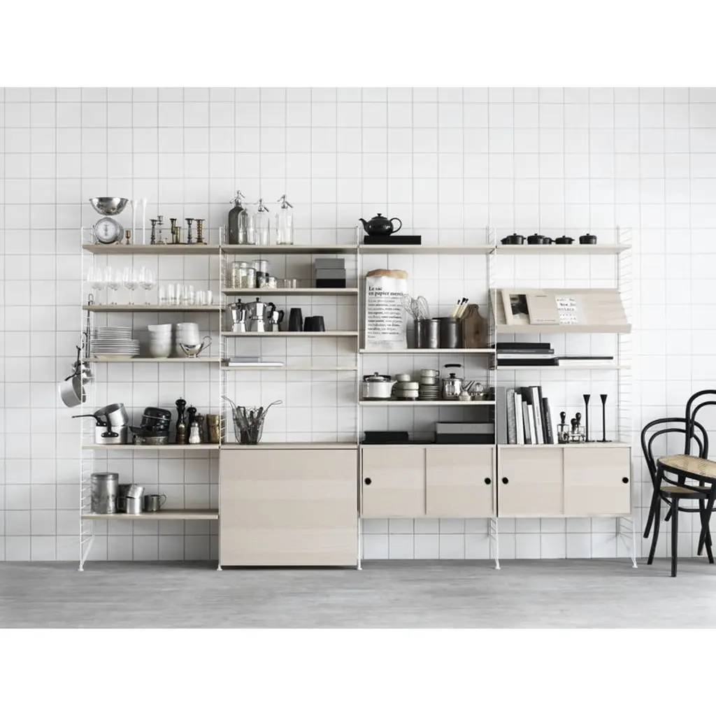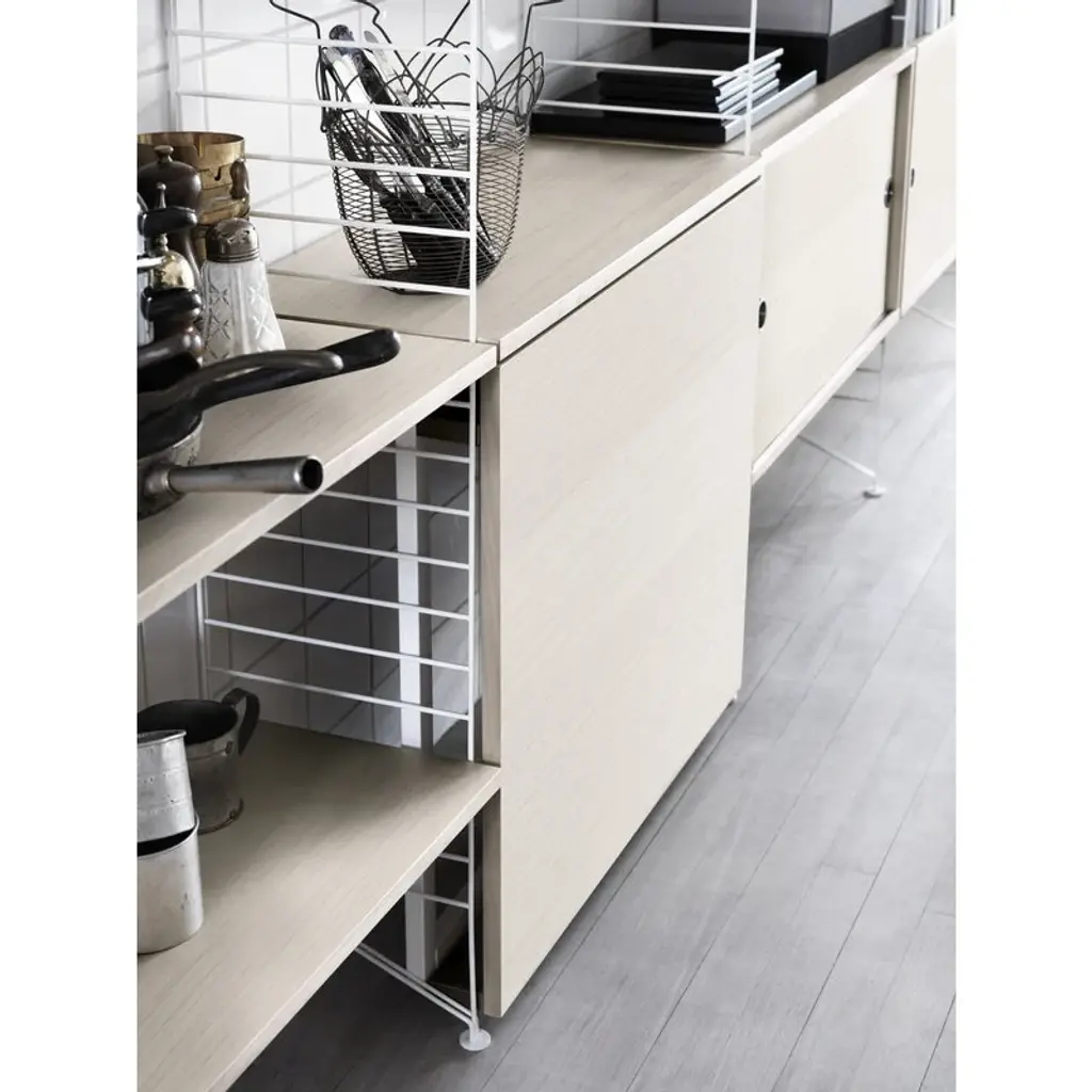 The String cabinet features two sliding doors, and it is suitable for the String System floor and side panels with a width of 11.81 x 0 in (30 x cm. cm). String System is a flexible shelving system that Swedish architect Nils Strinning designed in 1949. The signature ladder-like side panels can be combined with shelves, magazine shelves, work desks, folding tables, chests and cabinets to form a system that best suits your needs. The timeless and minimalist design of String System is perfect for both contemporary homes and offices.