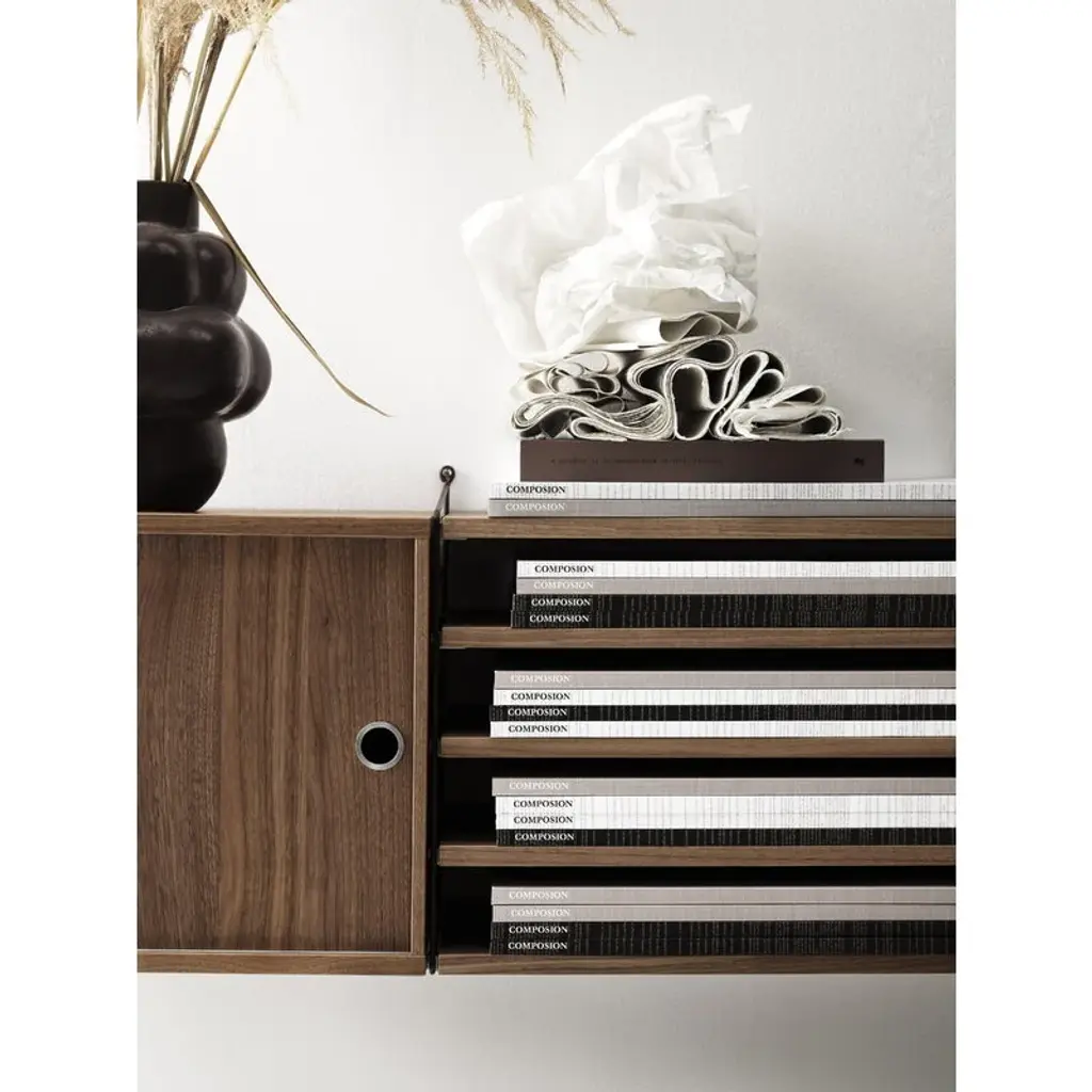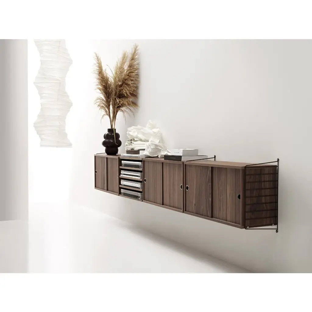 The String cabinet features two sliding doors, and it is suitable for the String System floor and side panels with a width of 11.81 x 0 in (30 x cm. cm). String System is a flexible shelving system that Swedish architect Nils Strinning designed in 1949. The signature ladder-like side panels can be combined with shelves, magazine shelves, work desks, folding tables, chests and cabinets to form a system that best suits your needs. The timeless and minimalist design of String System is perfect for both contemporary homes and offices.