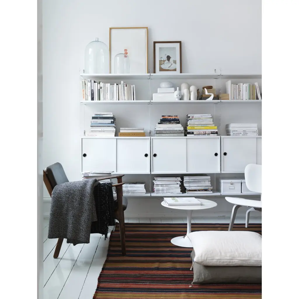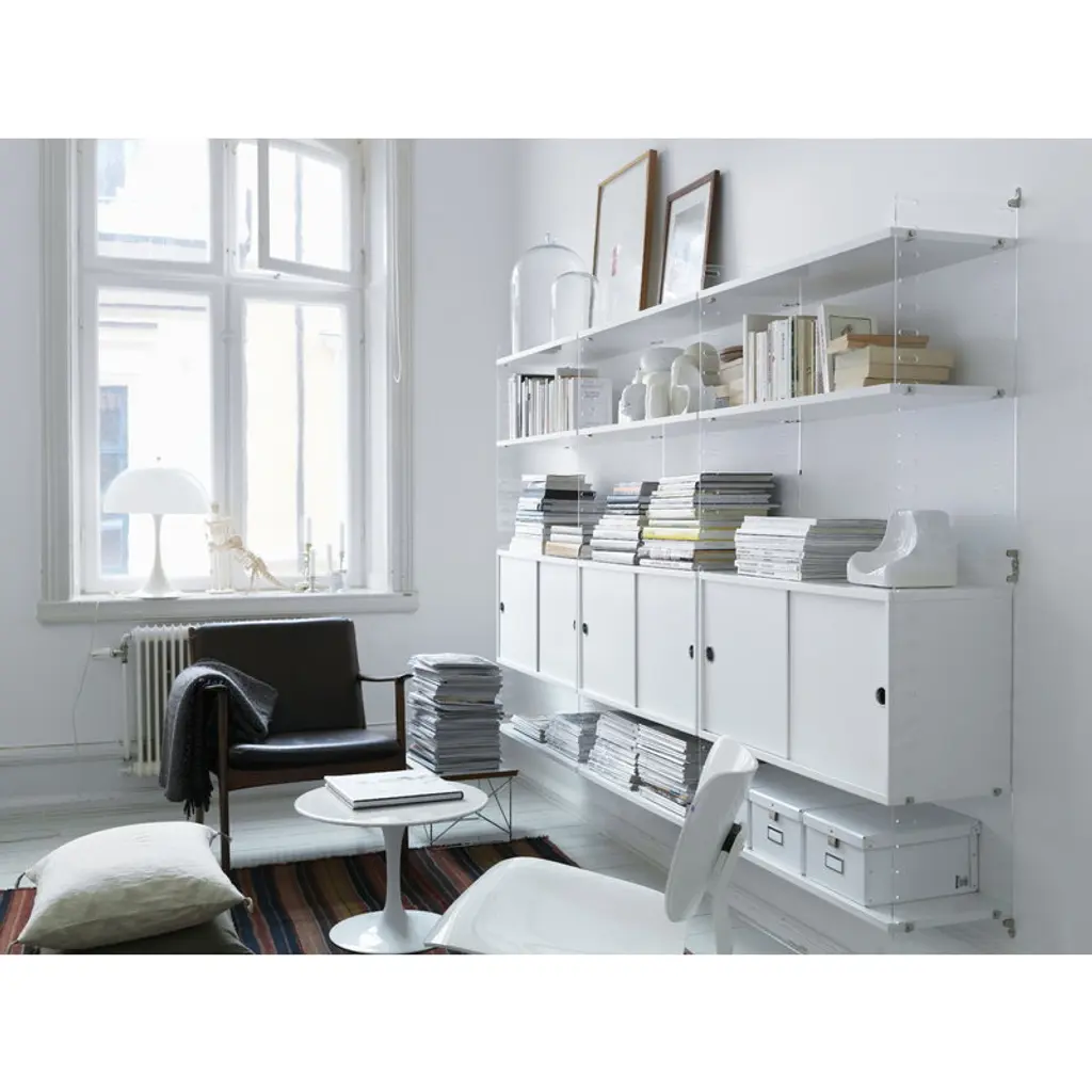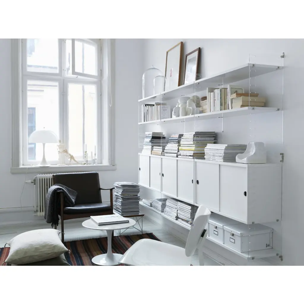 The String cabinet features two sliding doors, and it is suitable for the String System floor and side panels with a width of 11.81 x 0 in (30 x cm. cm). String System is a flexible shelving system that Swedish architect Nils Strinning designed in 1949. The signature ladder-like side panels can be combined with shelves, magazine shelves, work desks, folding tables, chests and cabinets to form a system that best suits your needs. The timeless and minimalist design of String System is perfect for both contemporary homes and offices.