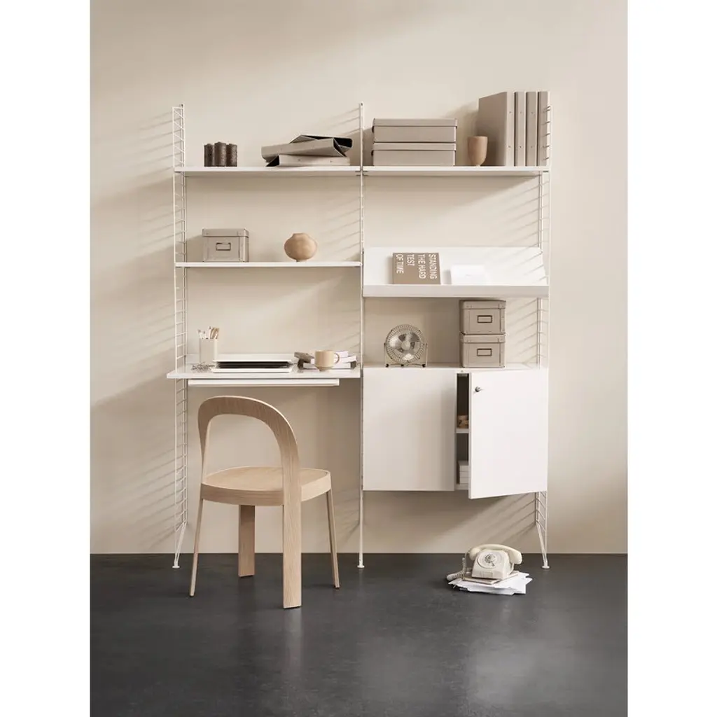 Sometimes secrets are so private that belongings need to be stored behind locked doors. That’s where String’s two-door cabinet with a lock comes in! One door locks securely, while the other opens easily with a simple push. The lockable cabinet is compatible with String System’s floor and side panels with a width of 11.81 x 0 in (30 x cm. cm). String System is a flexible shelving system that Swedish architect Nils Strinning designed in 1949. The signature ladder-like side panels can be combined with shelves, magazine shelves, work desks, folding tables, chests and cabinets to form a system that best suits your needs. The timeless and minimalist design of String System is perfect for both contemporary homes and offices.