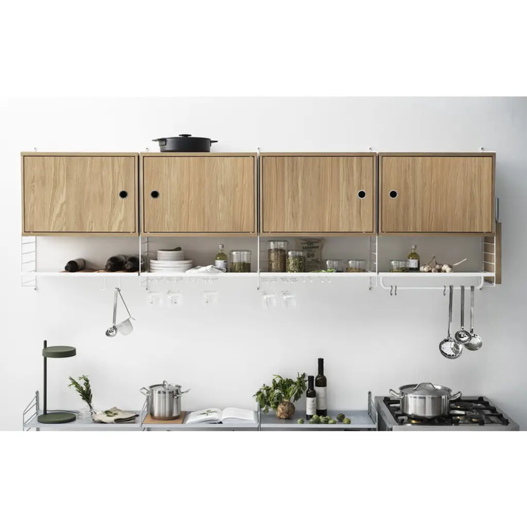 This String cabinet with a swing door adds convenient and stylish storage space to your String System. The cabinet is designed to fit all 11.81 in (30 cm) deep String panels, and the door can be mounted on either side. Inside the cabinet is one, adjustable shelf. String System is a timeless and flexible shelving system that Swedish architect Nils Strinning designed in 1949. The signature ladder-like side panels can be combined with shelves, magazine shelves, work desks, folding tables, chests and cabinets to form a system that best suits your needs. The timeless and minimalist design of String System is perfect for both contemporary homes and offices.
