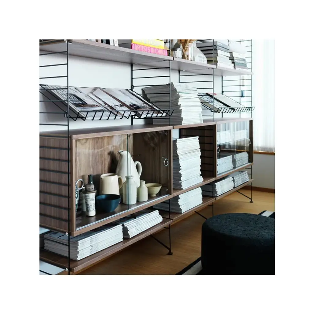 The String display cabinet with sliding glass doors complements the String shelving system in an elegant and practical manner. Suitable for all 11.81 in (30 cm) deep String panels, the display cabinet features two sliding glass doors and one adjustable shelf. This glass display cabinet provides beautiful and dust-free storage space for wine glasses and porcelain plates in the kitchen as well as decorative objects in the living room. String System is an iconic modular shelving system that was originally designed by Swedish architect Nils Strinning back in 1949. The signature ladder-like side panels can be combined with different shelves, magazine racks, work desks, folding tables, chests and cabinets, allowing you to create a customized system that best suits your needs. The timeless and minimalist design of the String System makes it an ideal choice for modern homes and offices, and the versatile shelving system can be endlessly expanded both vertically and horizontally. String Furniture remains dedicated to designing and manufacturing its products in Sweden.