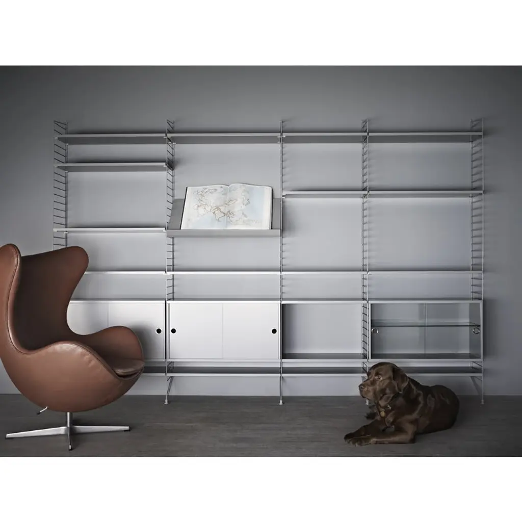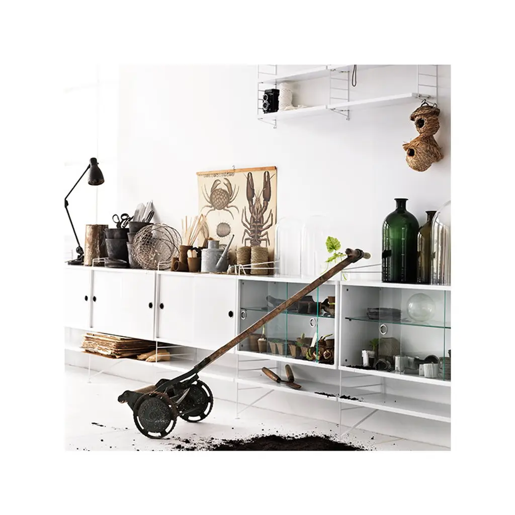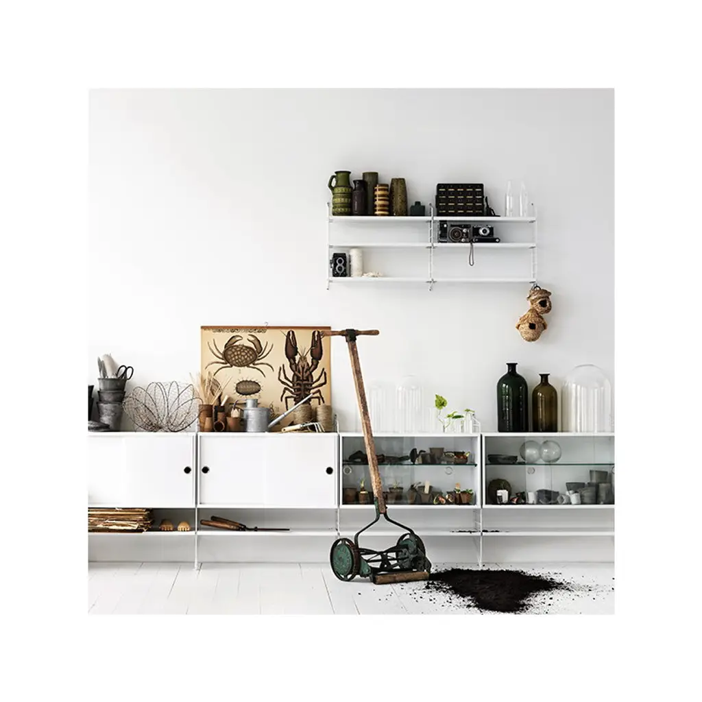 The String display cabinet with sliding glass doors complements the String shelving system in an elegant and practical manner. Suitable for all 11.81 in (30 cm) deep String panels, the display cabinet features two sliding glass doors and one adjustable shelf. This glass display cabinet provides beautiful and dust-free storage space for wine glasses and porcelain plates in the kitchen as well as decorative objects in the living room. String System is an iconic modular shelving system that was originally designed by Swedish architect Nils Strinning back in 1949. The signature ladder-like side panels can be combined with different shelves, magazine racks, work desks, folding tables, chests and cabinets, allowing you to create a customized system that best suits your needs. The timeless and minimalist design of the String System makes it an ideal choice for modern homes and offices, and the versatile shelving system can be endlessly expanded both vertically and horizontally. String Furniture remains dedicated to designing and manufacturing its products in Sweden.