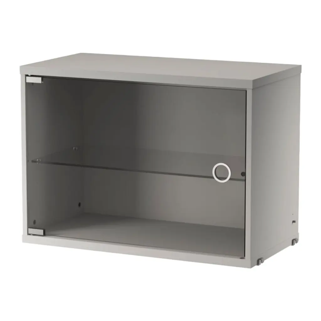 The String display cabinet with a swing glass door complements the String shelving system in an elegant and practical manner. Suitable for all 11.81 in (30 cm) deep String panels, the display cabinet features a hinged glass door and one adjustable shelf. This small glass display cabinet provides beautiful and dust-free storage space for wine glasses and porcelain plates in the kitchen as well as decorative objects in the living room. String System is an iconic modular shelving system that was originally designed by Swedish architect Nils Strinning back in 1949. The signature ladder-like side panels can be combined with different shelves, magazine racks, work desks, folding tables, chests and cabinets, allowing you to create a customized system that best suits your needs. The timeless and minimalist design of the String System makes it an ideal choice for modern homes and offices, and the versatile shelving system can be endlessly expanded both vertically and horizontally. String Furniture remains dedicated to designing and manufacturing its products in Sweden.