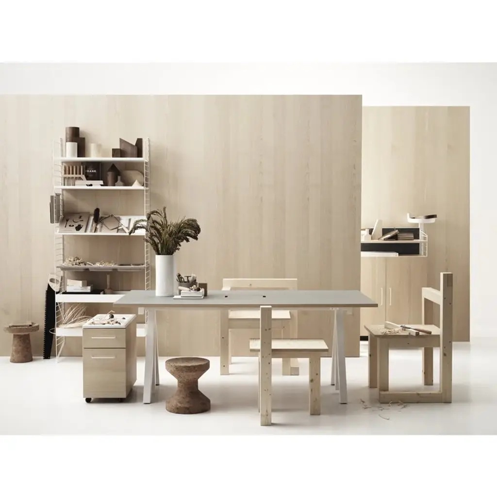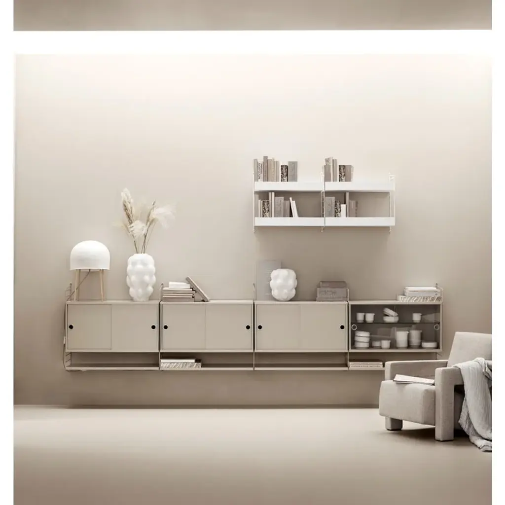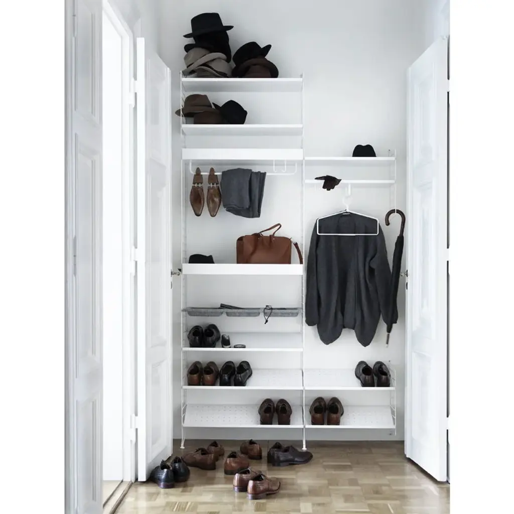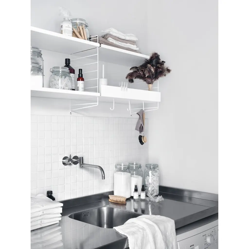 The high String metal shelf is designed to fit String panels measuring 11.81 in (30 cm) in width. Upgrade the shelf with String System's clever hooks or metal rods for extra hanging storage. String System is a flexible shelving system that Swedish architect Nils Strinning designed in 1949. The signature ladder-like side and floor panels can be combined with shelves, magazine shelves, desks, folding tables, chests and cabinets to form a system that best suits your needs. The timeless and minimalist design of String System is perfect for both contemporary homes and offices.