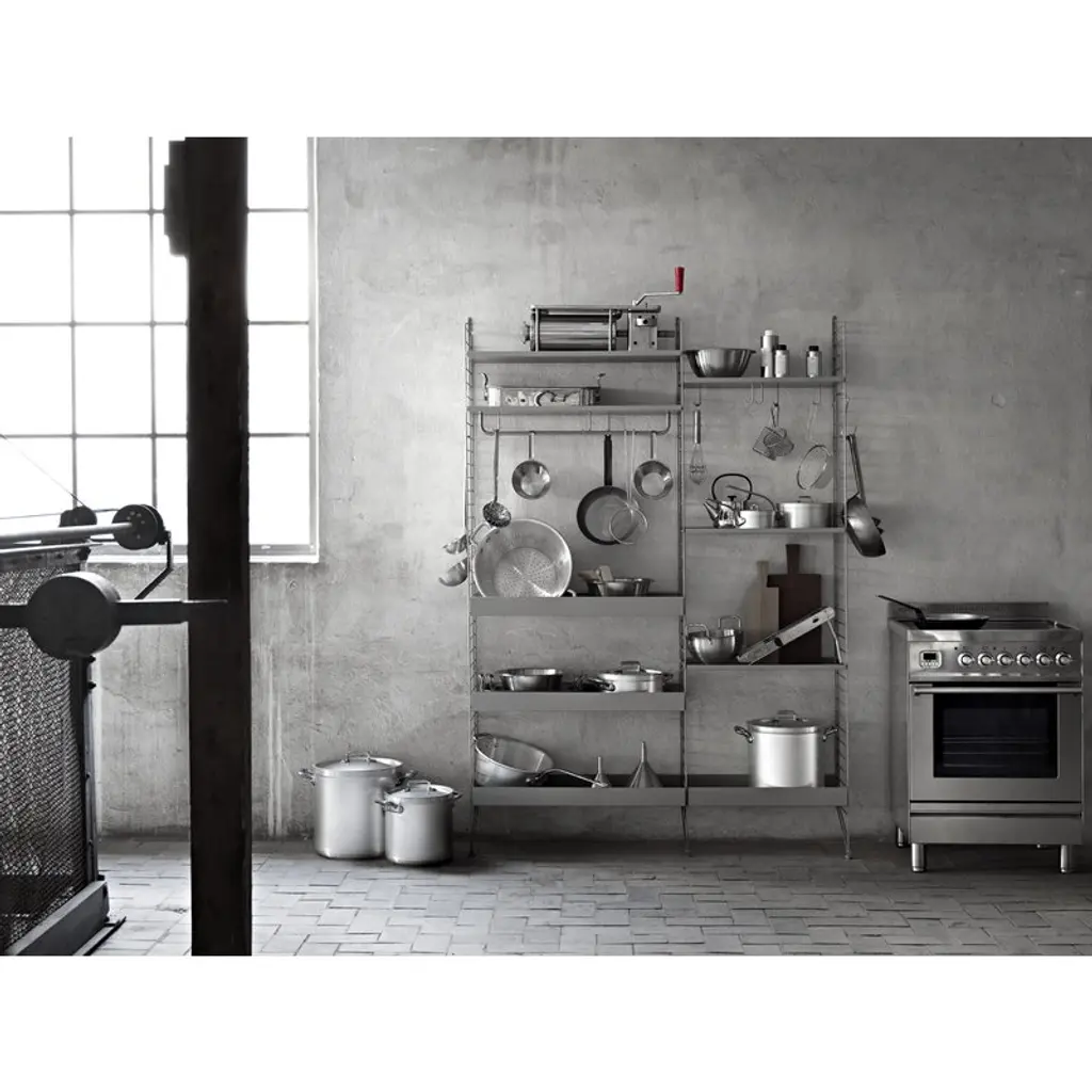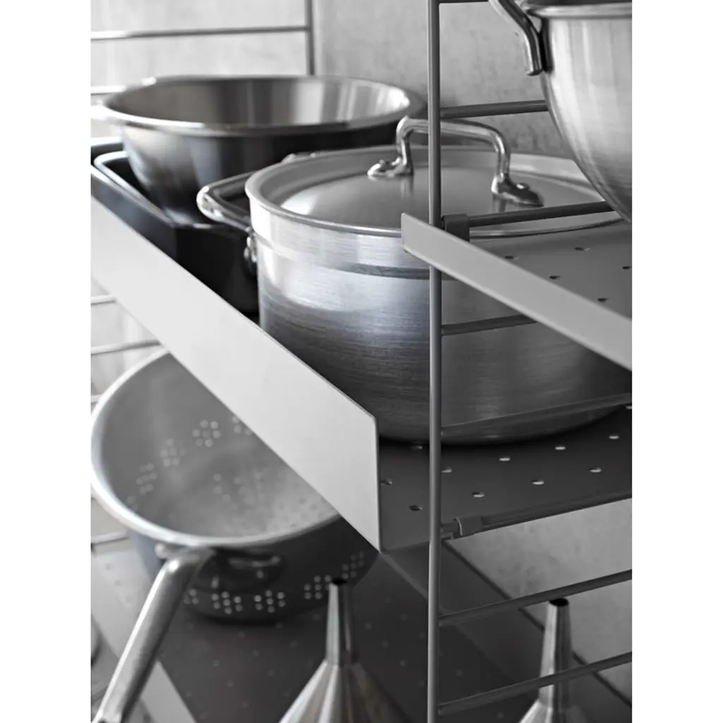 The low String metal shelf is designed to fit String panels measuring 11.81 in (30 cm) in width. Upgrade the shelf with String System's clever hooks or metal rods for extra hanging storage. String System is a flexible shelving system that Swedish architect Nils Strinning designed in 1949. The signature ladder-like side and floor panels can be combined with shelves, magazine shelves, desks, folding tables, chests and cabinets to form a system that best suits your needs. The timeless and minimalist design of String System is perfect for both contemporary homes and offices.