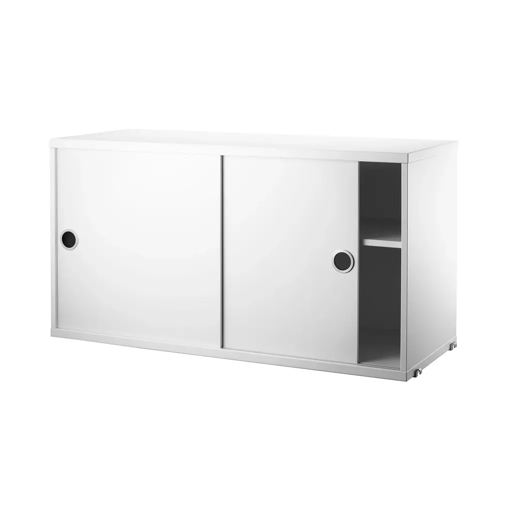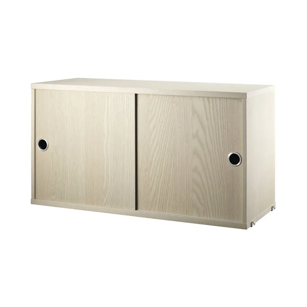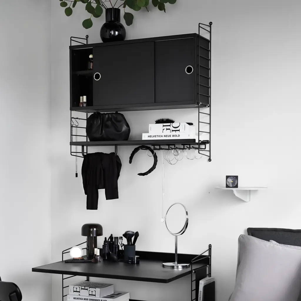 For hidden storage in any room of the house, the option of a cabinet with sliding doors is readily integrated into a String configuration. Available in large or small sizes, the unit comes in wood veneer or solid-color MDF, both with a lacquer finish. Swedish design icons Nisse and Kajsa Strinning first unveiled String in 1949 and with an array of options it continues to prove its enduring appeal.
