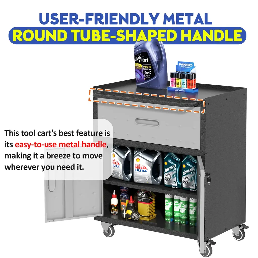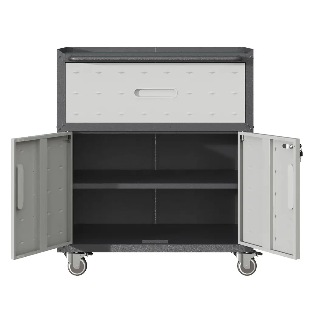 Sturdy And Durable Metal Tool Cabinet For Garage With Wheels - Black+ Grey