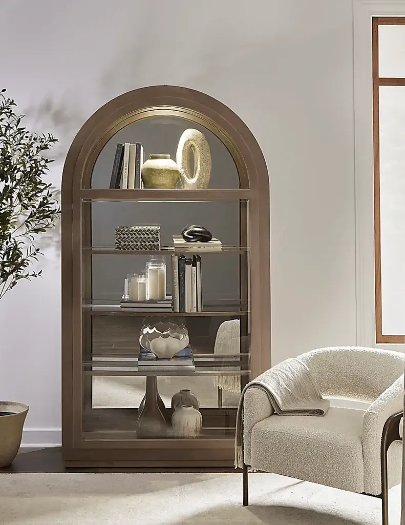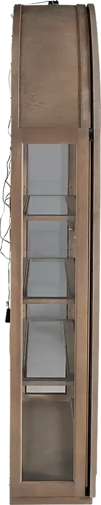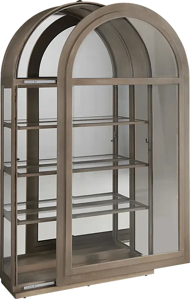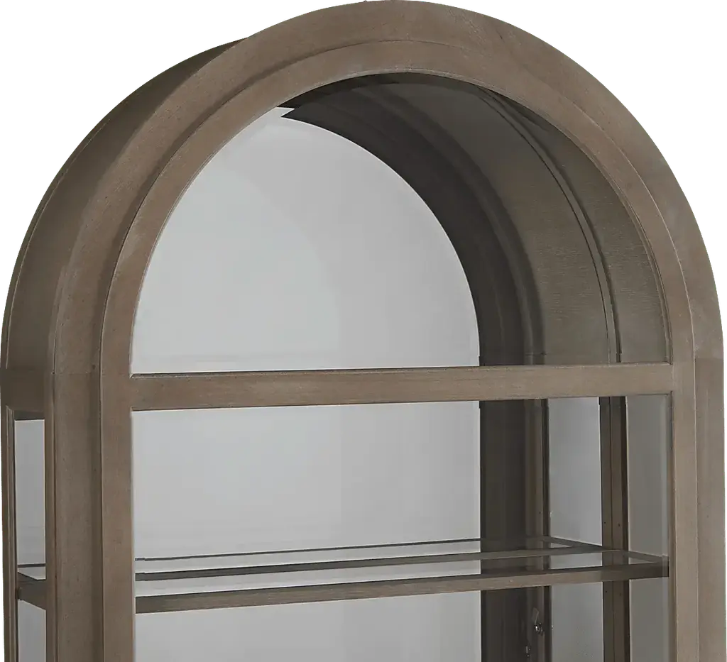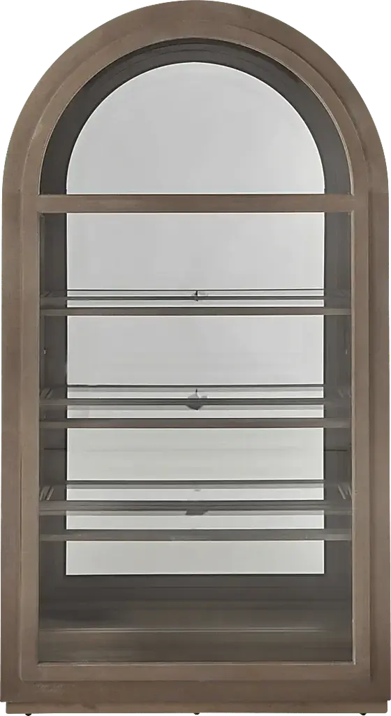Create a graceful aesthetic in your living space with the Sunwayn brown accent cabinet featuring a beautifully arched design that adds architectural interest and soft sophistication. The glass sliding door and glass shelves offer a clear, unobstructed view, while the arched silhouette draws the eye upward, creating a refined focal point. Whether placed in a dining room, hallway, or open-concept space, this cabinet offers timeless style with a curated, gallery-like presence. Customer assembly is required.