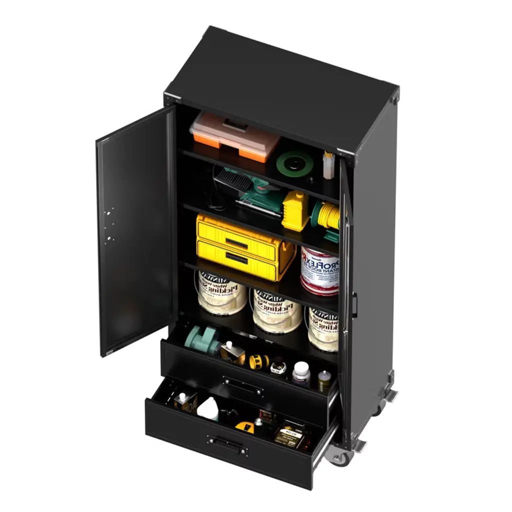 Suxxan Metal Garage Storage Cabinet With 2 Drawers, Rolling Storage Cabinet With 2 Lockable Doors For Garage Home Office,required Assembly,black