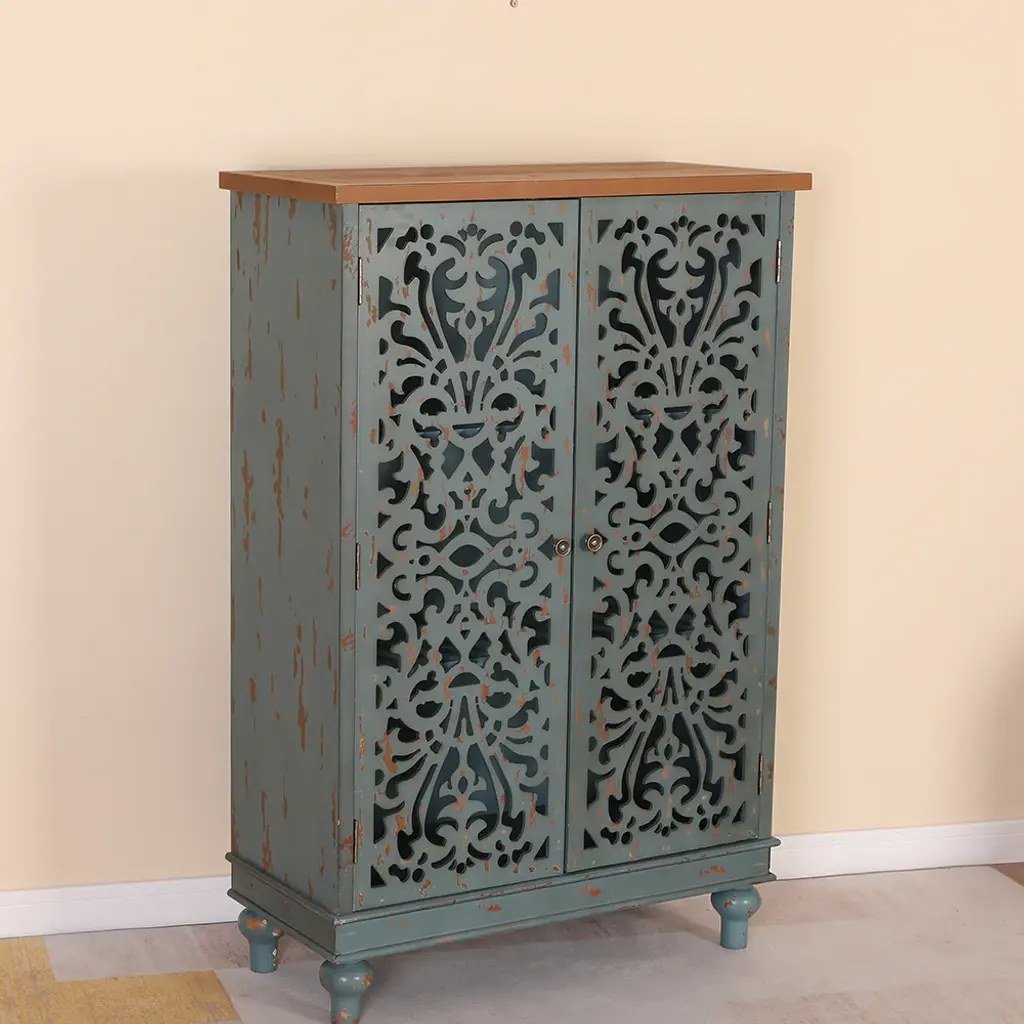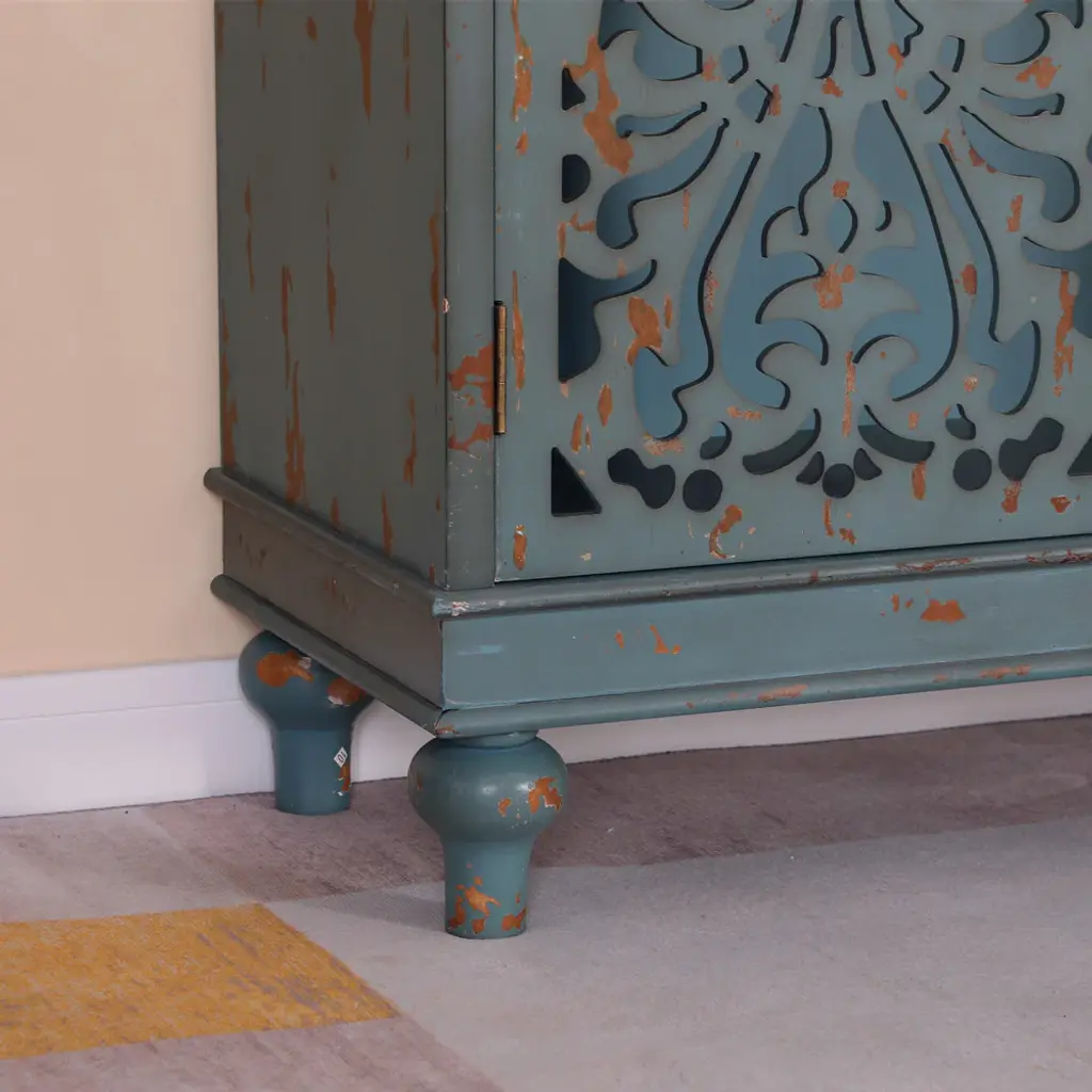 Elevate your space with our Storage Cabinet featuring a decorative carved design that exudes sophistication. This vintage-inspired piece seamlessly merges style and practicality, providing ample storage across three tiers for a beautifully organized living room, bedroom, or hallway.