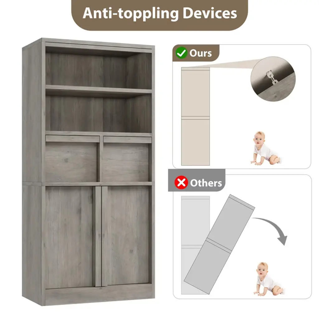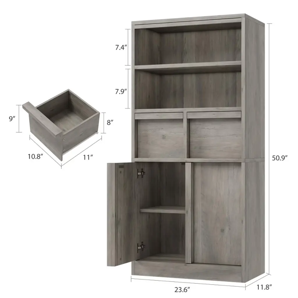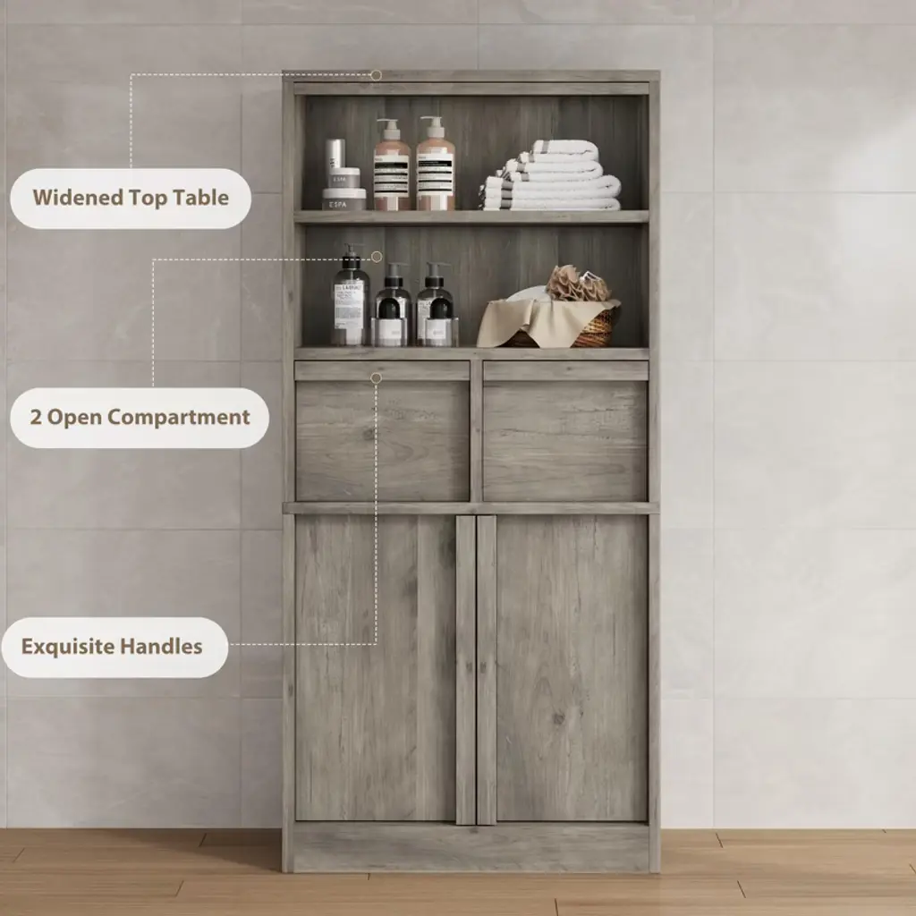 Tall Bathroom Cabinet, Floor Storage Cabinet With Doors & 2 Drawers, 51" H Tall Organizer Cabinet Freestandingt