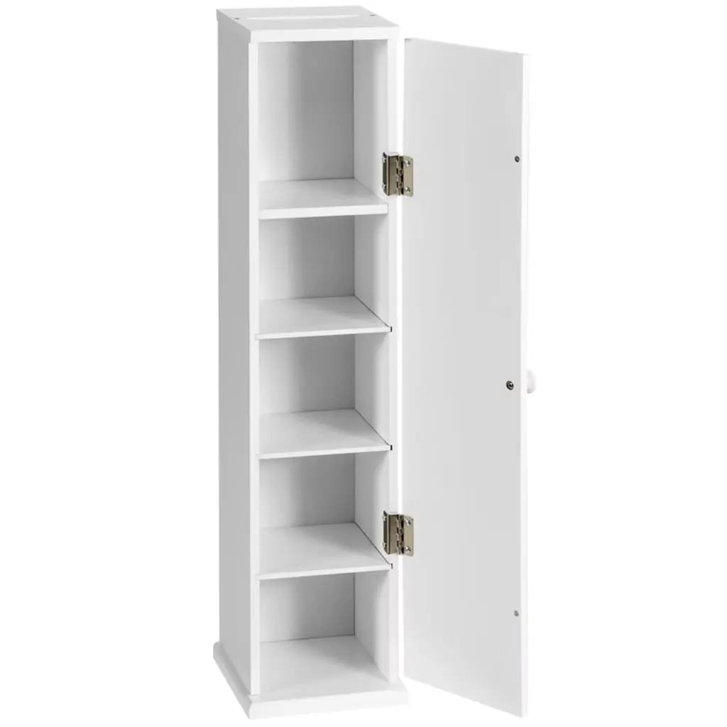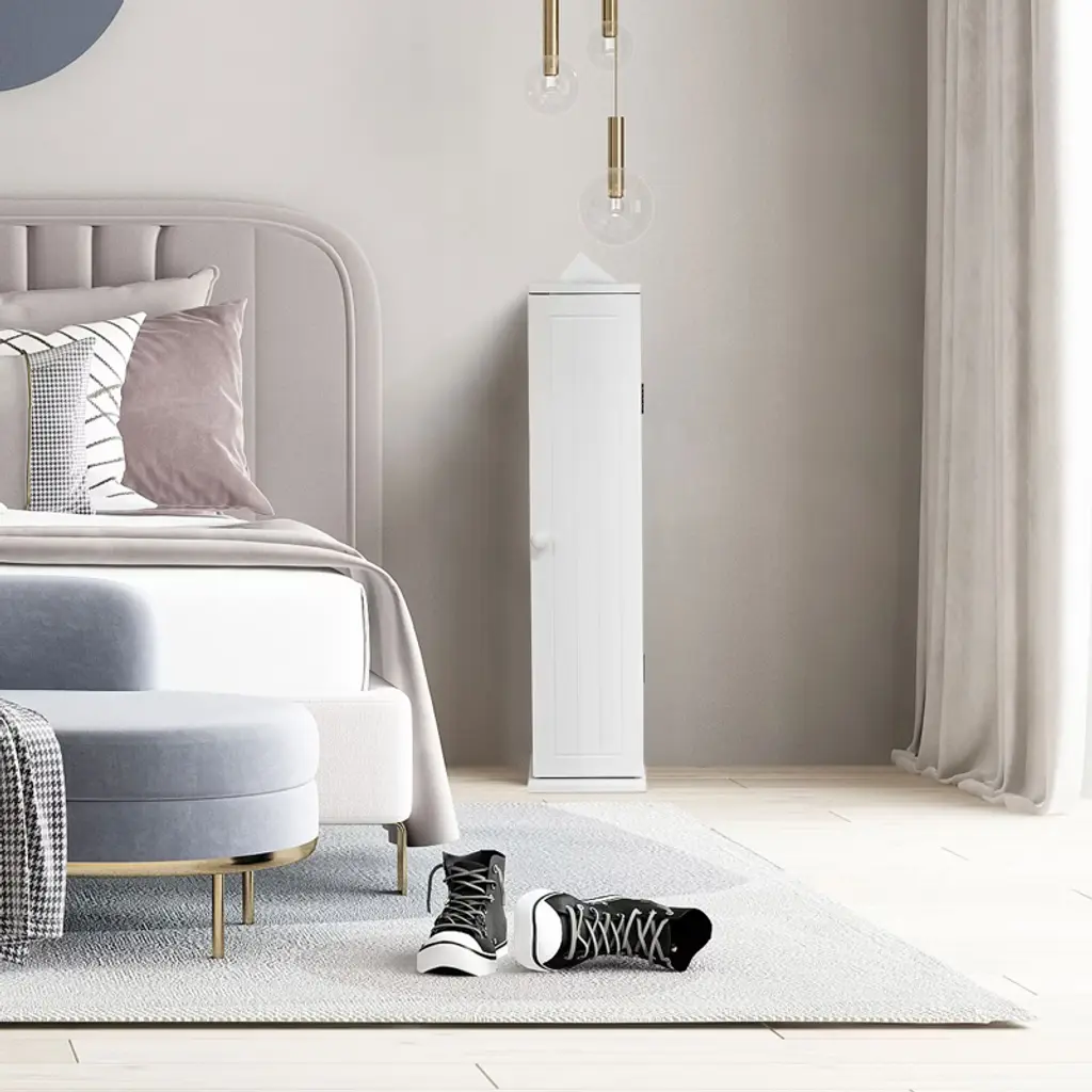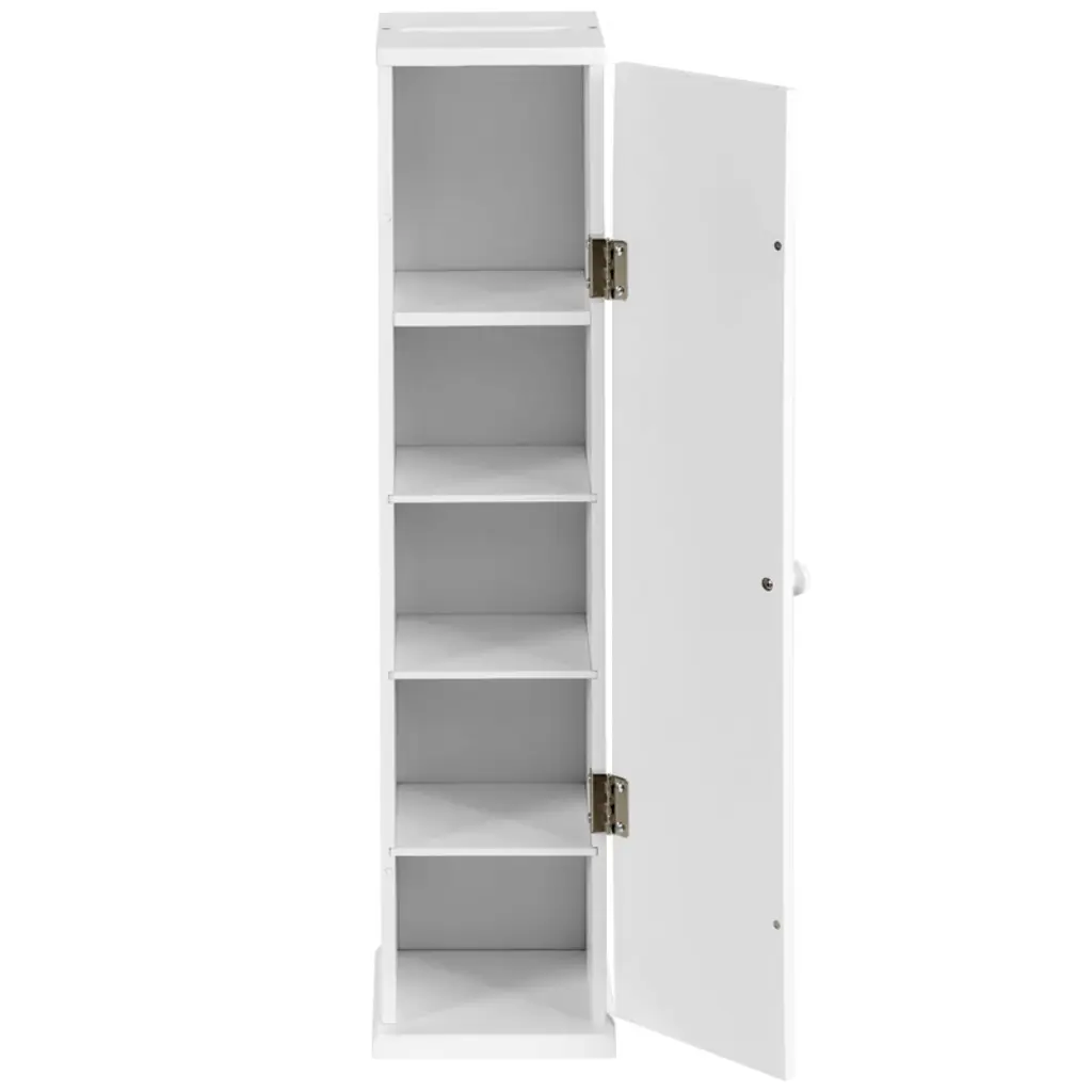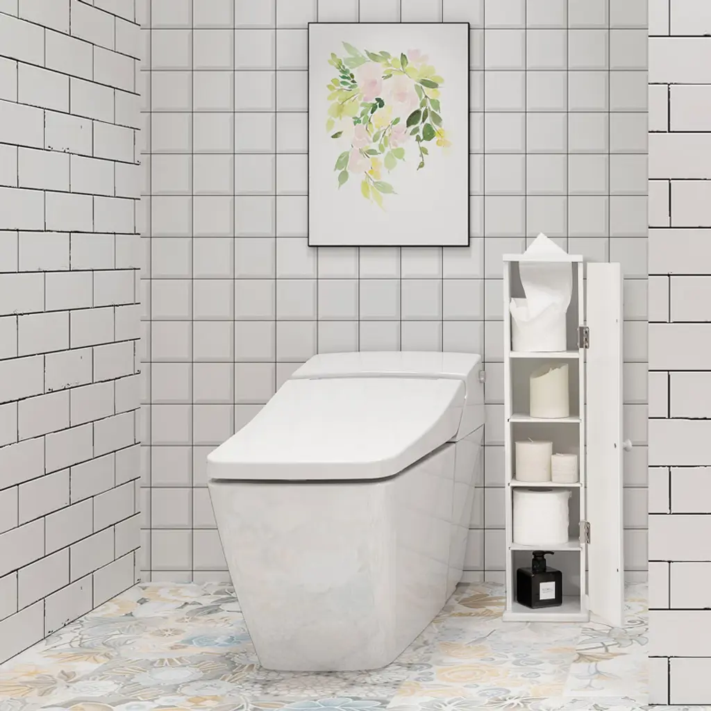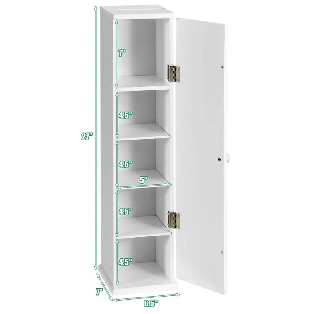 Tangkula Bathroom Tissue Paper Holder Narrow Tall Storage Cabinet Toilet Side Storage Shelf White