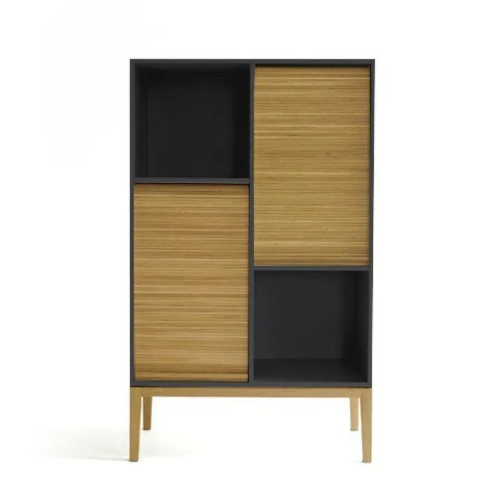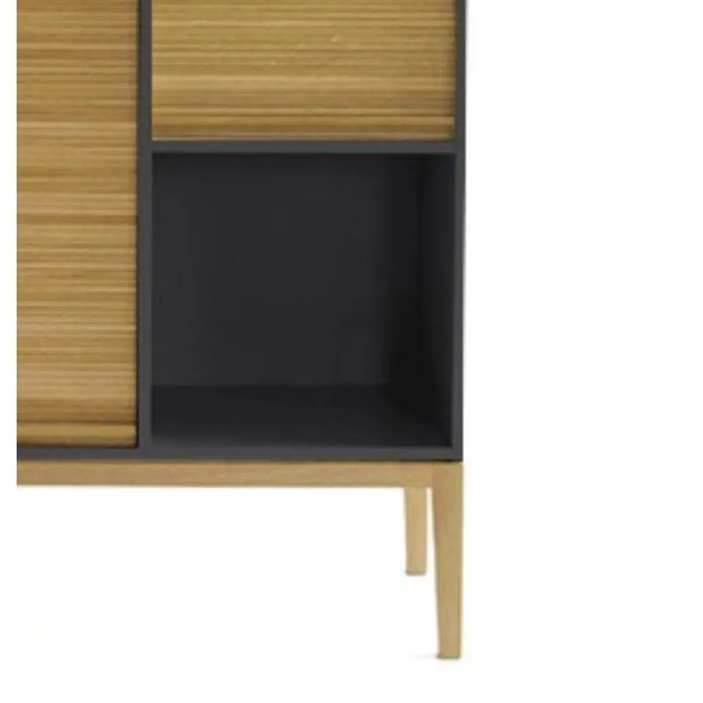 Tapparelle Large Cabinet, Black by Colé Italia with Emmanuel GallinaDimensions: H.135, D.46, W.78 cmMaterials: Container with legs and “tapparella” sliding shutter in solid oak.Matt lacquered structure; inside 2 oak veneered shelfAlso available: Tapparelle M cabinet, L cabinet, hanging unit, mirror hanging unit, lacquered in azure, lacquered in blue/gray, lacquered in sand white, lacquered in mustard yellow, .lacquered in cherry red, lacquered in black, please contact usTapparelle is a collection of elements that explore the traditional technique of antan office furniture with sliding shutters no longer in use, turning them into furniture for the contemporary home with soft and unusual lines. The sliding shutters in solid oak are specially designed for this collection and hand mounted on cotton canvas, as true artisan tradition wants. Basement and sliding shutters in solid oak. MDF structure, matt lacquered with a double bottom that hides the sliding of the shutter. Shelves veneered in natural oak. In addition Tapparelle sideboard has a bottom push- pull drawer for cutlery or small items and a top folding compartment flap with slow motion pistons to use with multiple cable ideal for installations to conceal dvd, console, table, pc. Colé is a young Italian design brand, with a high-end production 100% made in Italy. Born from the experience of Matteo De Ponti, architect, who grew up in one of the most outstanding Milanese design families, and the artistic sensibility of Laura Macagno, degree in Economics and passionate of art and design. Our Mission is to create design icons, beautiful and comfortable pieces that can Stand the test of time, furnishing houses of international and sophisticated clients, and realized with craftsmanship, thus unique. “We love objects which own deep roots, excellent quality, and a strong evocative power. Archetypal forms dressed with new beauty without losing their classical composure”.Our expressive research is inspired by the utopian force of Italian eminences grises architects and designers of the ’50s, the Scandinavian design, the Bauhaus, ethnic handcraft and houses of famous writers of the XX century, all different as a style but united by the intense soul of those who worked and lived there.