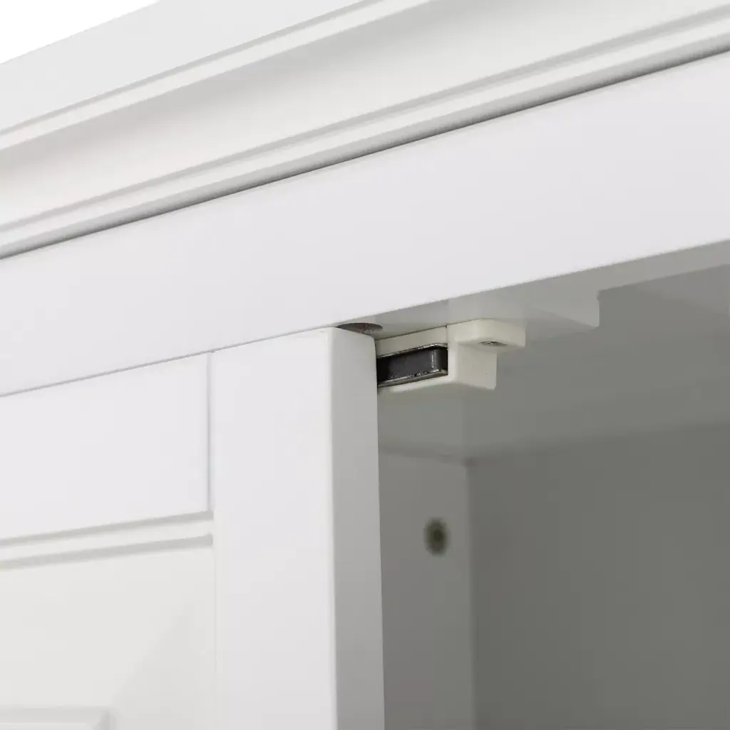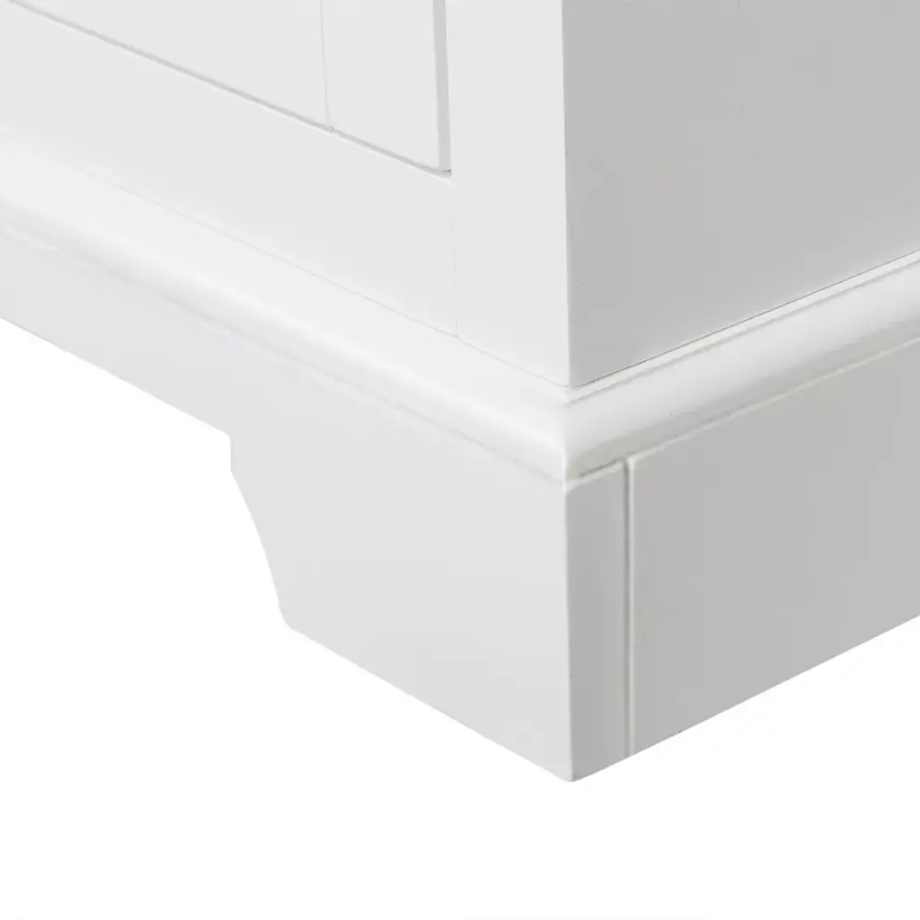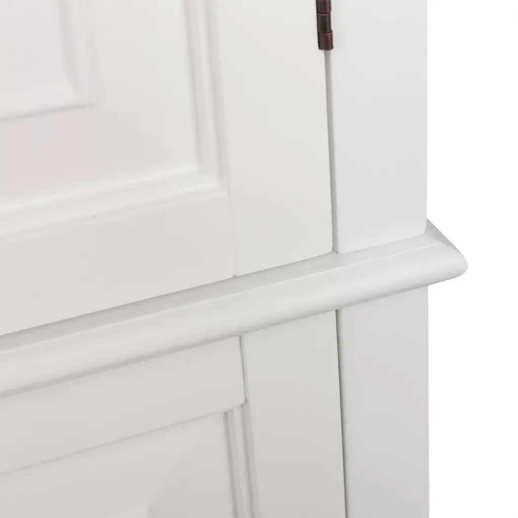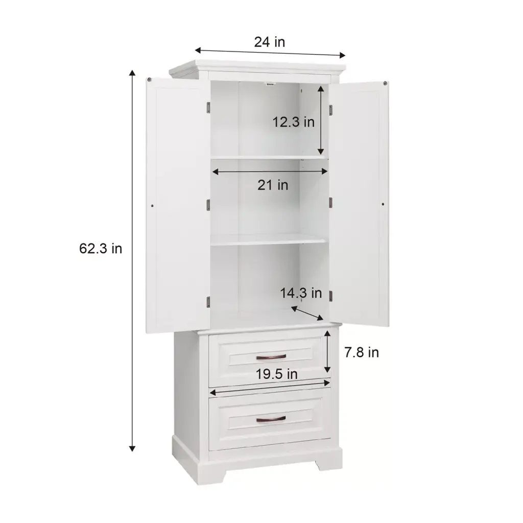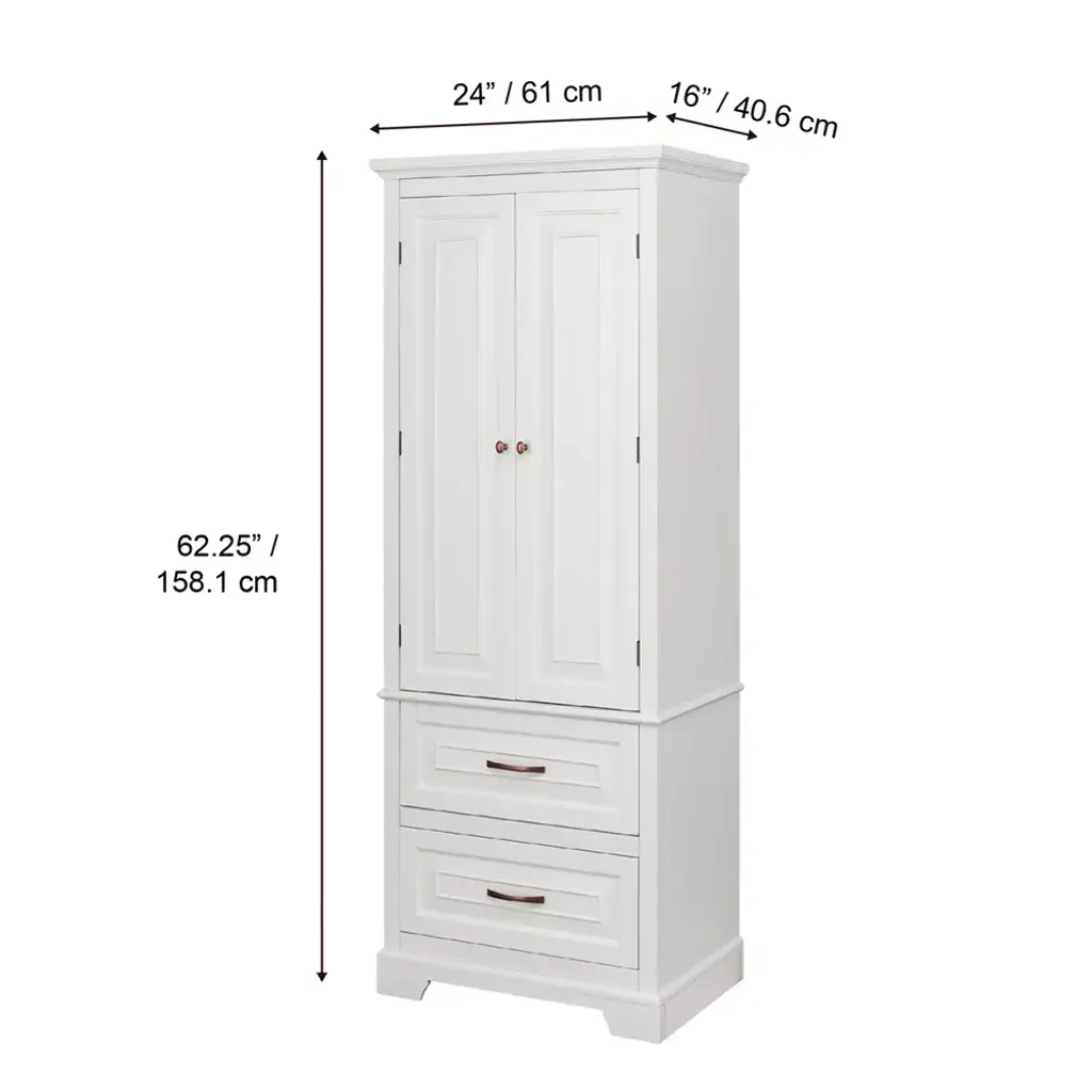 Upgrade your home storage while adding modern style with the Teamson Home St. James Wooden Linen Tower Cabinet with 2 Drawers. This decorative cabinet features a sleek white finish with a crown molded top and a minimalist silhouette for a beautiful addition to your space. The 3 included interior shelves and 2 bottom drawers make this cabinet a functional solution to your storage needs. Constructed from durable engineered wood, this storage unit is built to provide you with long-lasting organization. Easy, step-by-step instructions and all of the hardware needed for installation are included for quick assembly. Purchase this stylish linen cabinet alone or with other items from the St. James collection for a cohesive, updated look.