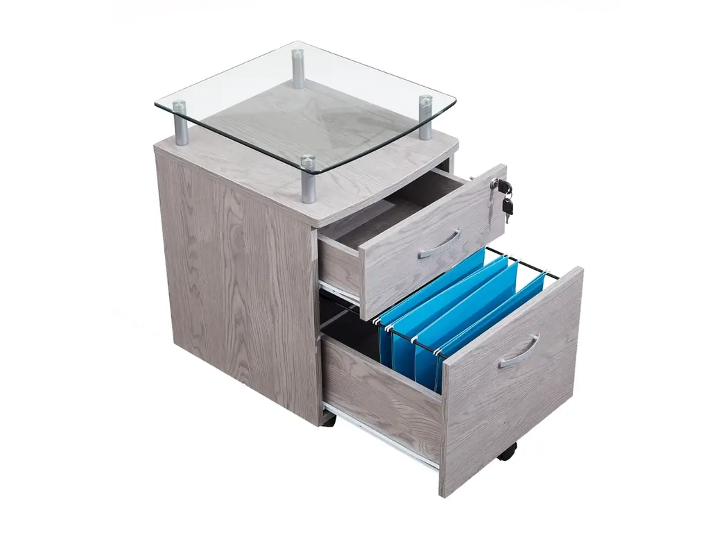 Techni Mobili Rolling File Cabinet With Glass Top