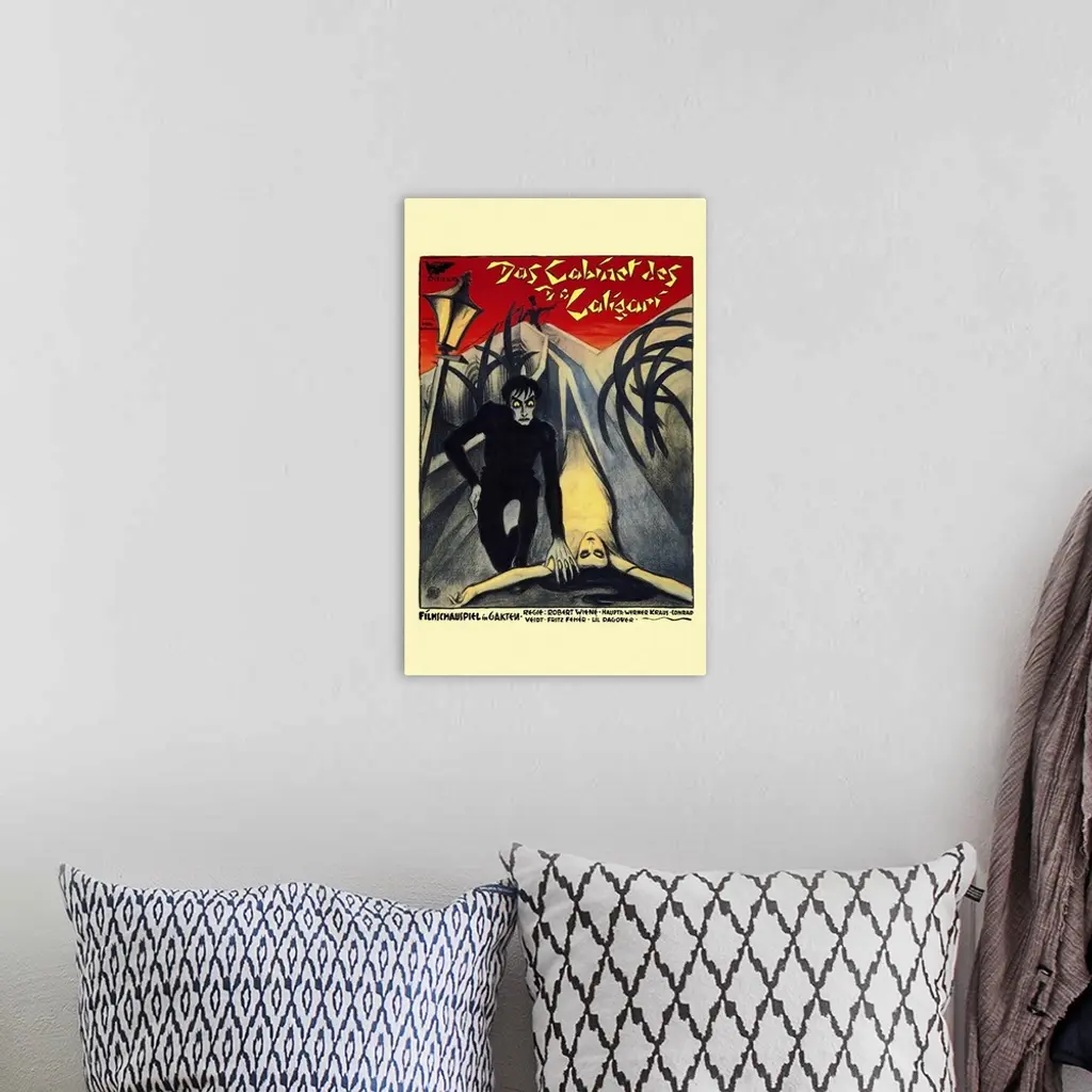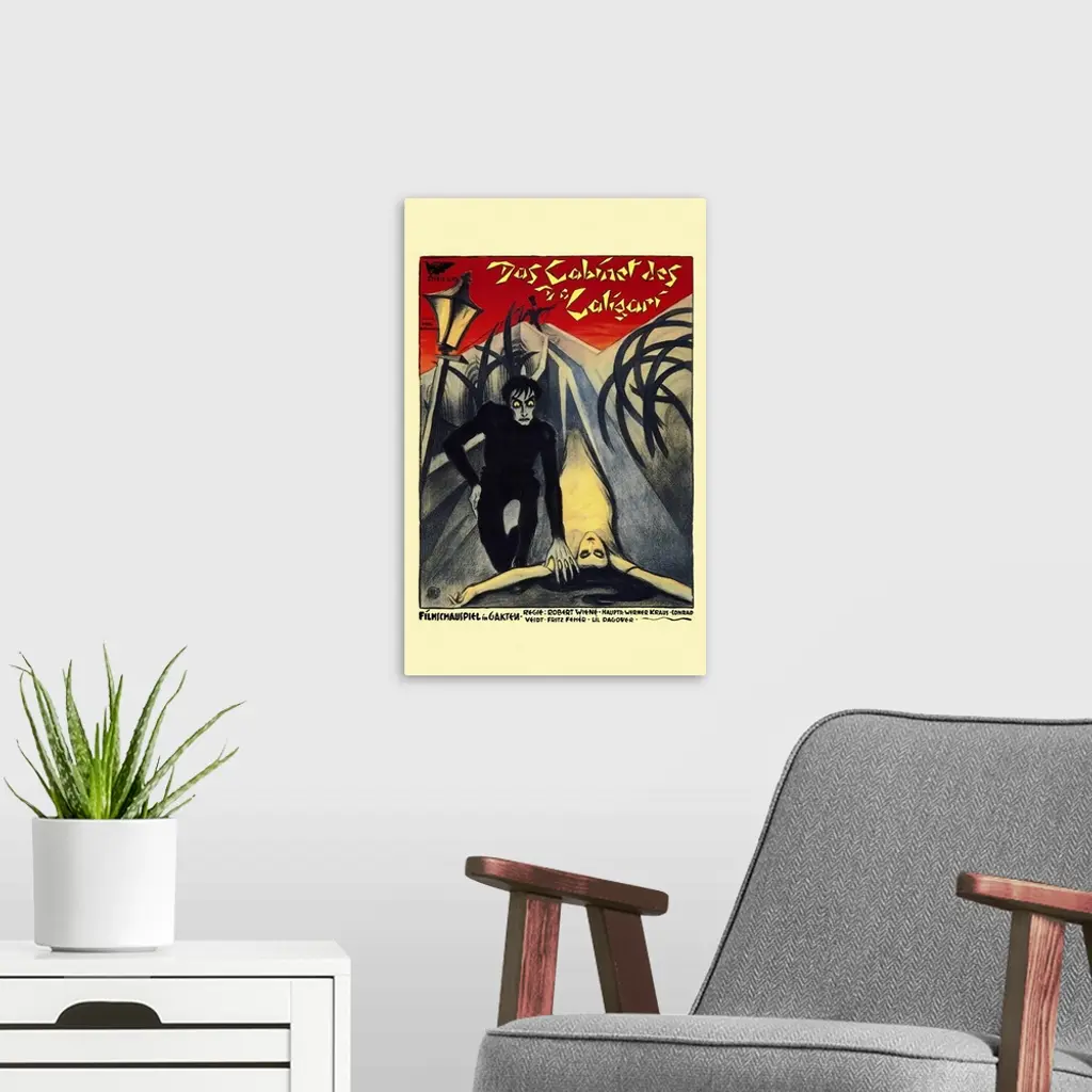 A pioneering film in the most extreme expressionistic style about a hypnotist in a carnival and a girl-snatching somnambulist. Highly influential in its approach to lighting, composition, design and acting. Much imitated. Silent.