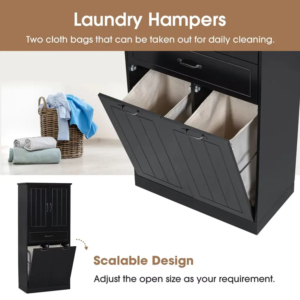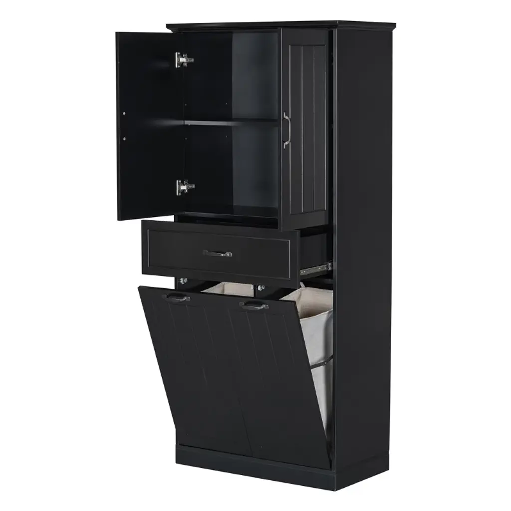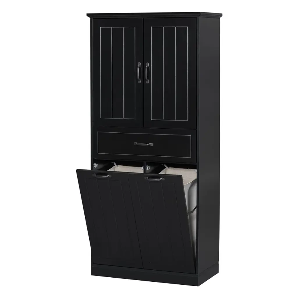The Misty Moon Bathroom Storage Cabinet With Two Laundry Baskets, Storage Cabinet With Doors And Drawer For Home, Black