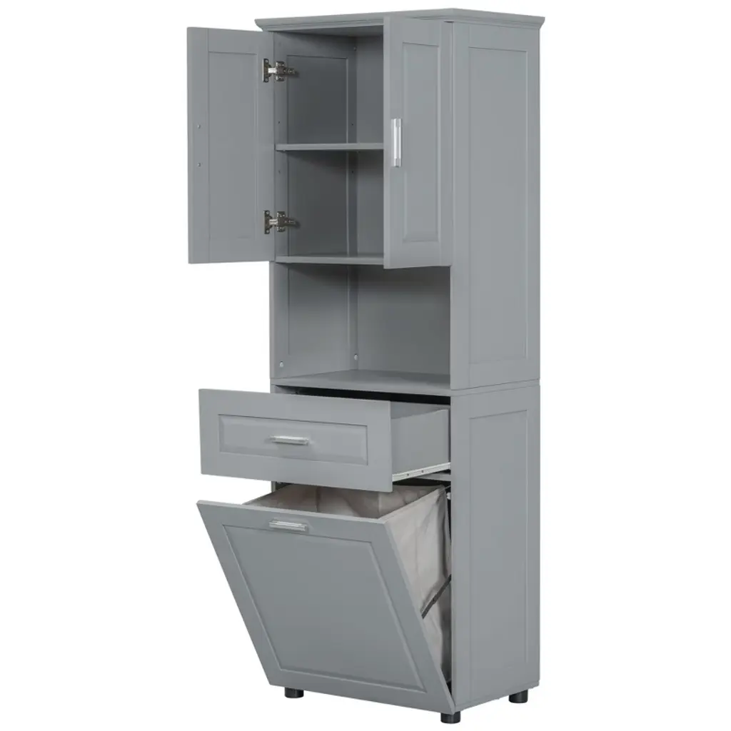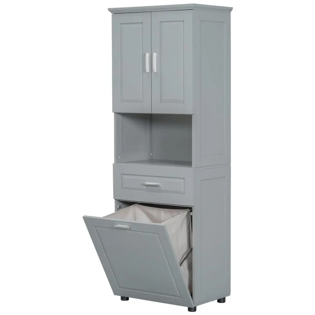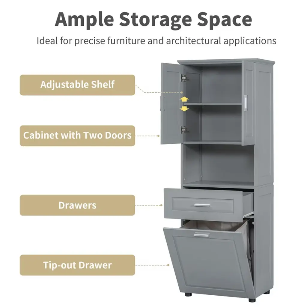 The Misty Moon Tall Bathroom Cabinet With Laundry Basket, Large Storage Space Tilt-out Laundry Hamper And Upper Storage Cabinet, Grey