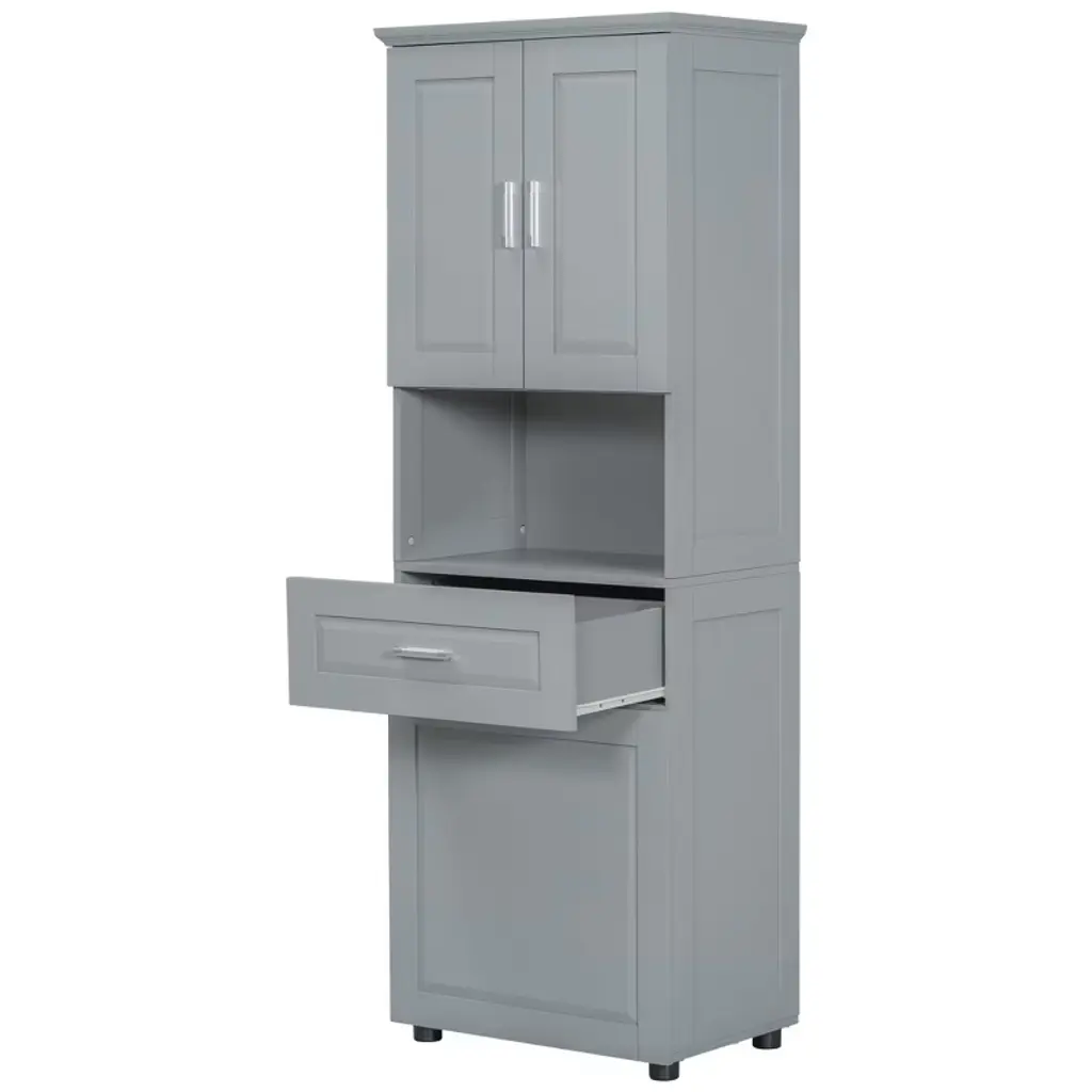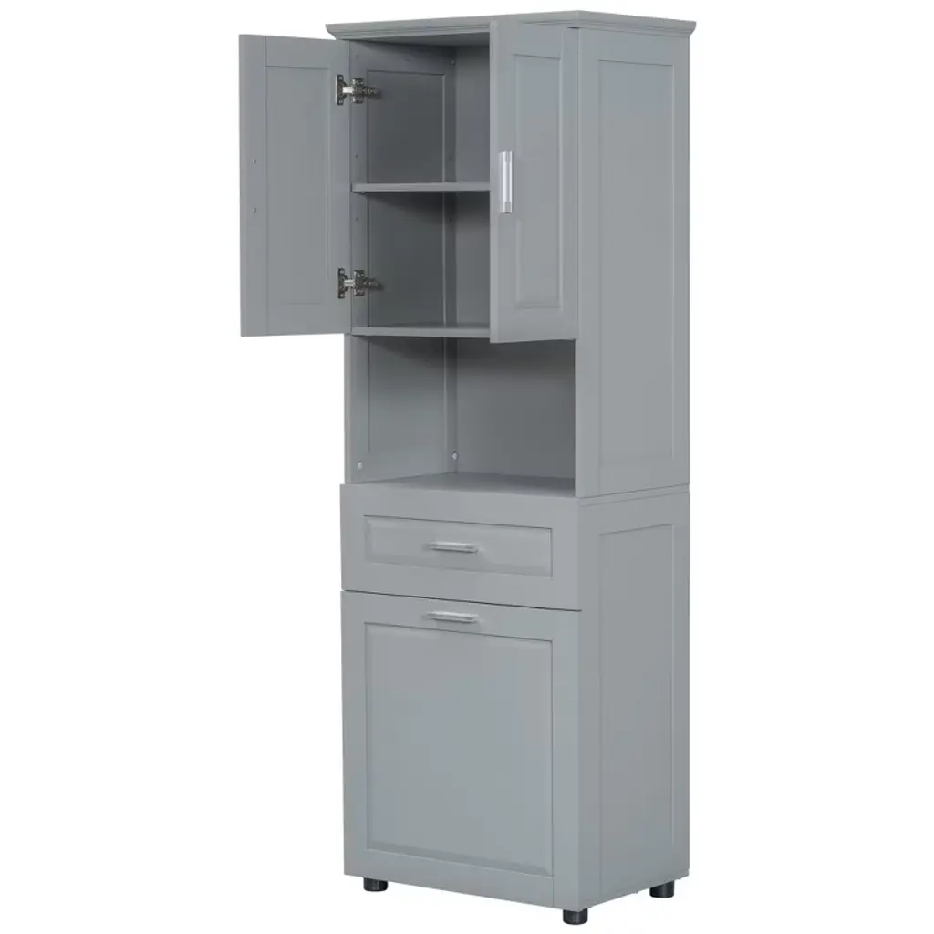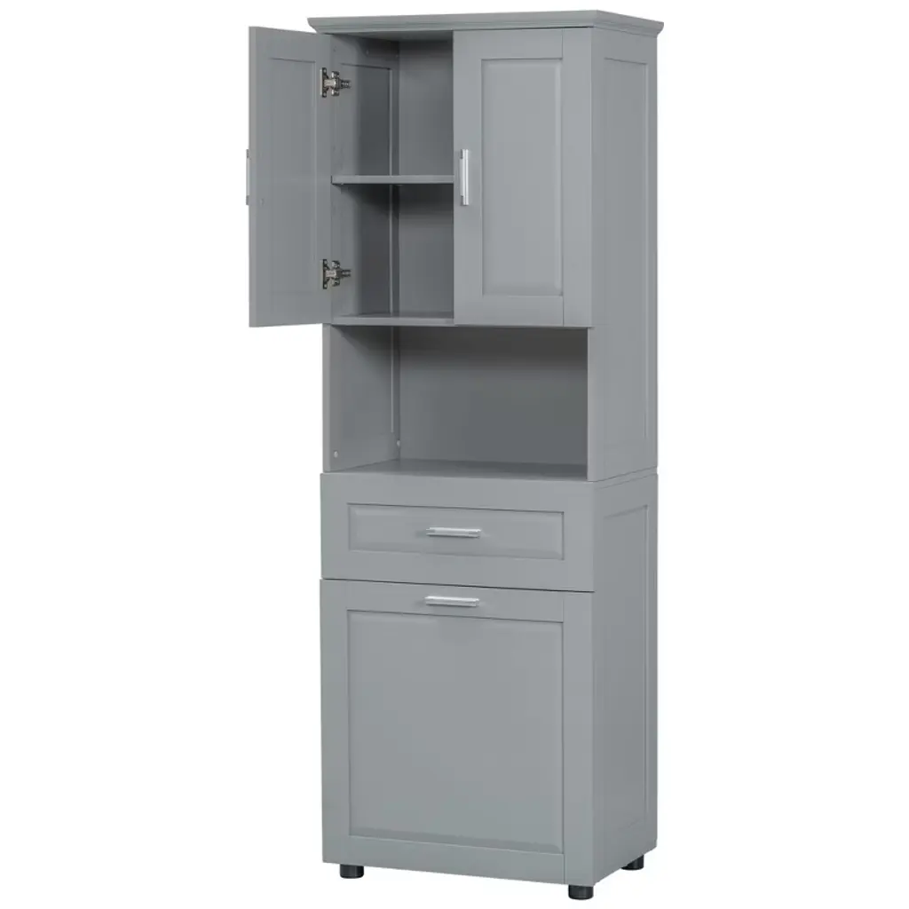 The Misty Moon Tall Bathroom Cabinet With Laundry Basket, Large Storage Space Tilt-out Laundry Hamper And Upper Storage Cabinet, Grey