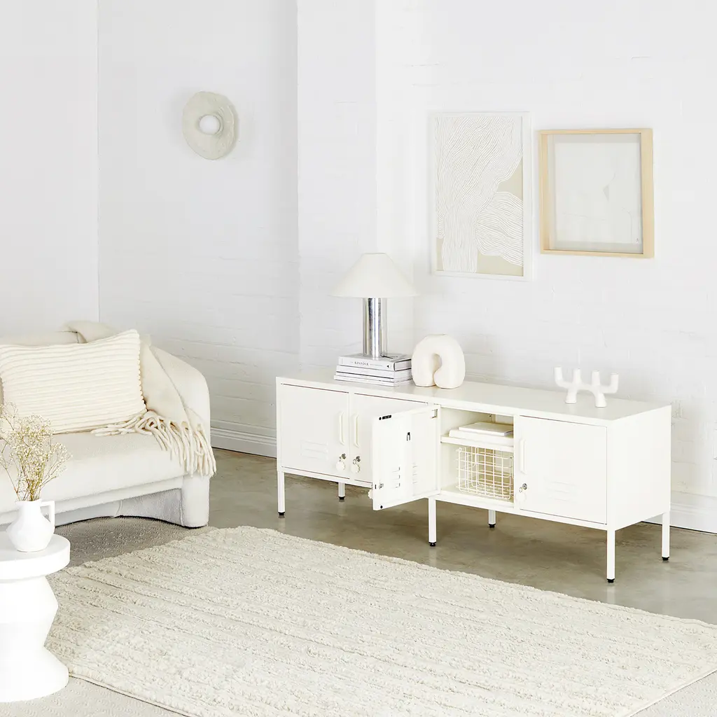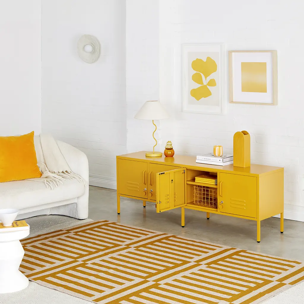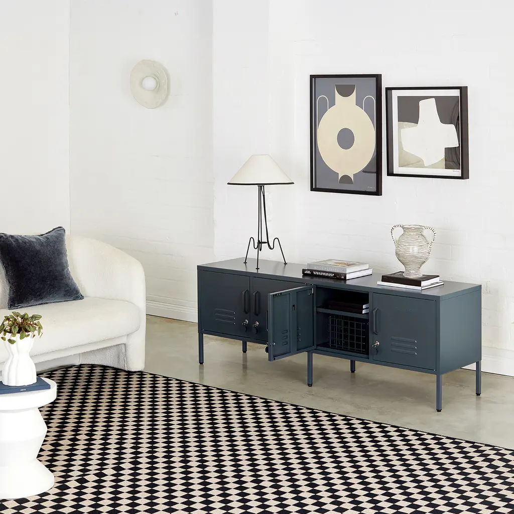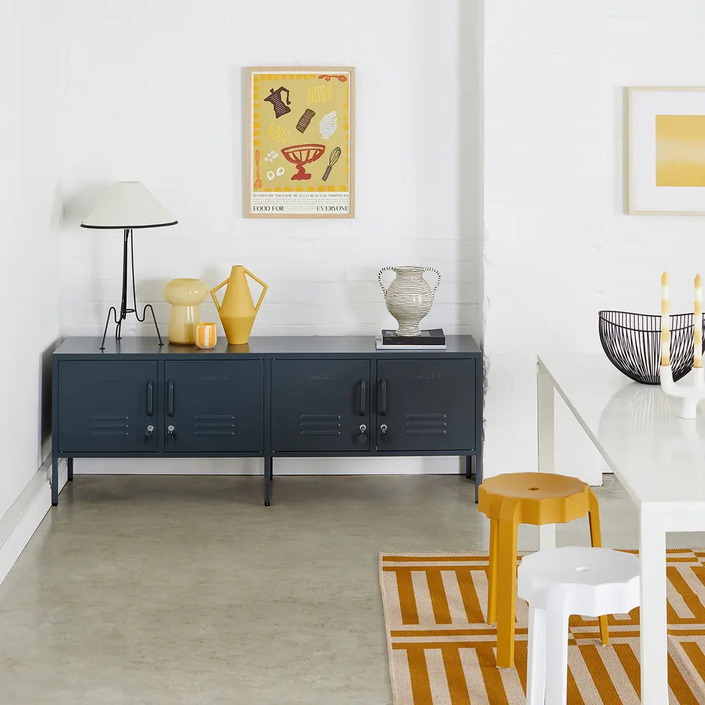 Ultra-spacious and multifunctional, the Mustard Made Standard Locker offers a complete storage solution for your home. It features two separate cabinets, each with two doors and adjustable shelves to help you organize a wide range of items. The practical design and generous storage space makes this metal locker perfect for living rooms, but you can also use it in a bedroom, an office or a larger hallway. Other handy features include four hooks, two cable holes for easy cable management, and air vents to keep the contents ventilated. Plus, each door has a lock to allow you to store valuables securely. Offering durability on top of convenience and modern style, this locker is made from powder-coated steel to stay beautiful over time, even in busy spaces. Flat-packed for easy transportation, The Standard is a breeze to put together. Choose your favorite color from dark, light and pastel hues to complement your home décor.