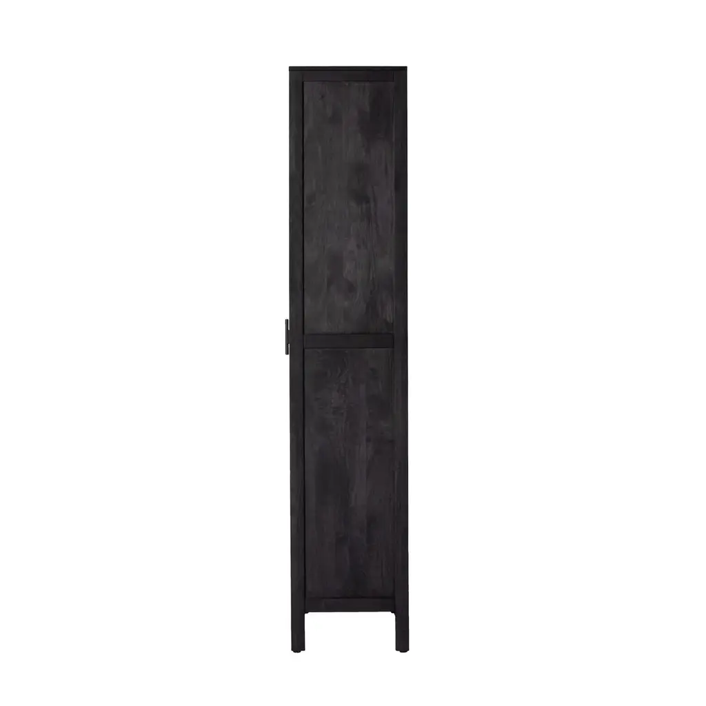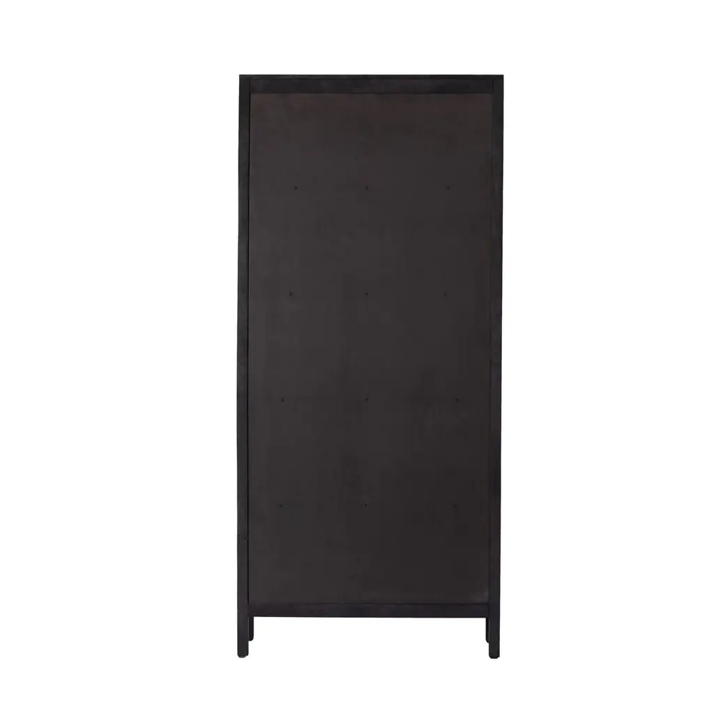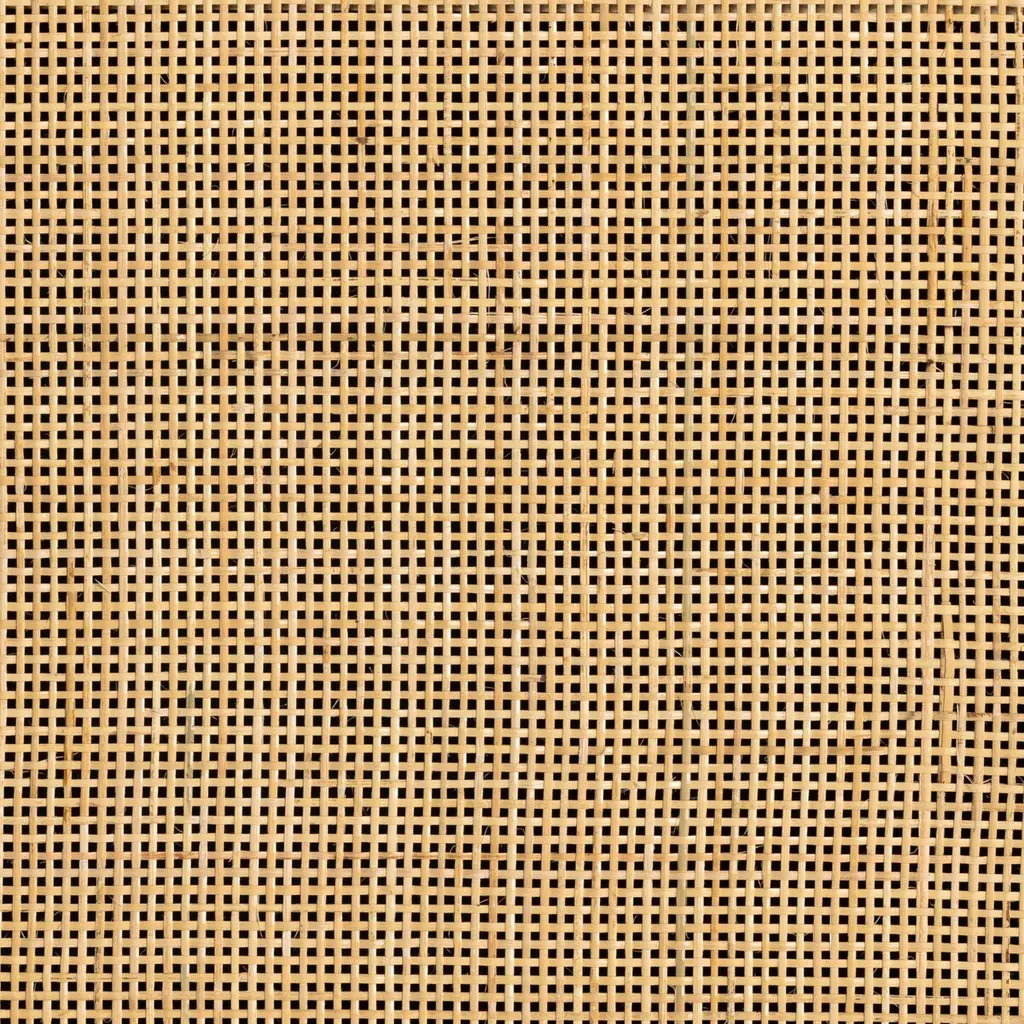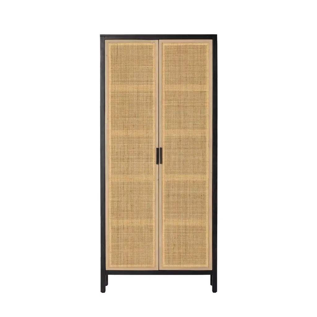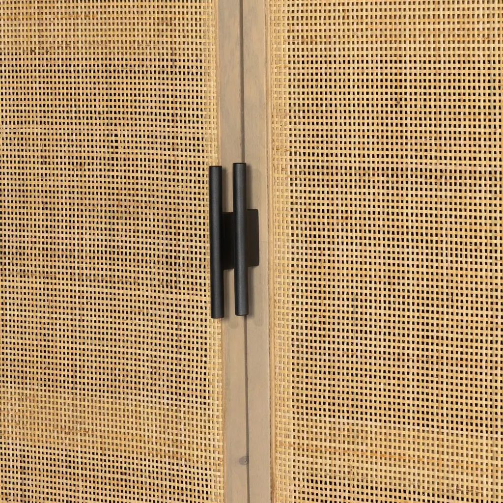 Talk about texture. This tall cabinet features spacious open shelving, with woven door fronts of natural cane for eye-catching contrast and a fashion-forward feel.
