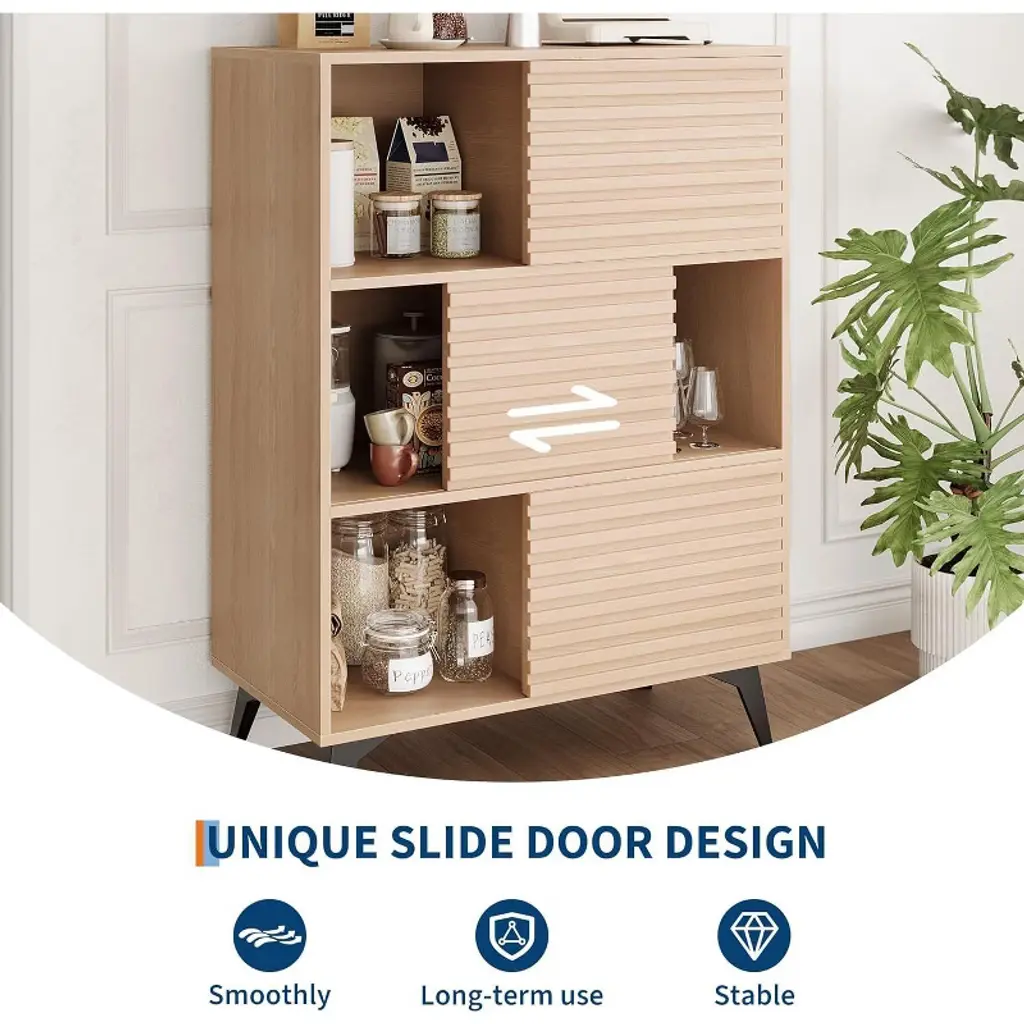Three-layer Wood Storage Cabinet, Durable Particle Board Organizer With Multi-layer Shelves, Compact Design Ideal Furniture Storage Solution
