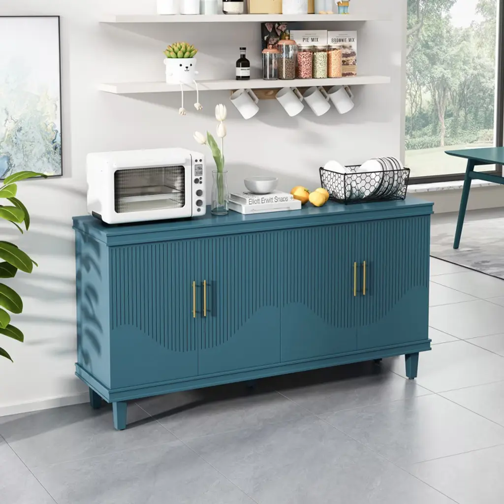 Tiramisubest 59.84" Wide 4-door Storage Cabinet With Wheels - Blue Mobile File Organizer For Home & Office