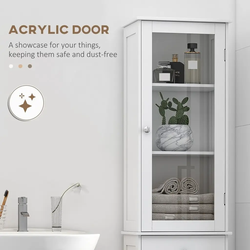 Tiramisubest Slim Bathroom Storage Cabinet ̈C Tall Acrylic Door Organizer With Shelves & Drawer For Bathroom, Kitchen, Or Laundry