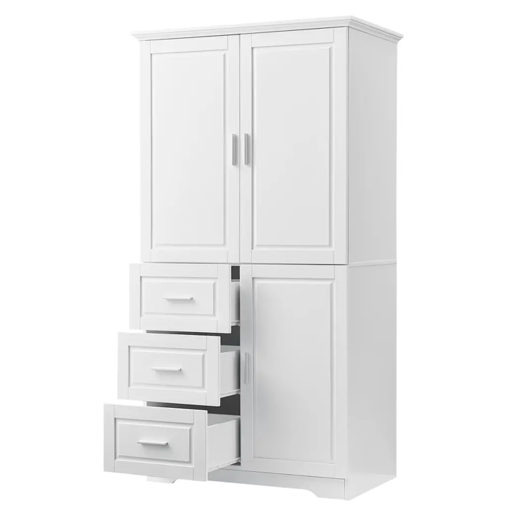 Tiramisubest Tall And Wide Storage Cabinet With Doors For Bathroom/office, Three Drawers, White