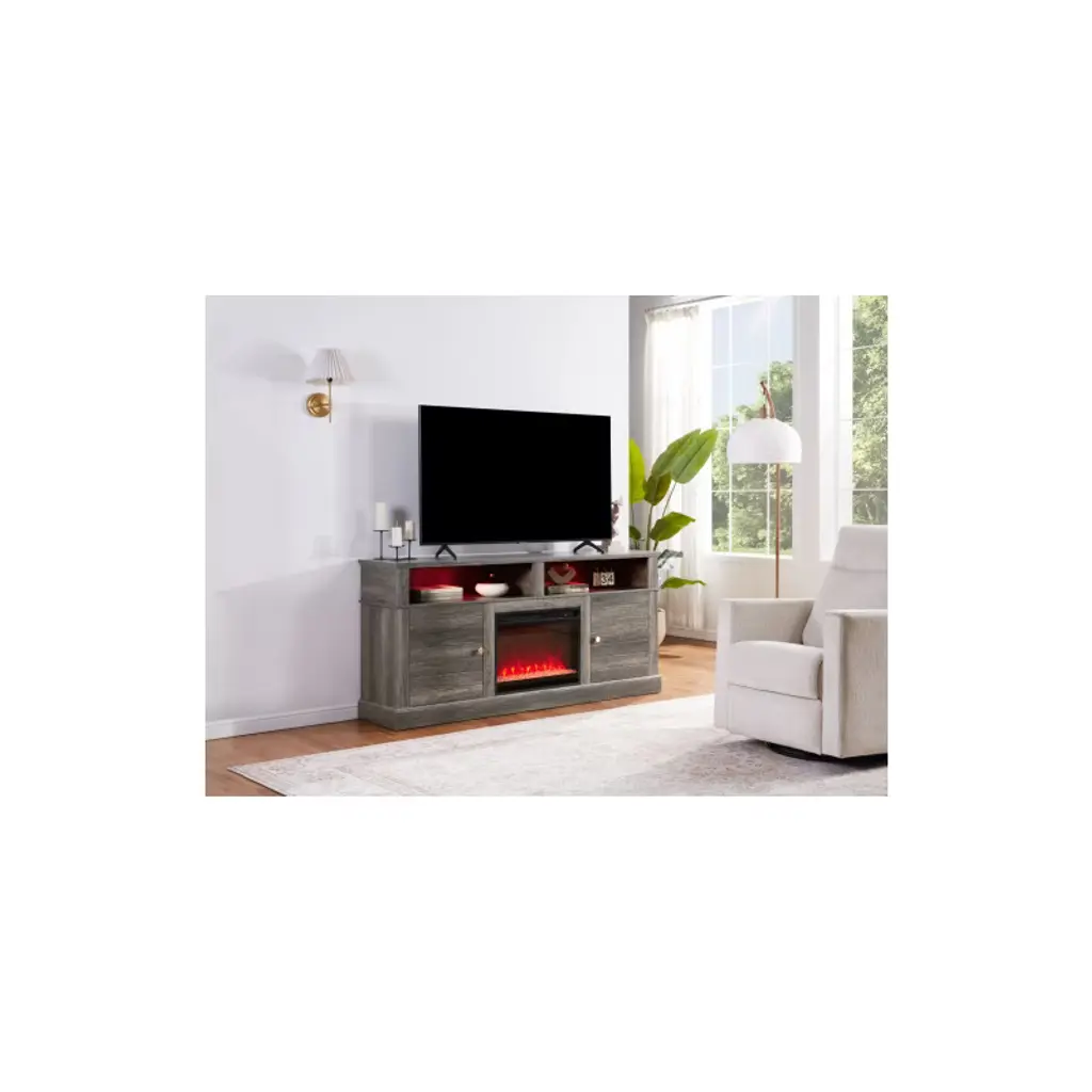2-IN-1 Design&Poduct Dimension The 2-IN-1 design TV stand is a versatile pick for the living room.Twin side cabinets offer abundant storage, featuring adjustable interior shelves to cater to your home decor and storage preferences.This TV Stand will be durable and long lasting for several years to come. Generous Storage Space The double doors have a tempered glass which is perfect place for collectables and keepsakes to be kept safe while still being able to enjoy the view. Solid Structure The fireplace TV stand traditional and Classic style made of heavy duty laminated MDF and particleboard, plenty room for place your DVD player, cable box, and gaming systems in the multiple shelves.The modern finish pairs well any style and decor,so excellent! Combination of Decor & Warmth The infrared quartz heat preserves the natural humidity in the air, providing comfortable warmth without parching the room.